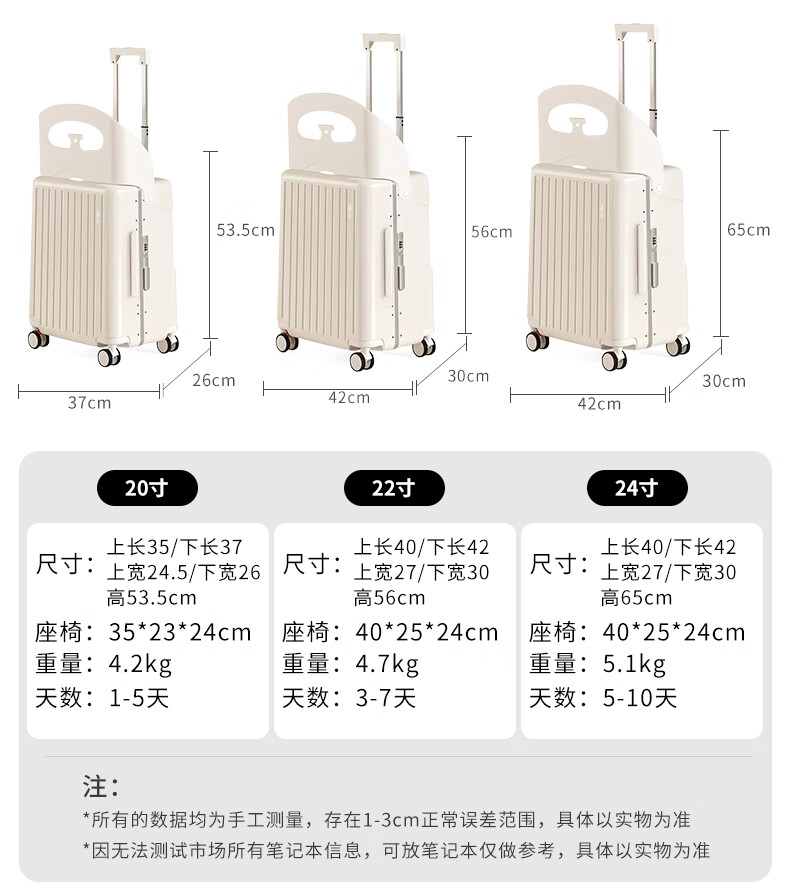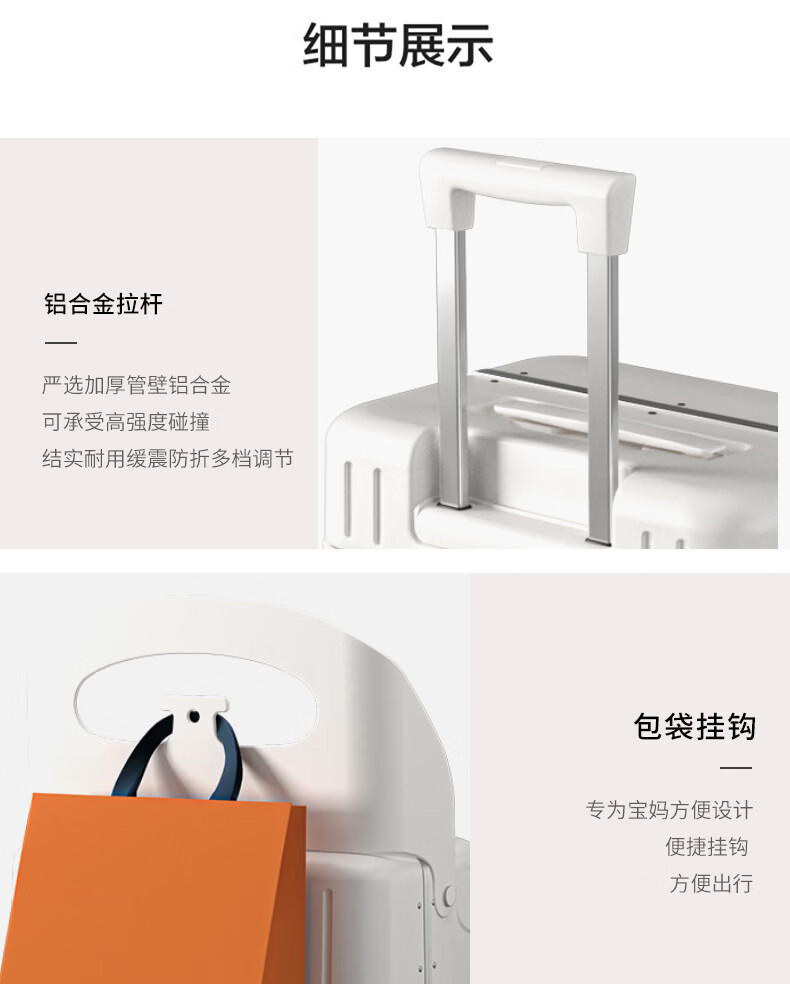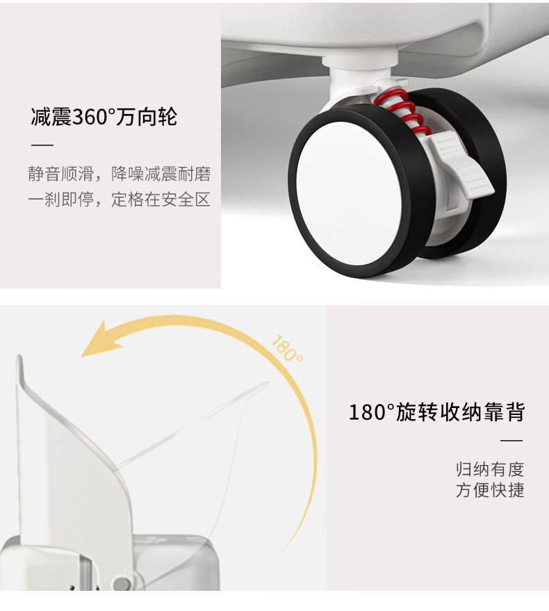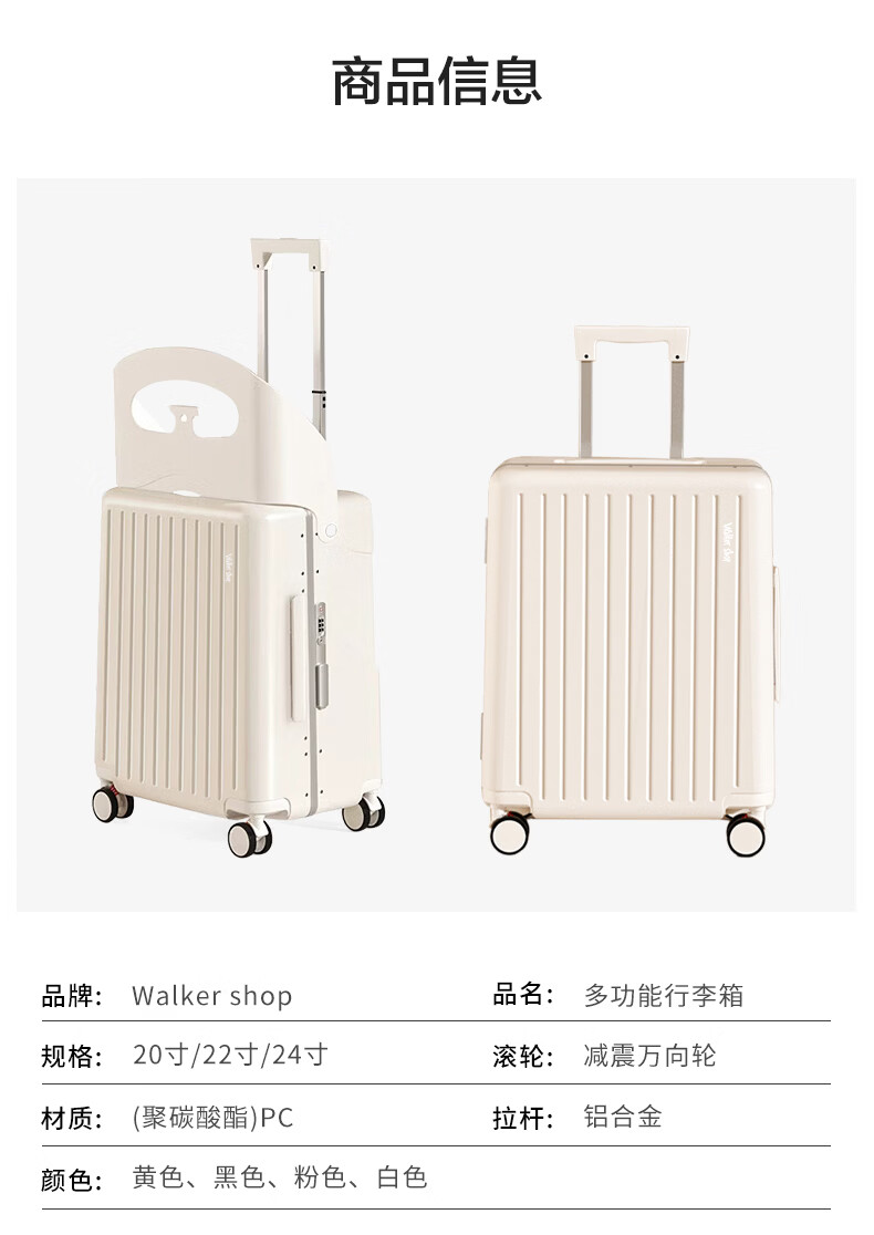 Walker Shop品牌行李箱新款可坐骑旅行箱登机铝框宝妈行李箱儿童宝宝拉杆箱 白色【儿童可坐+折叠靠背】 20英寸 【可登机】