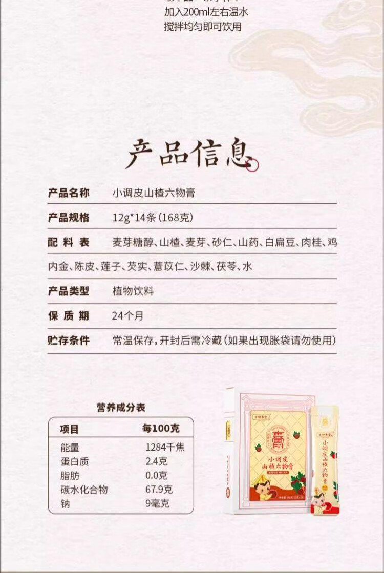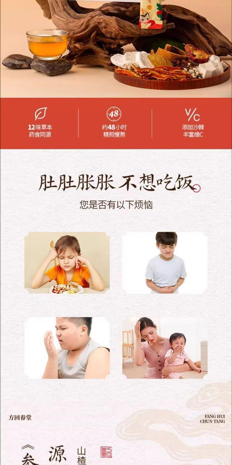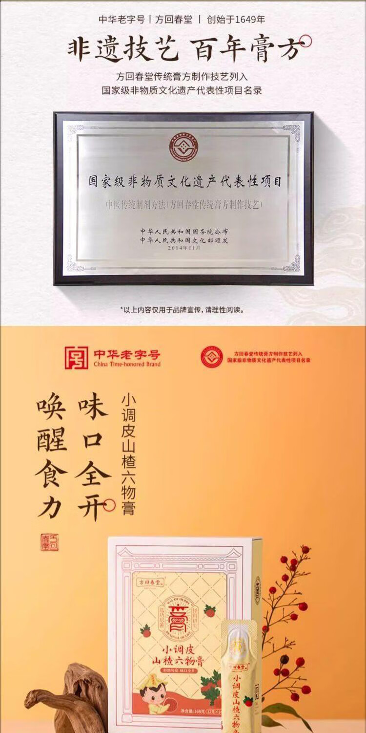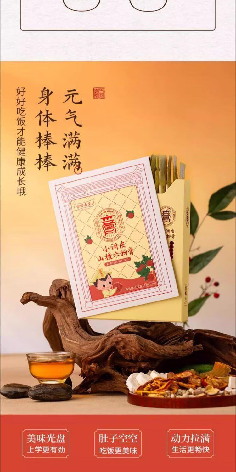 方回春堂山楂鸡内金六物膏脾胃调理麦芽儿童食动力山楂膏滋补品山楂膏 【挑食开胃】小调皮山楂六物膏168g