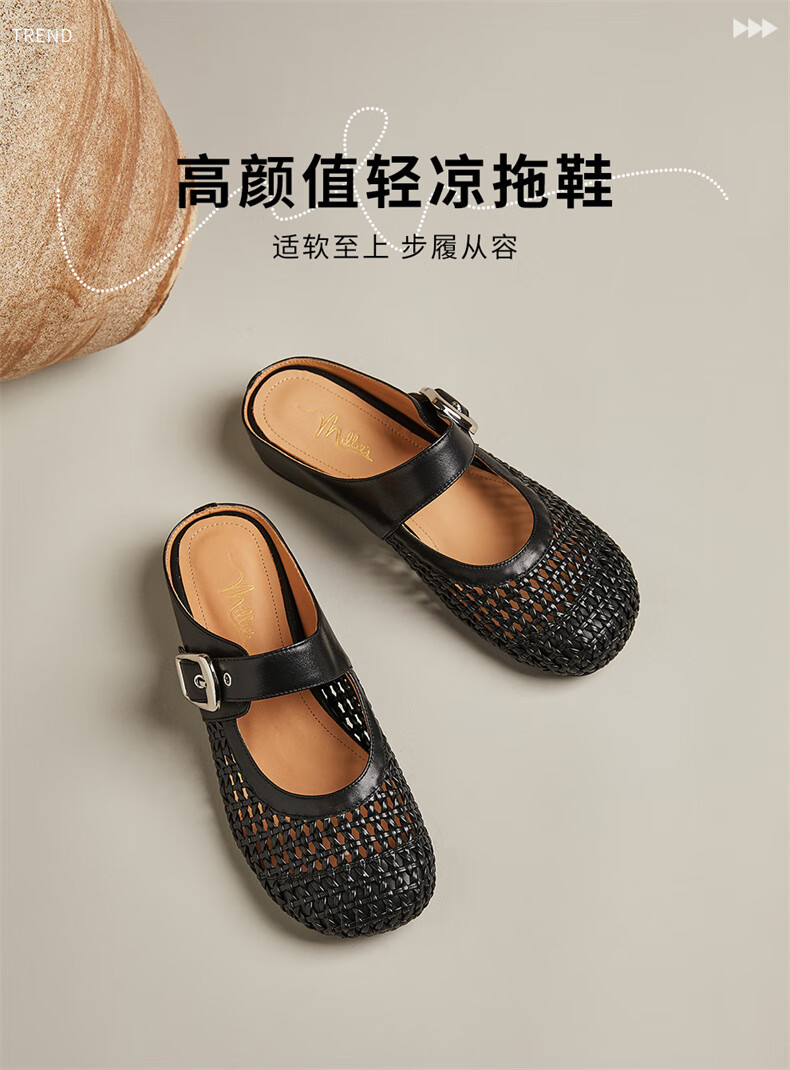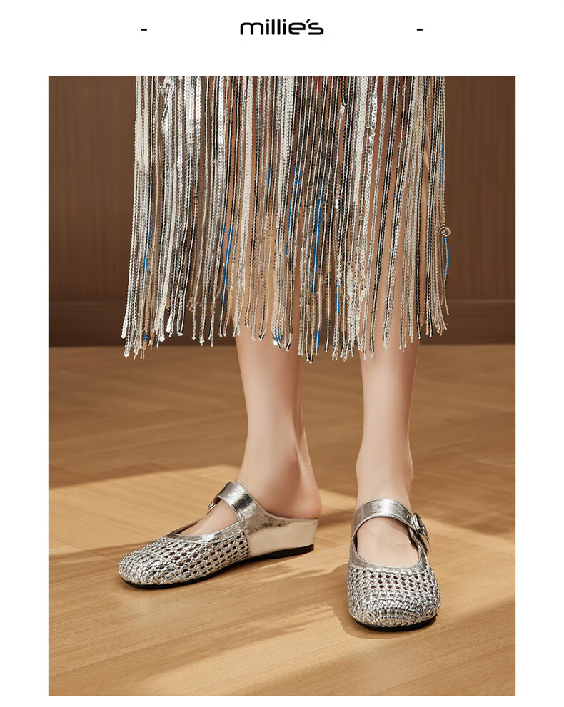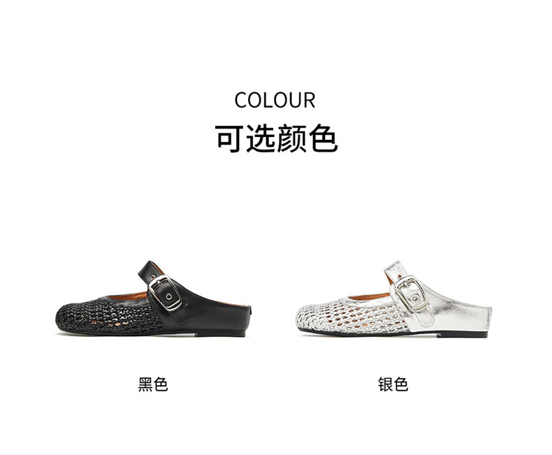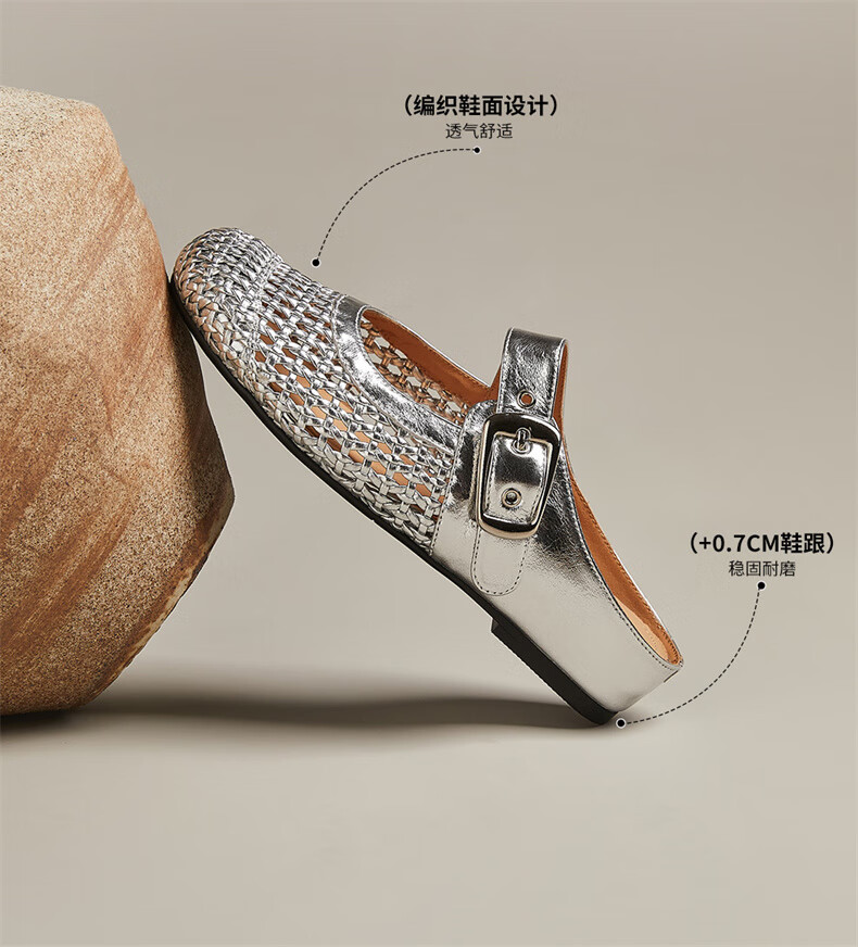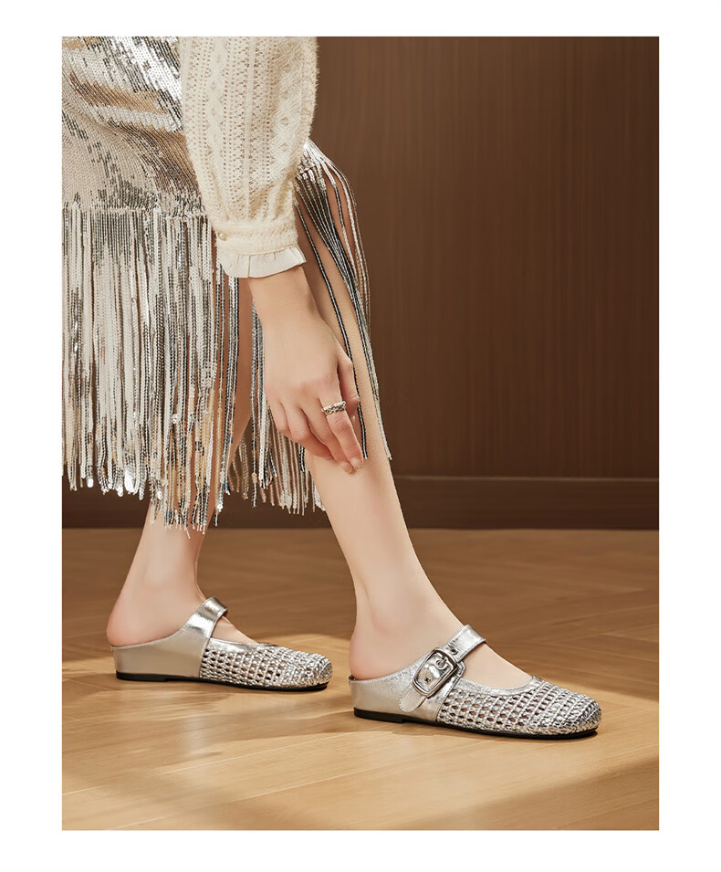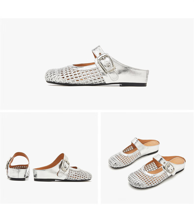 妙丽穆勒鞋女低跟镂空外穿包头时尚2025夏季新款百搭休闲时尚半拖鞋 银色 38 (240mm) 标准码