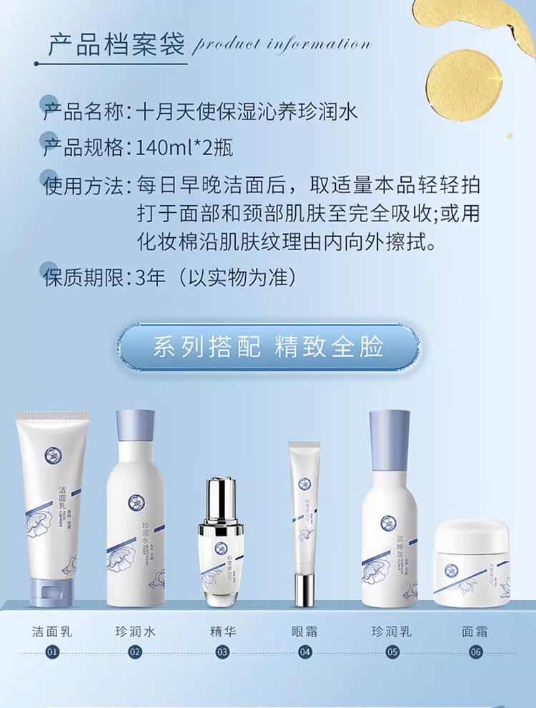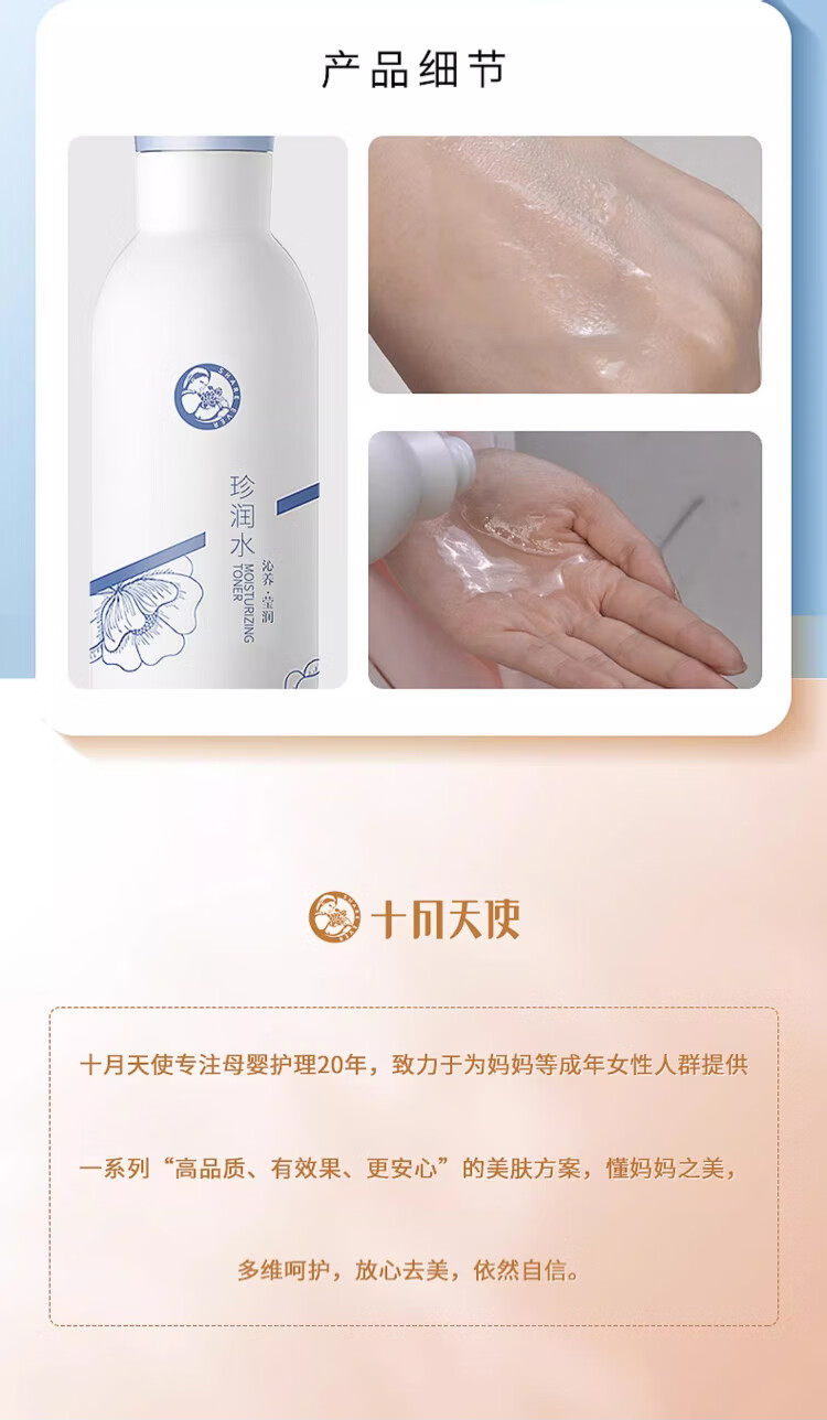 十月天使爽肤水补水保湿女性化妆水护肤品夏季补水用保湿水 补水蓝睡莲2瓶
