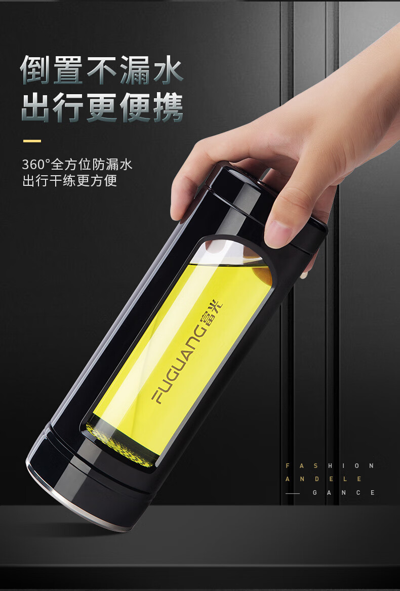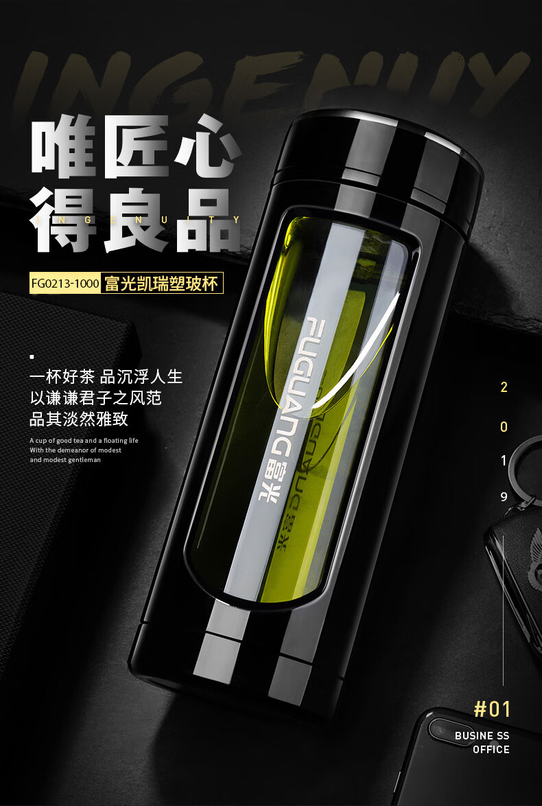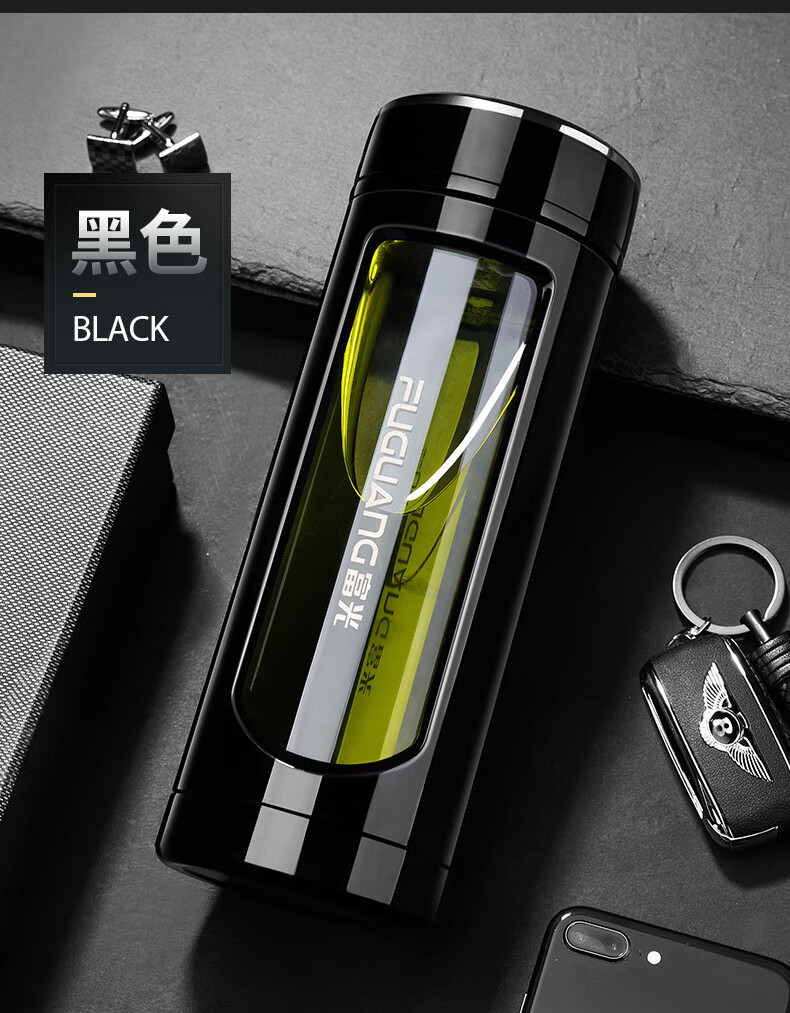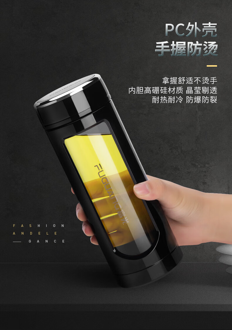 PJ玻璃杯塑玻杯防烫隔热车载防摔茶水分离车载商务茶杯 经典款大容量-蓝色1000ml