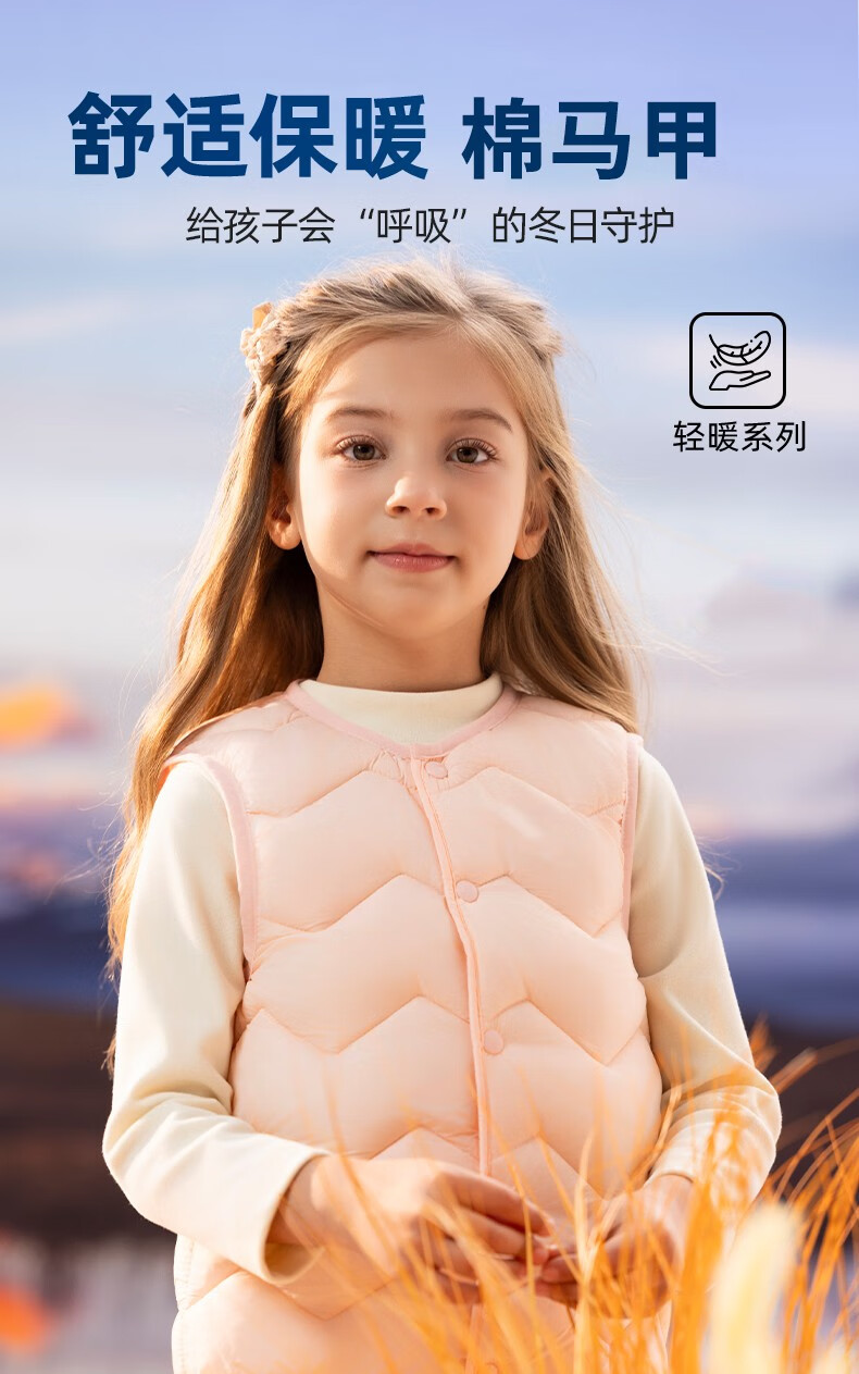 儿童背心秋冬坎肩男童女童春秋内穿外搭棉马甲小背心 粉红色 100 (推荐身高73-85cm)