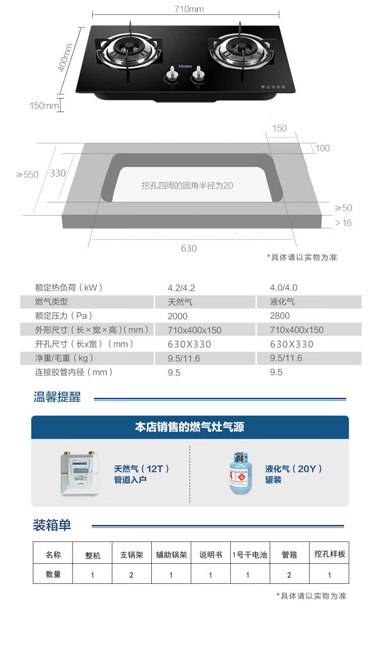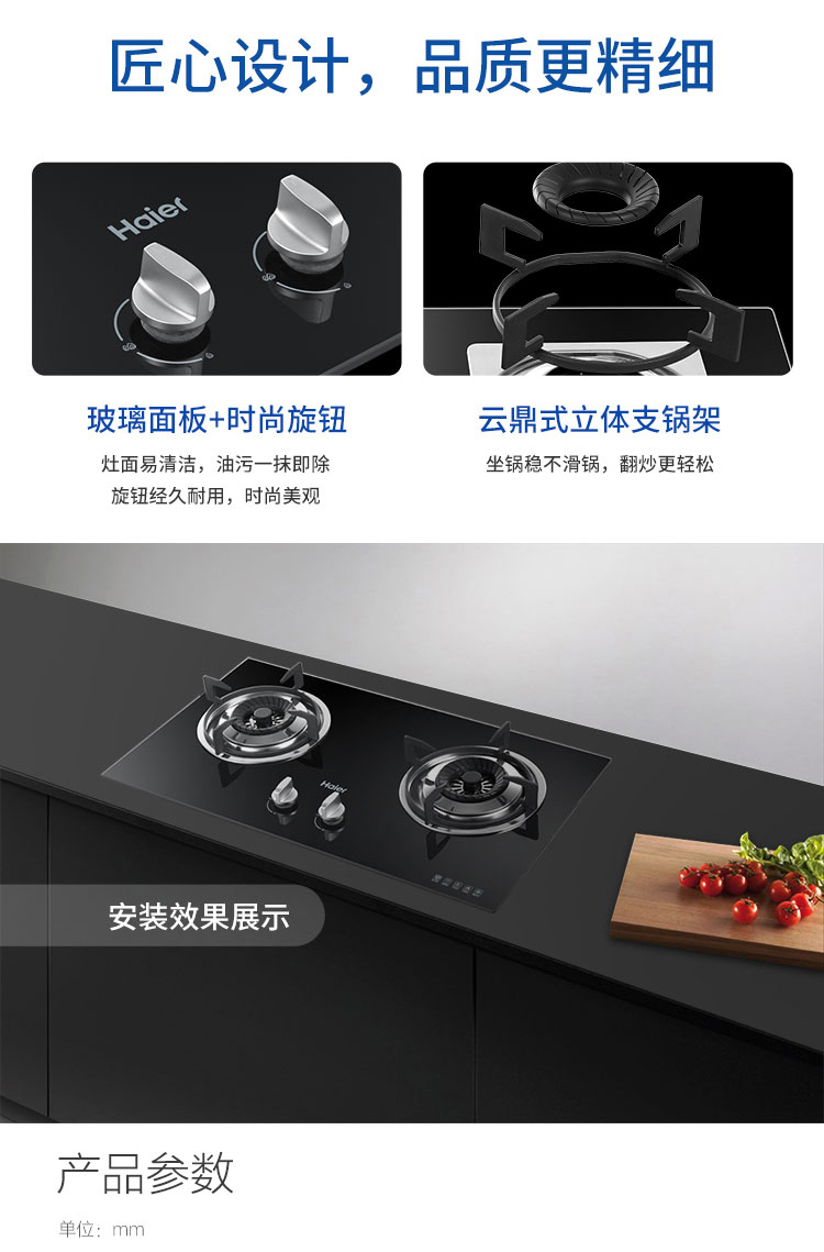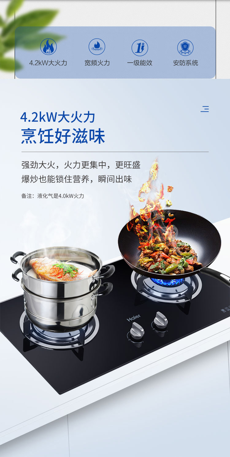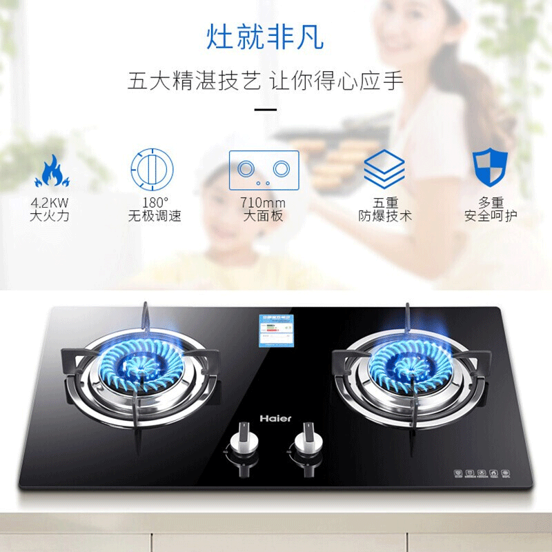 海尔(Haier)台式嵌入式燃气灶4.2大火力天然气灶玻璃面板灶家用灶具炉 液化气( 4.0火力、开孔630*330)