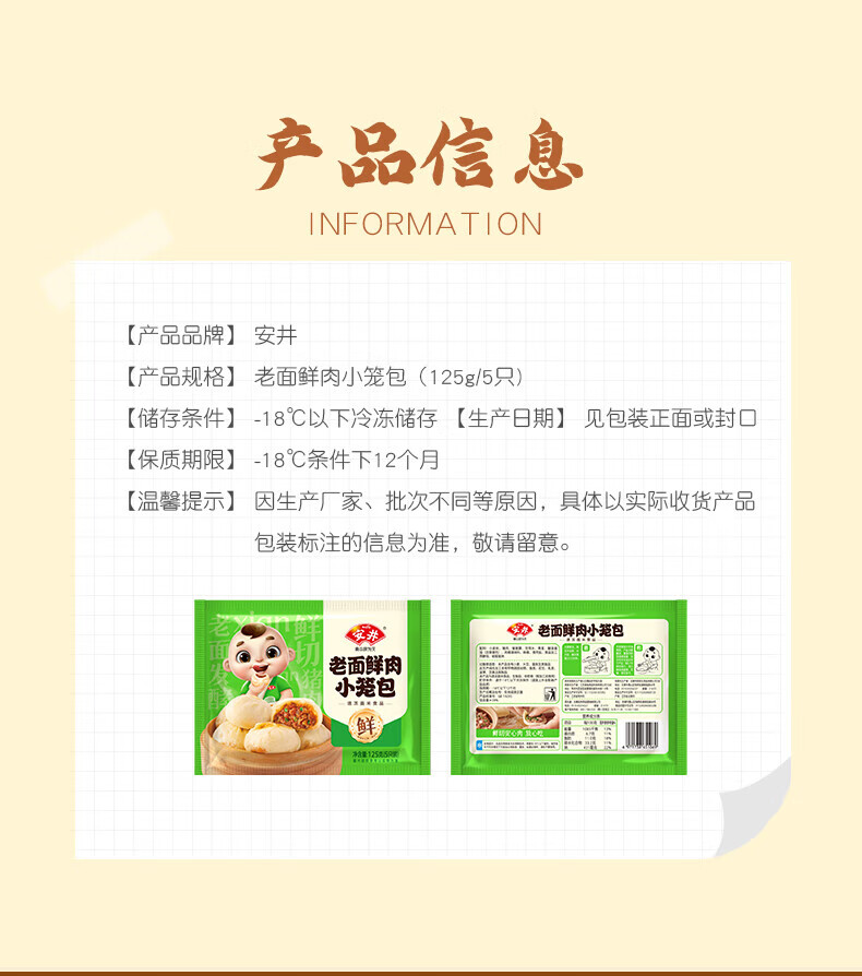 安井125g老面鲜肉小笼包老面手作皮薄馅鲜 美味早点早餐【10包装】 125g老面鲜肉小笼包10袋