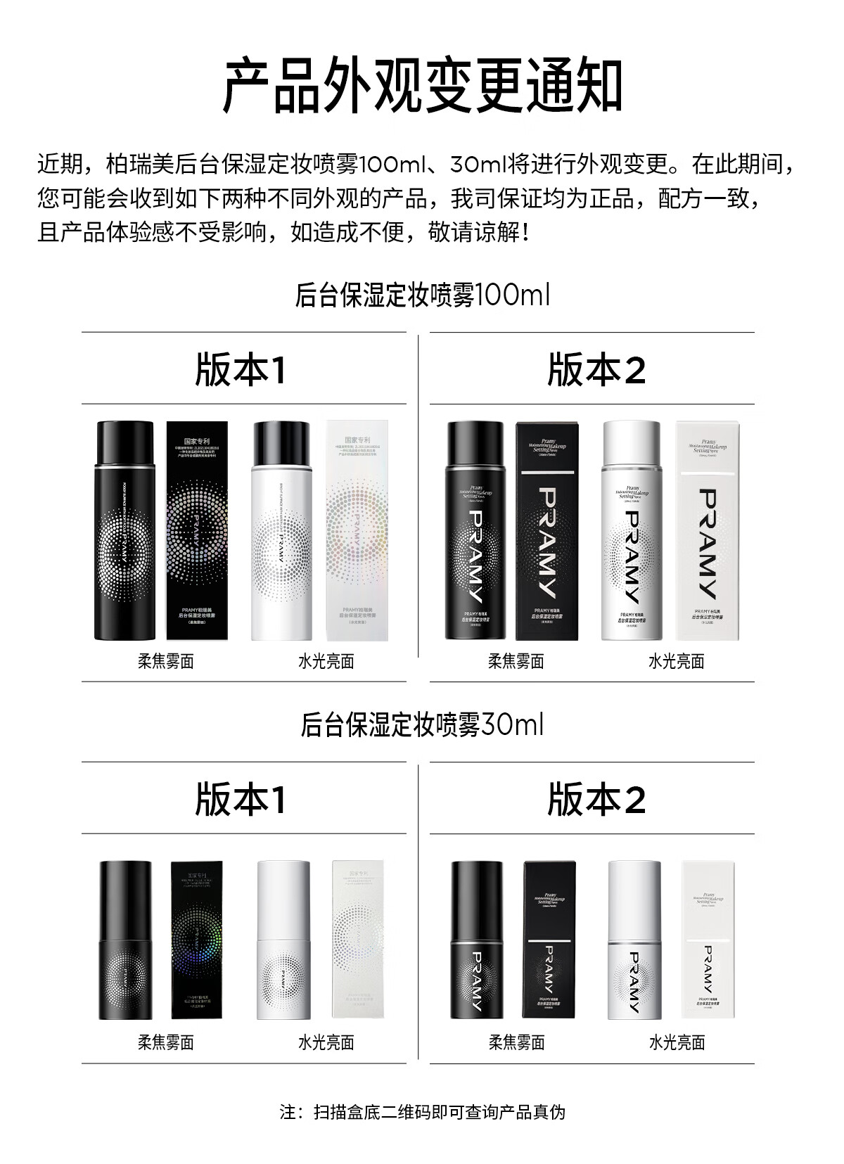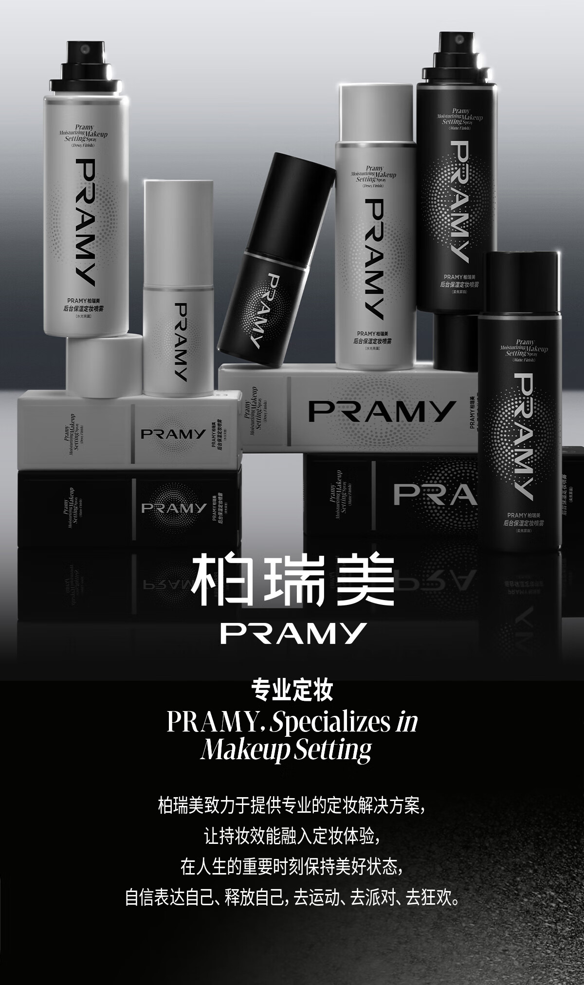 柏瑞美(PRAMY)定妆喷雾经典款快速持久定妆保湿控油不易脱妆便携带E 柔焦雾面(黑瓶)100ml