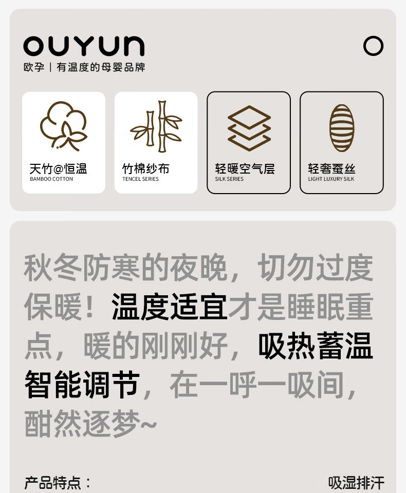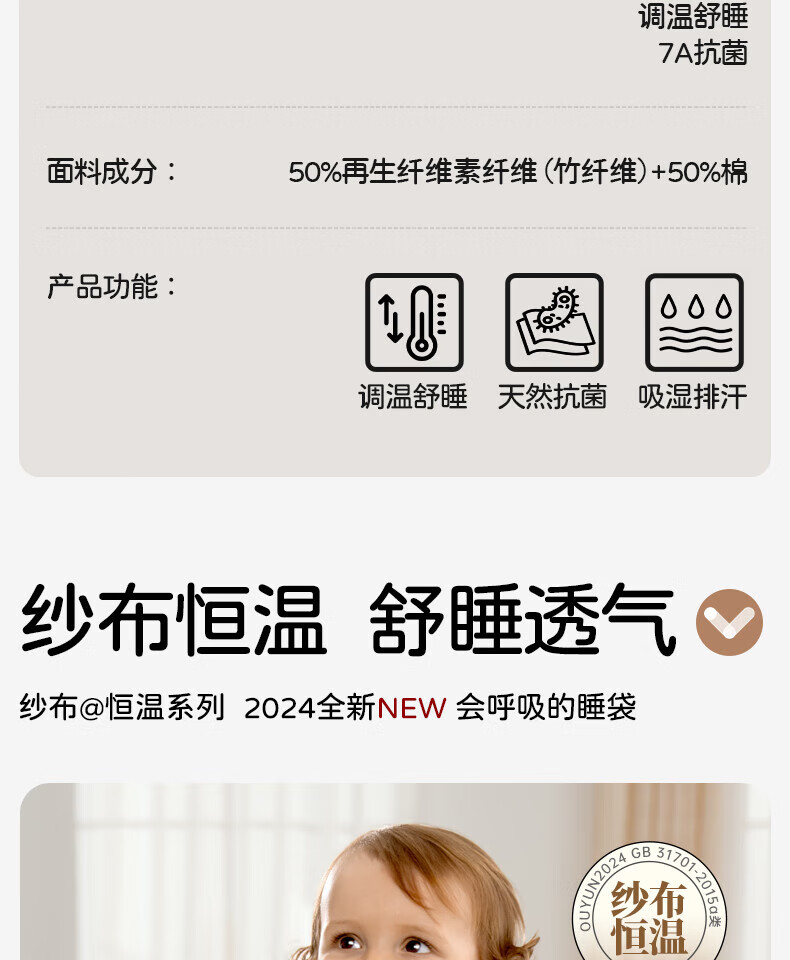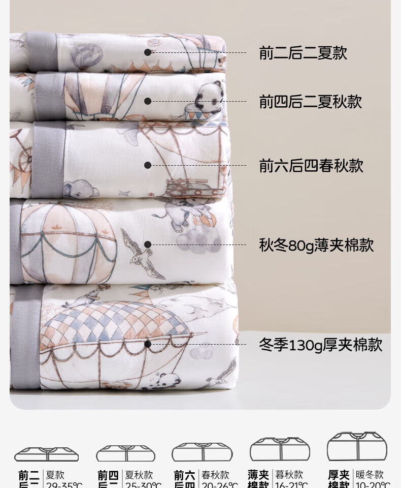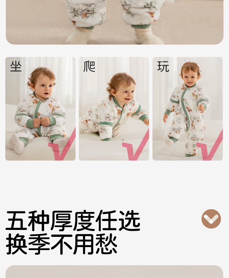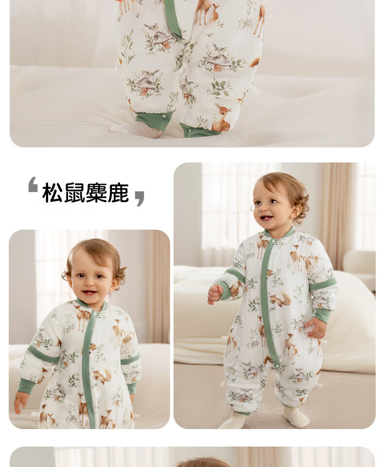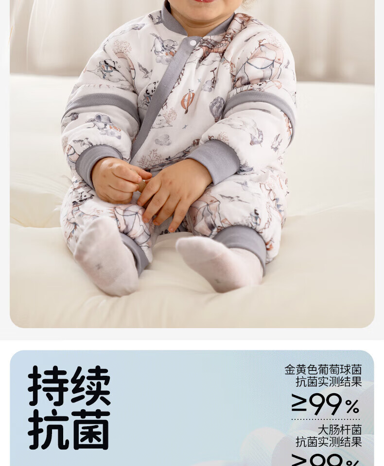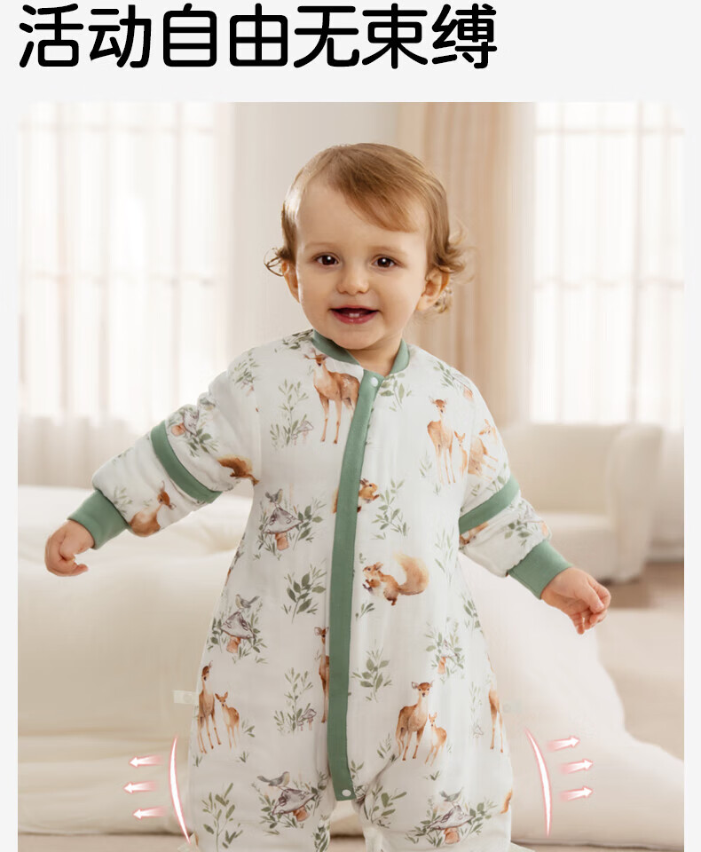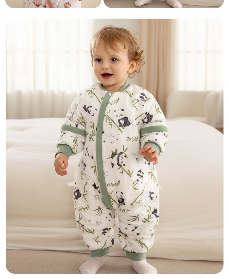 欧孕(OUYUN)【小清心】婴儿睡袋秋薄竹棉纱布防踢被新生儿睡袋 美人鱼【厚夹棉】 80建议身高55-80cm(3-18个月)
