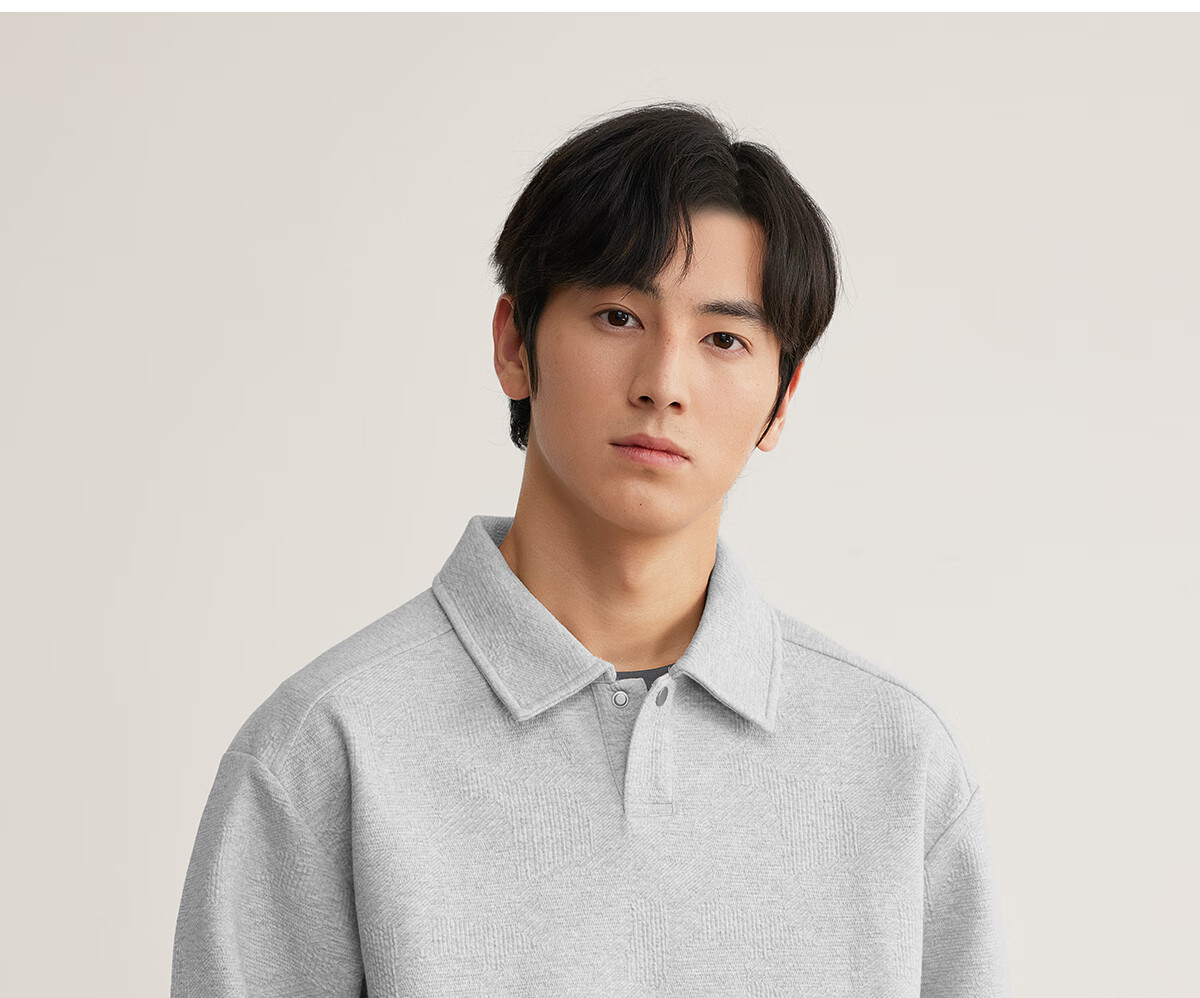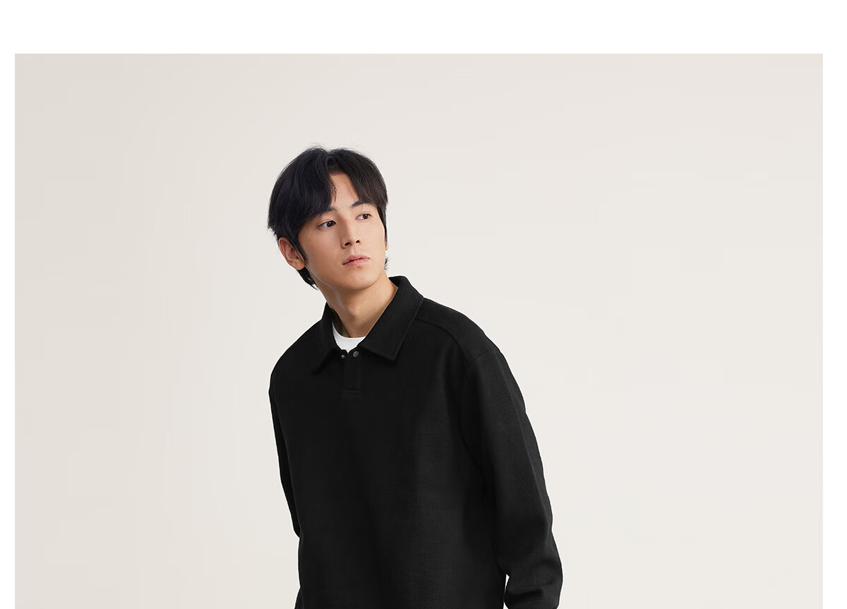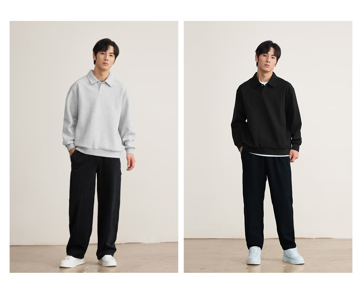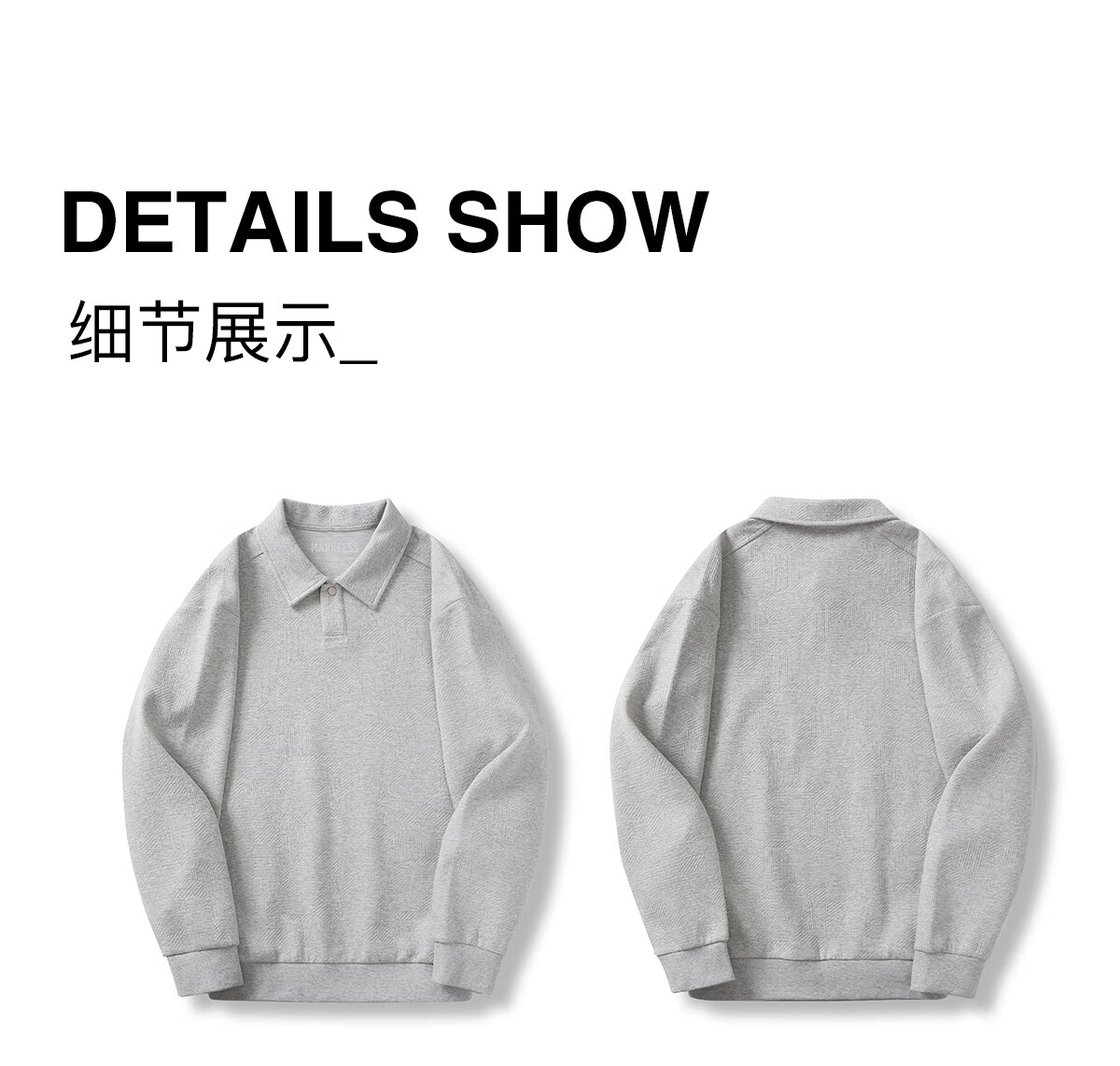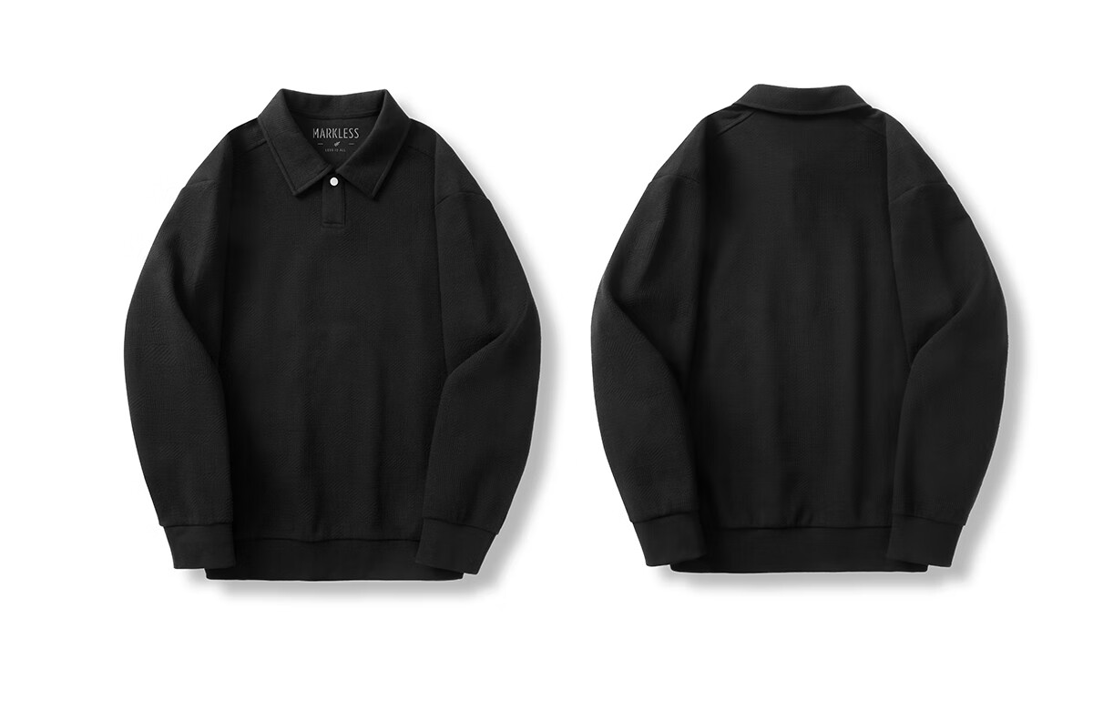 MARKLESS提花面料Polo领卫衣男士一粒扣套头休闲宽松翻领上衣5404 黑色 L