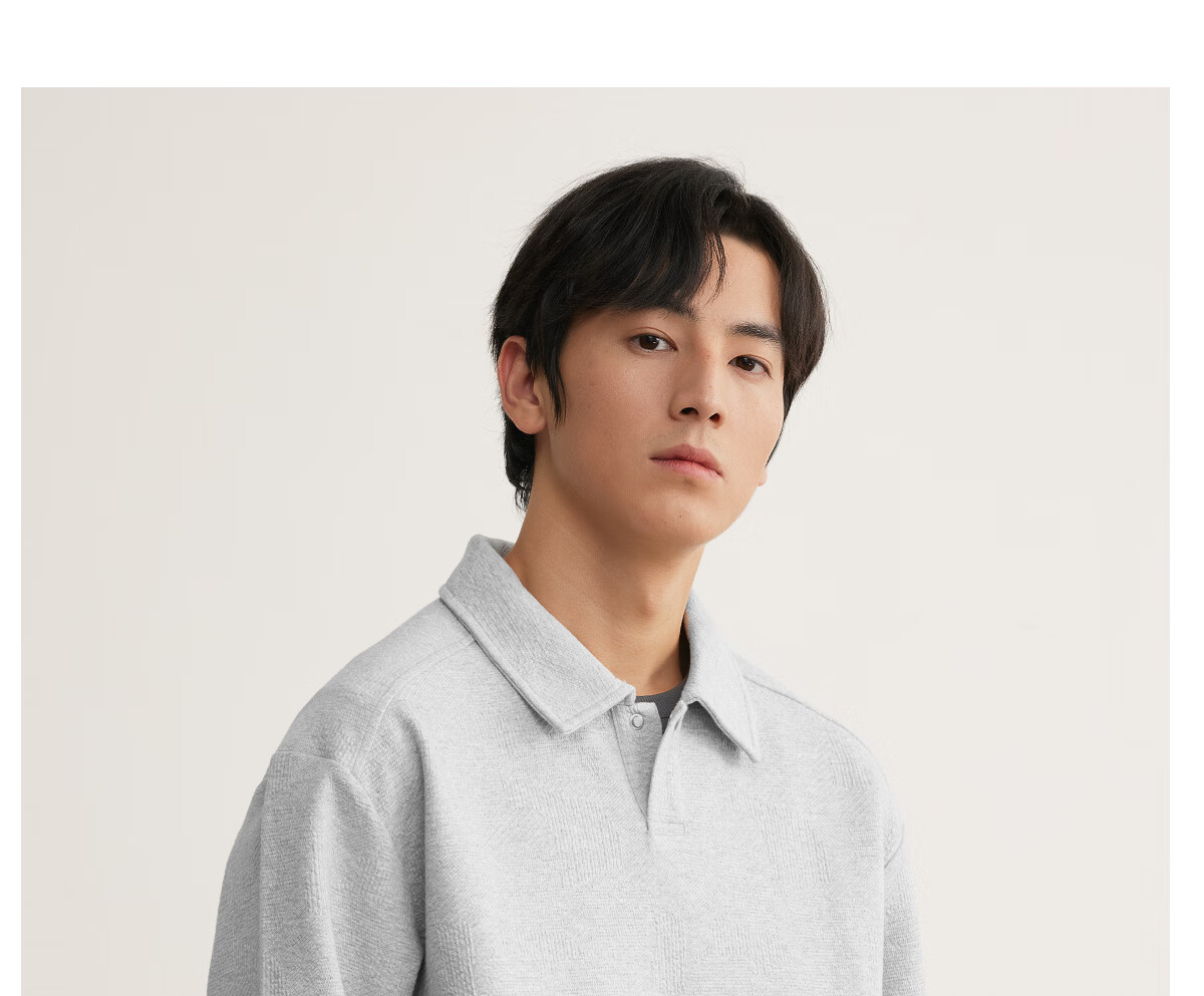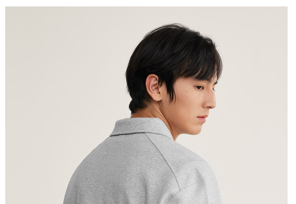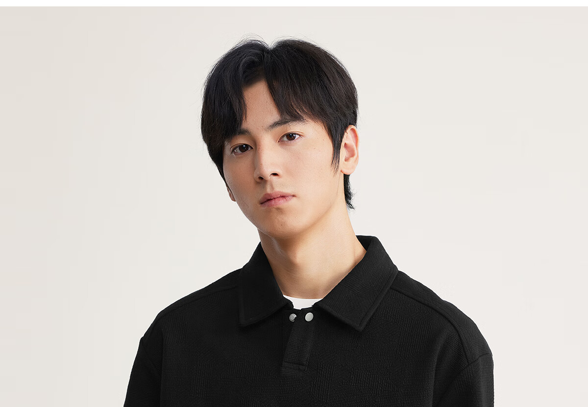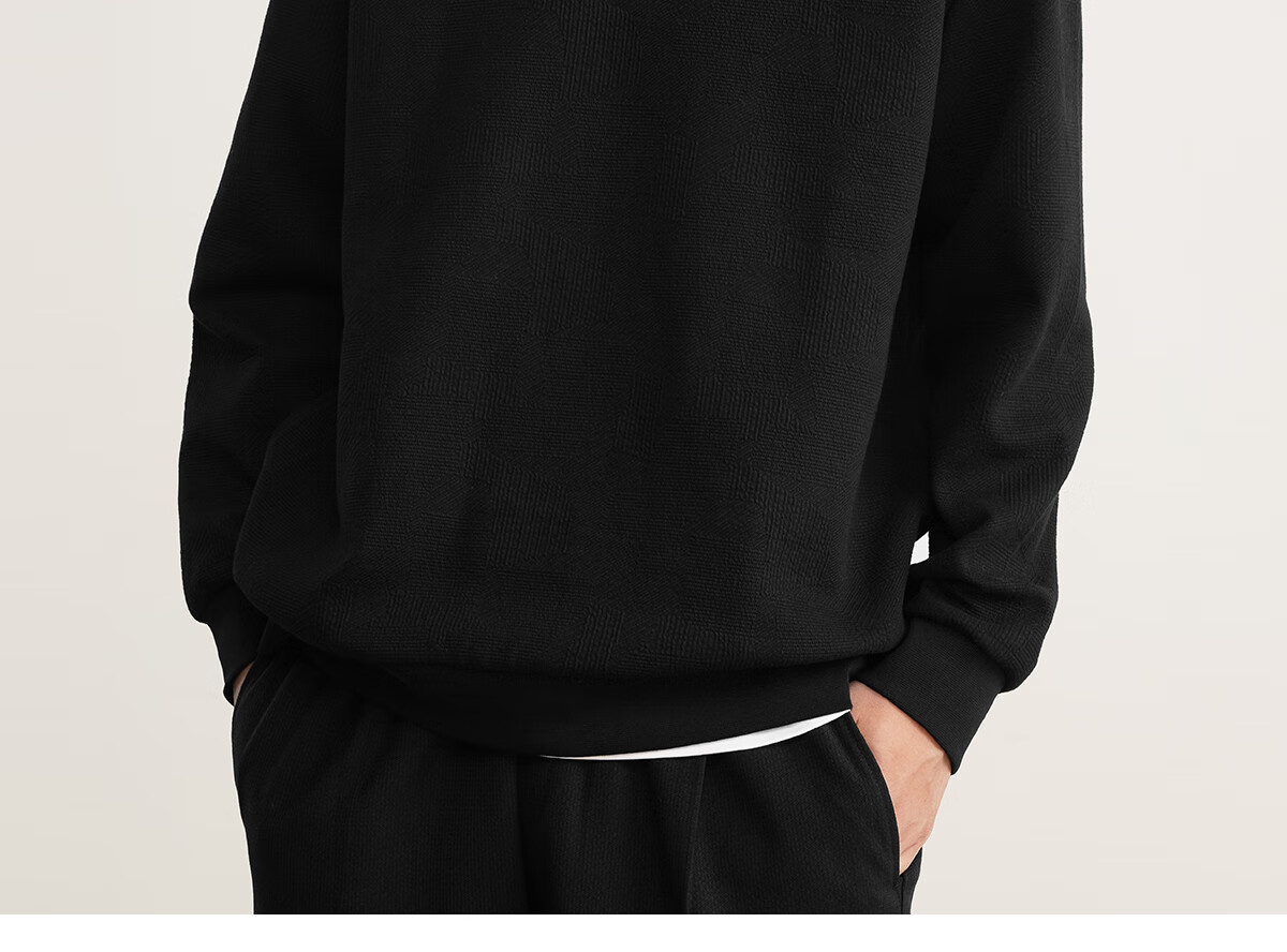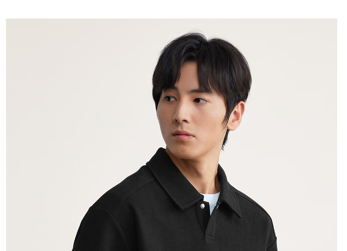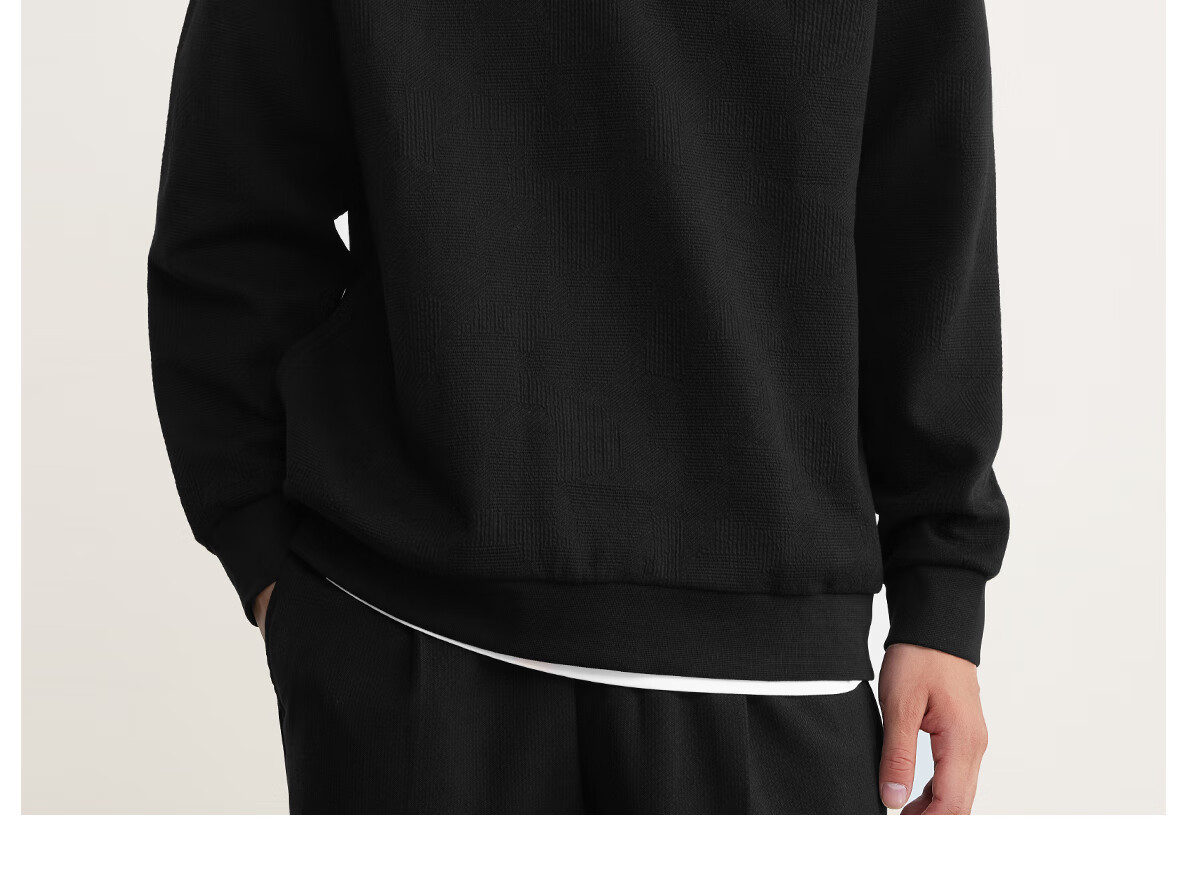 MARKLESS提花面料Polo领卫衣男士一粒扣套头休闲宽松翻领上衣5404 黑色 L