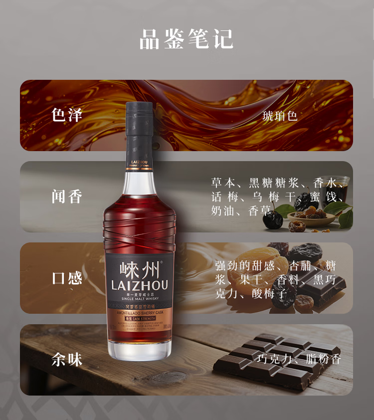崃州威士忌酒 阿蒙蒂亚雪莉桶 原桶桶强 礼盒装 洋酒 单一麦芽威士忌 700ml*1