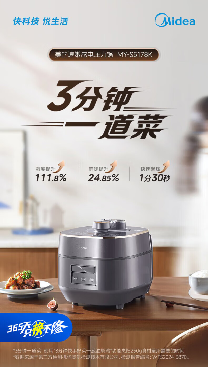 美的(Midea)0涂层电压力锅家用5L大容量多功能烹饪智能预约煮饭煲汤开盖火锅高压锅 MY-S5178K 电压力锅 MY-S5178K 5L