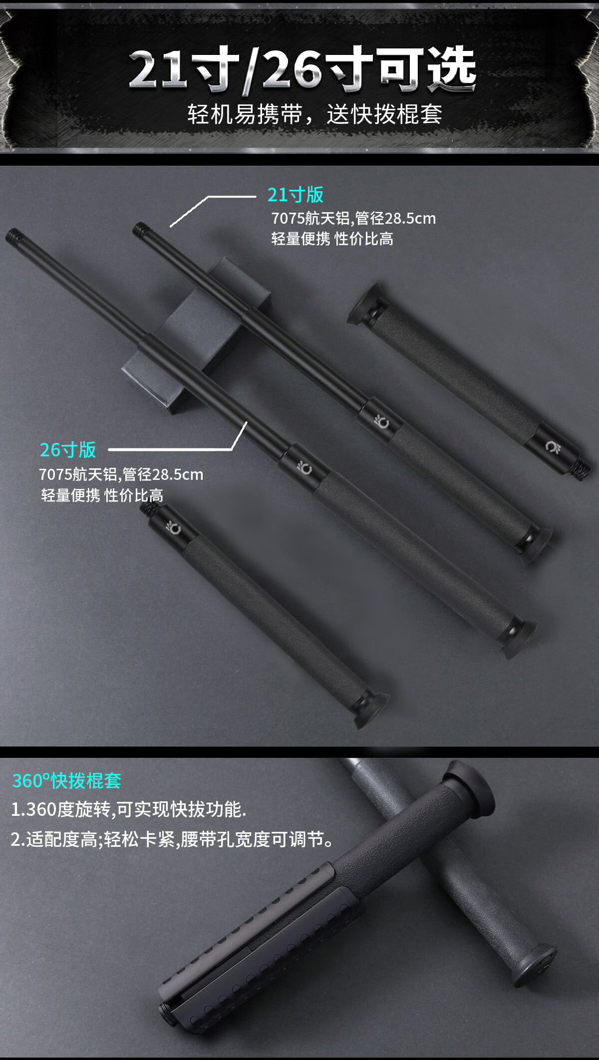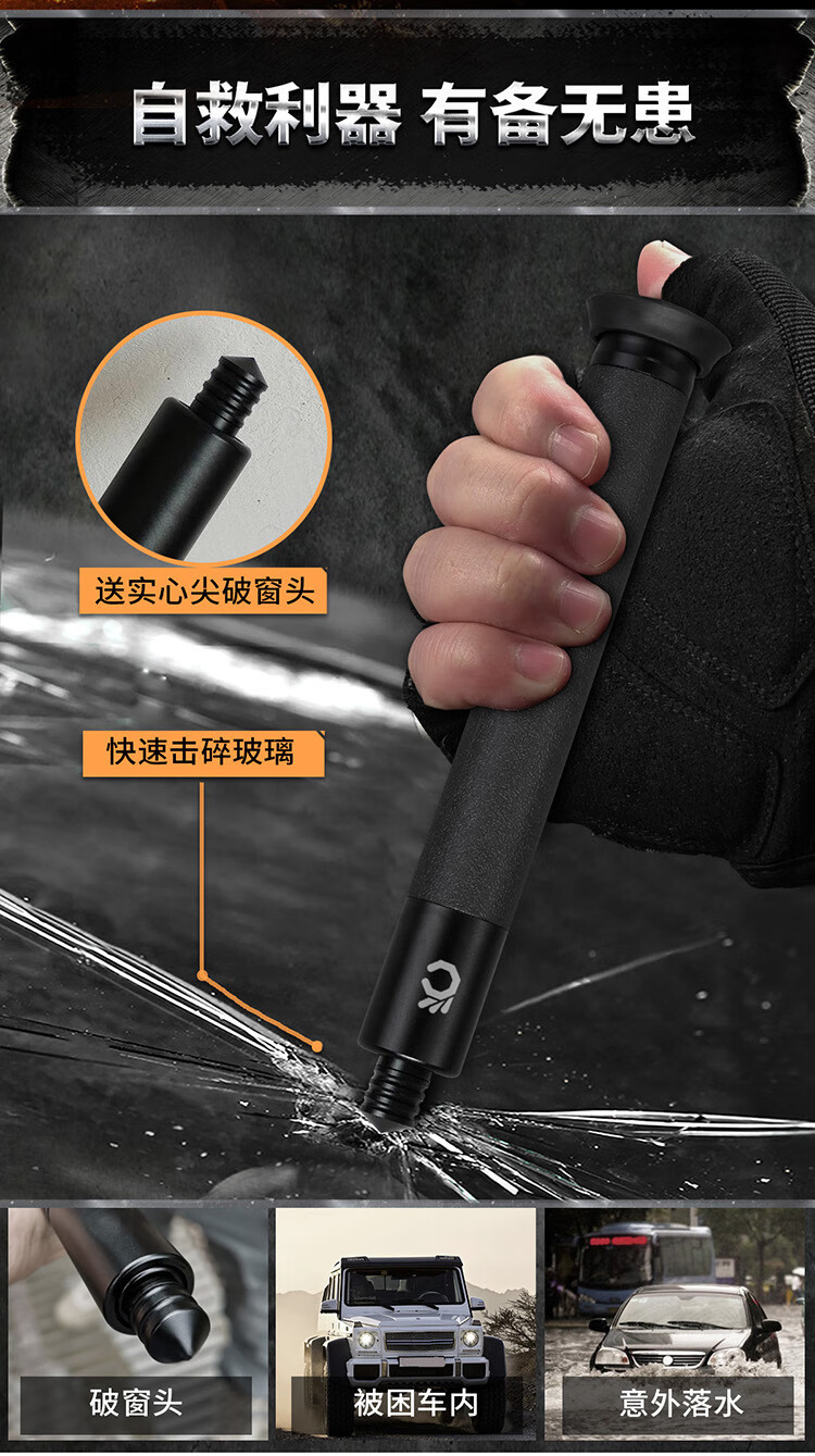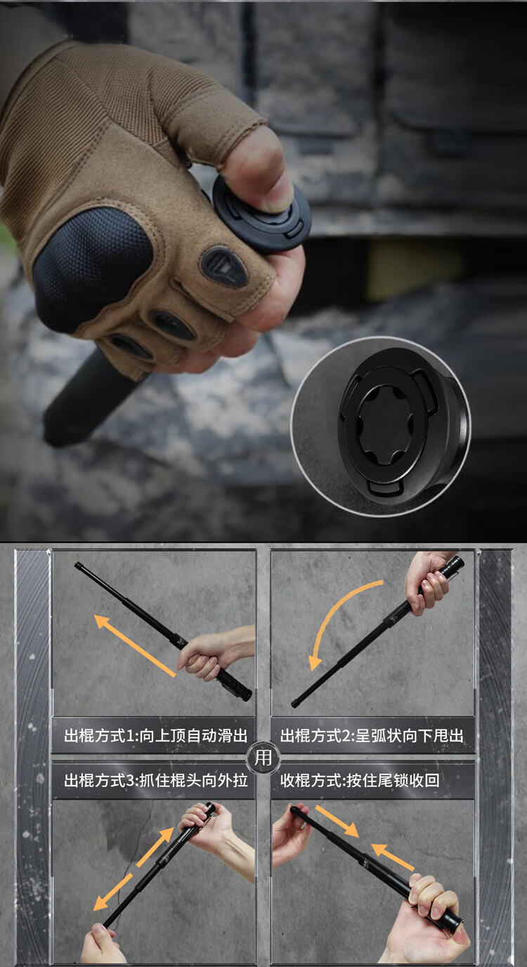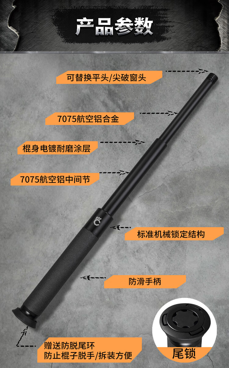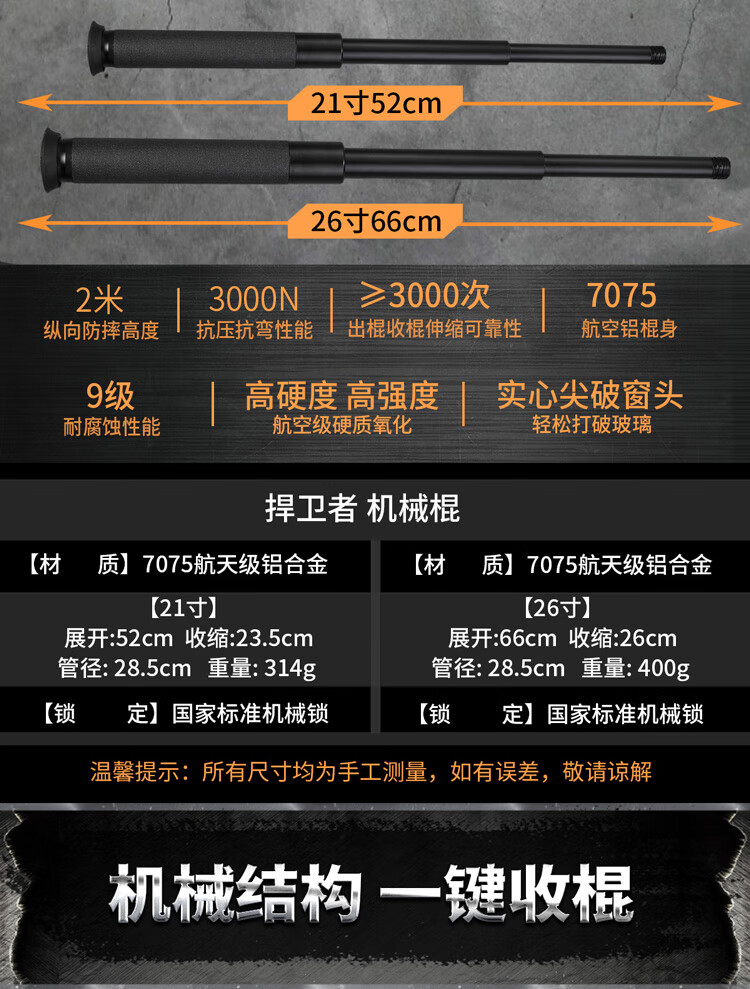 酷撼机械甩棍伸缩加硬加粗破窗防身武器合法随身防狼车载摔棍打狗甩棒 深灰 26寸加固轻机 赠六件套
