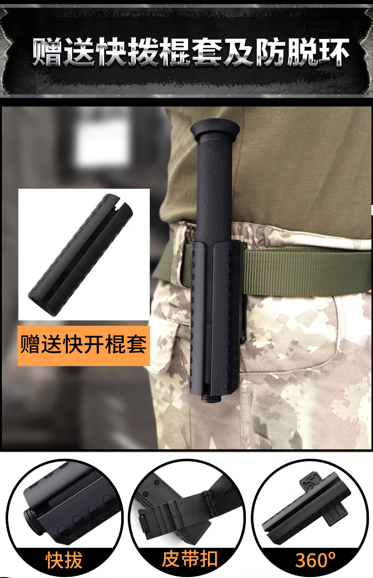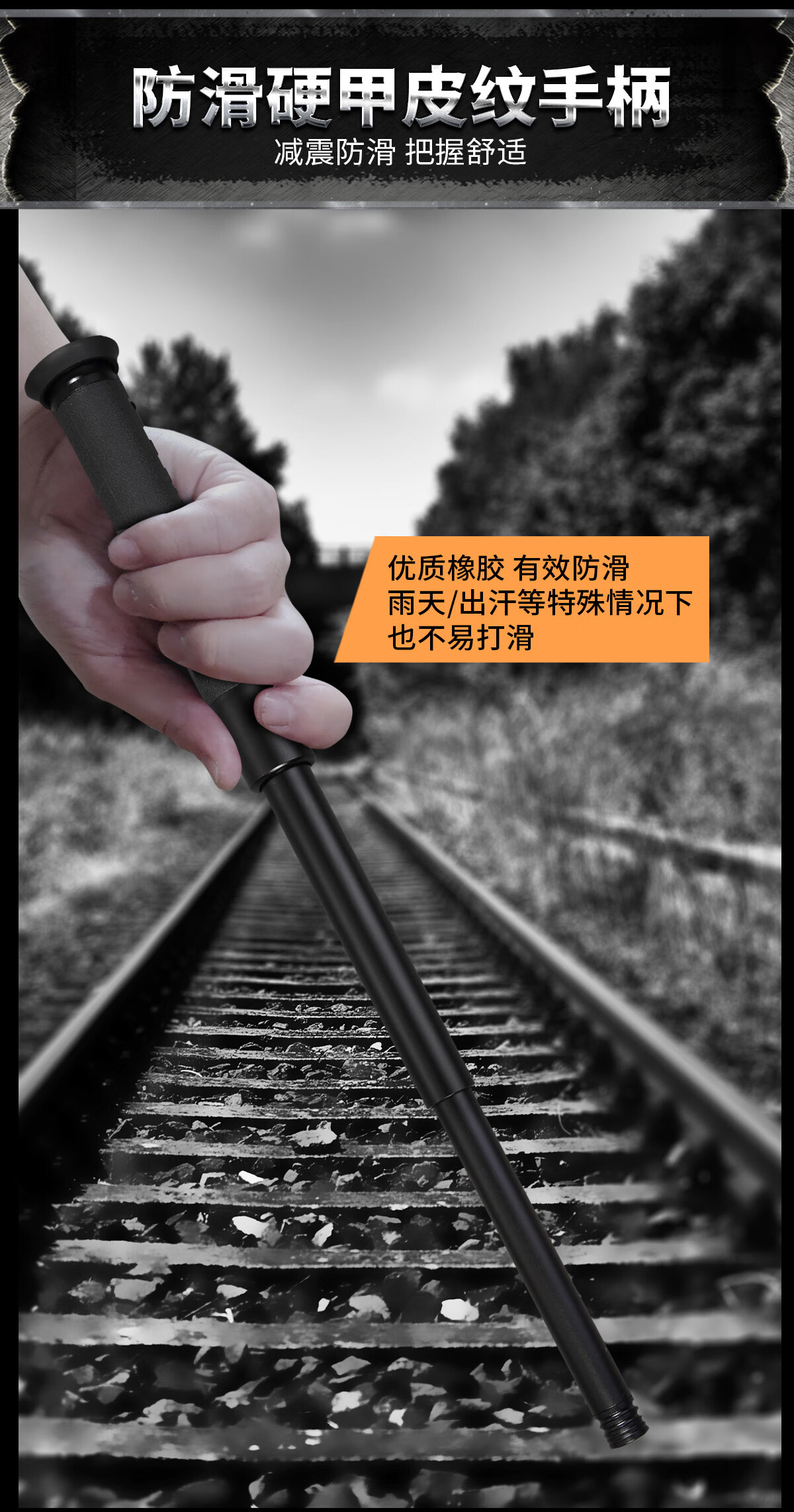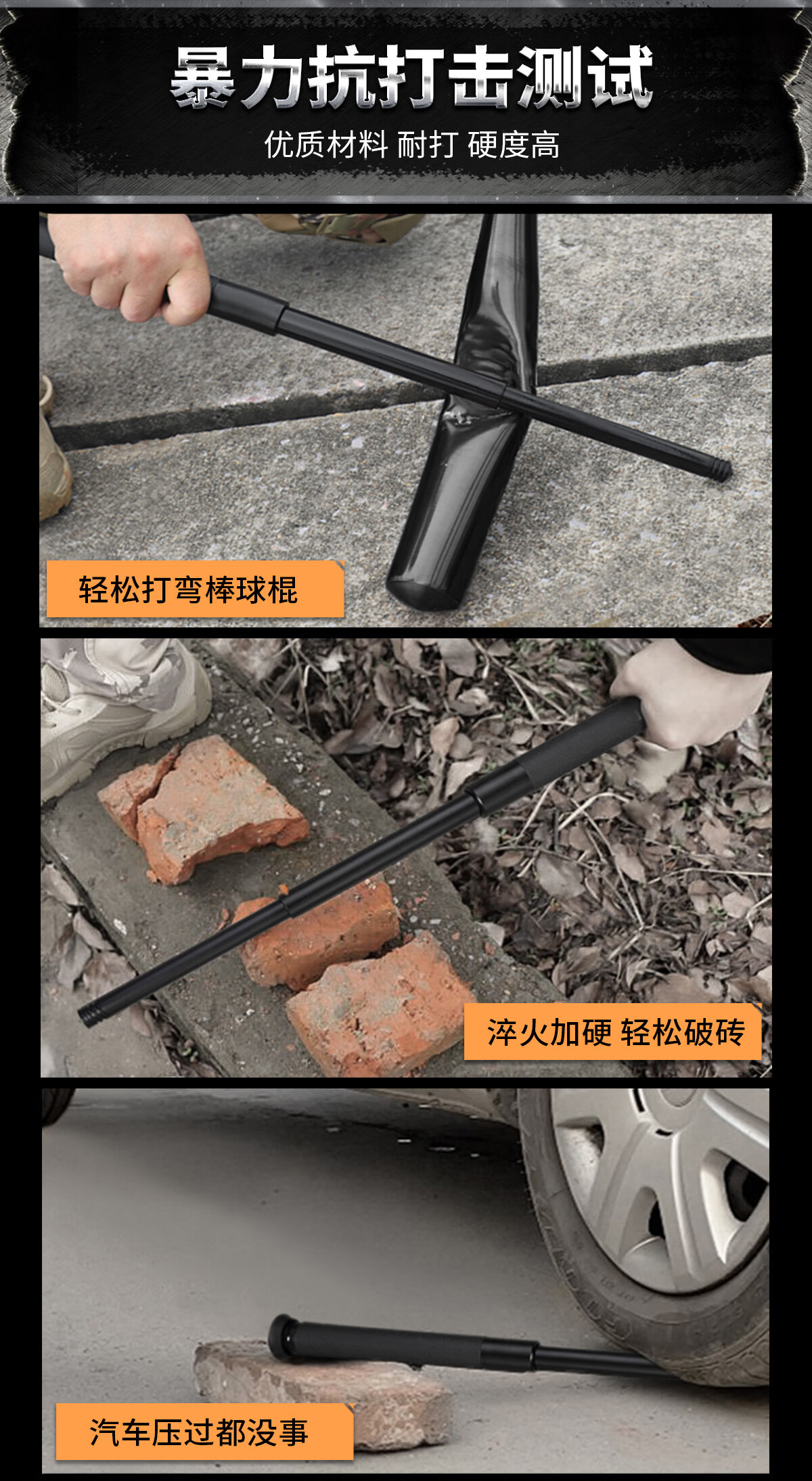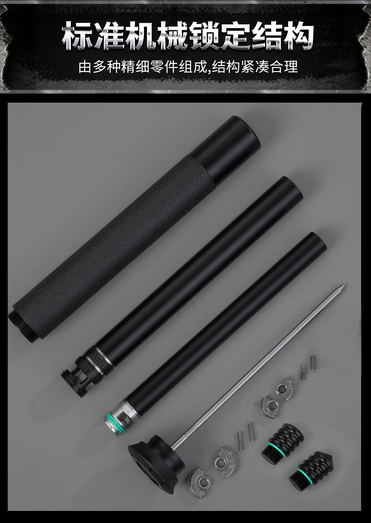 酷撼机械甩棍伸缩加硬加粗破窗防身武器合法随身防狼车载摔棍打狗甩棒 深灰 26寸加固轻机 赠六件套