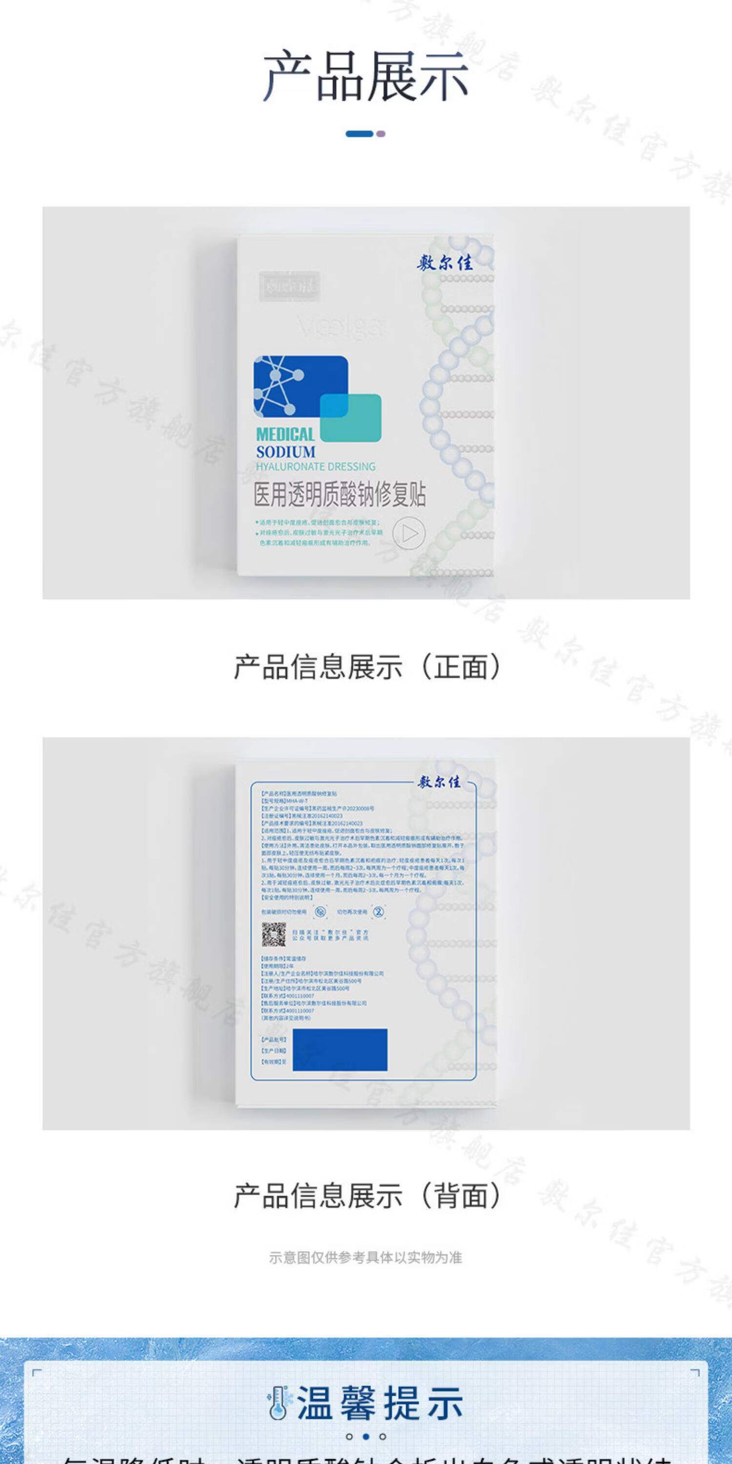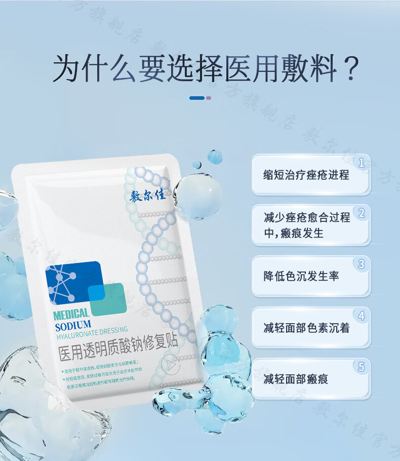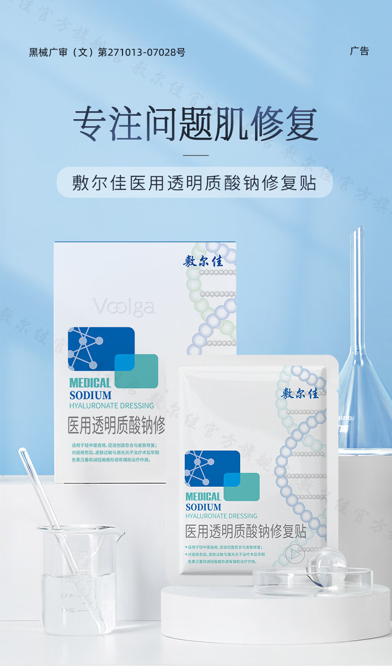 敷尔佳医用透明质酸钠修复贴 白膜 医用敷料中轻度痤疮减轻癫痕创面愈合 2片体验装(经典款)