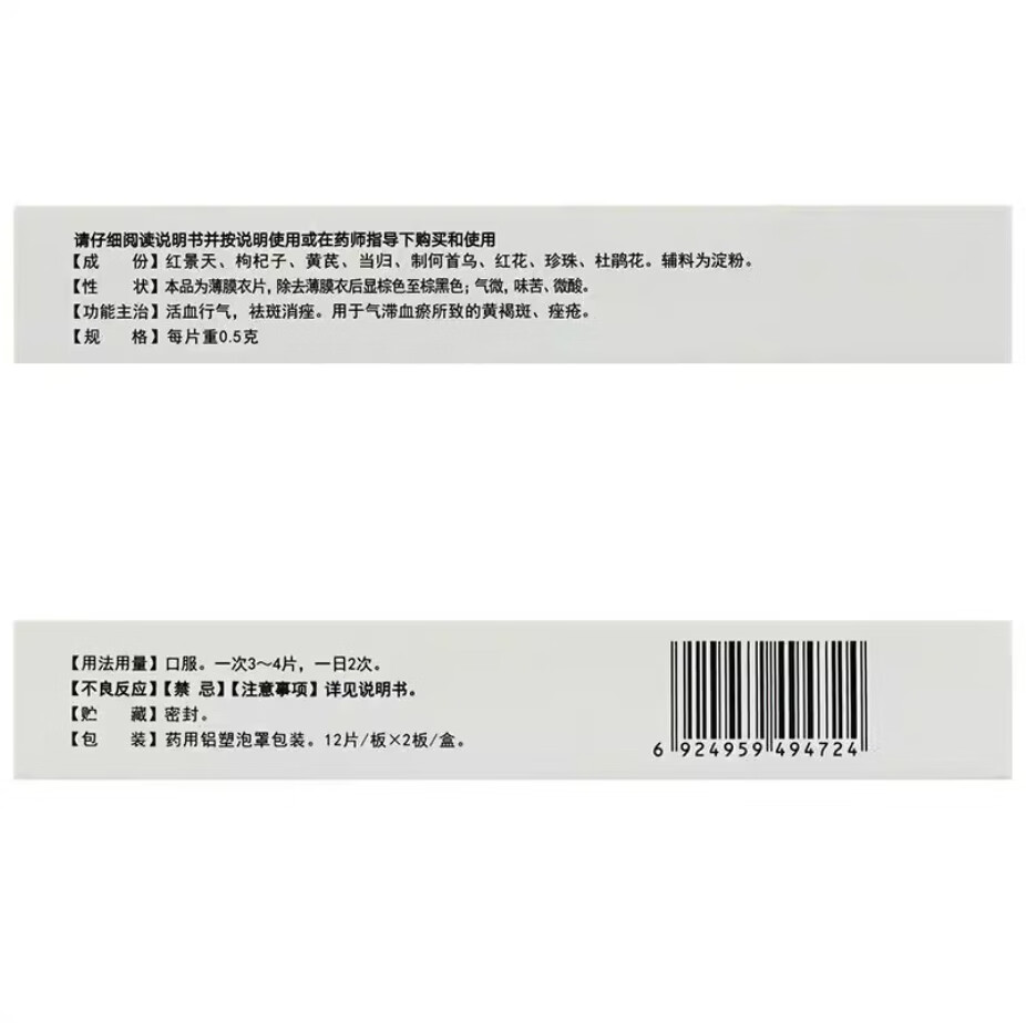 [吉祥春] 景天祛斑片 0.5g*24片/盒 景天祛斑片 活血行气祛斑消做气滞血瘀所致的黄褐斑痤疮 3盒