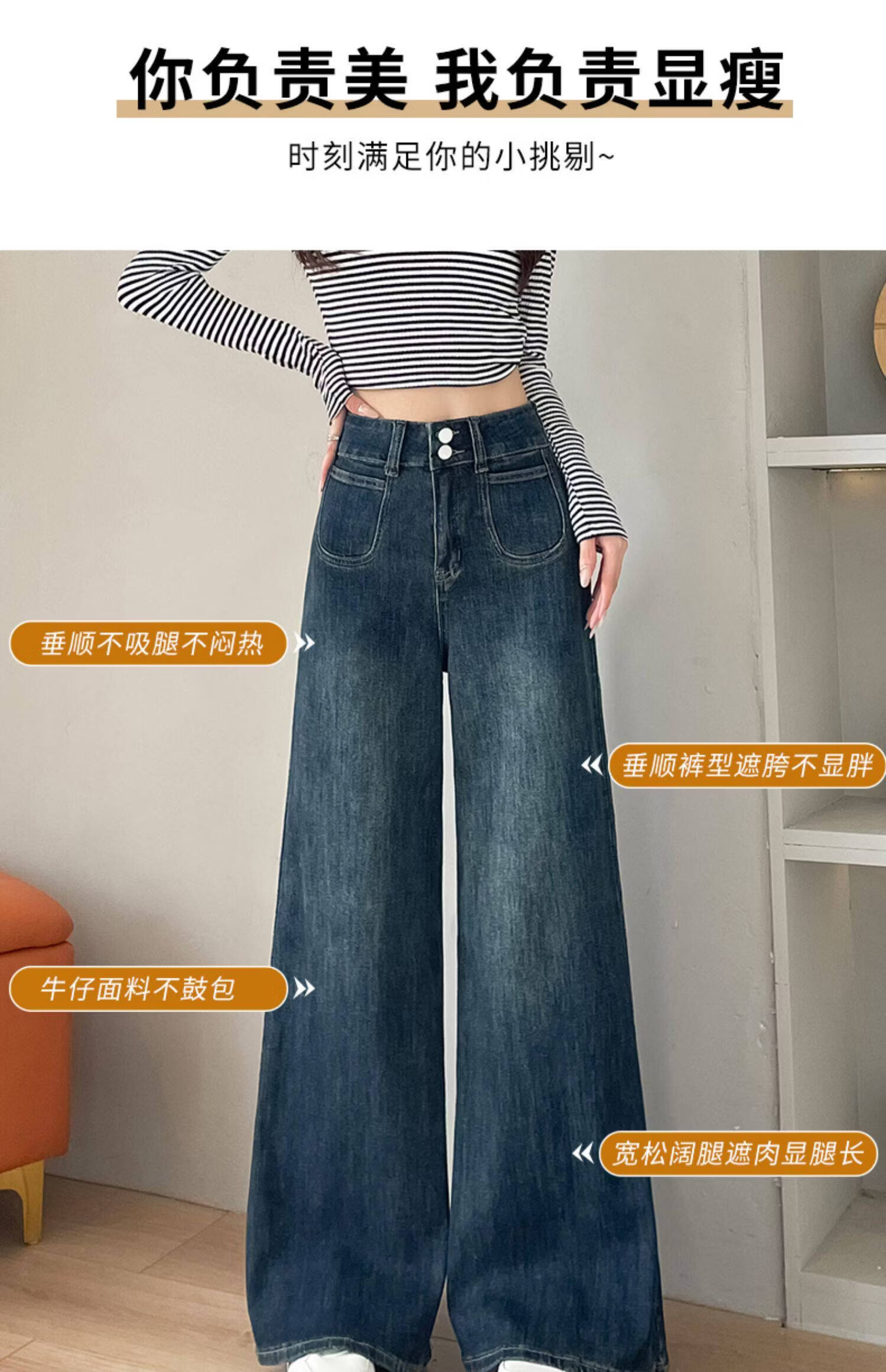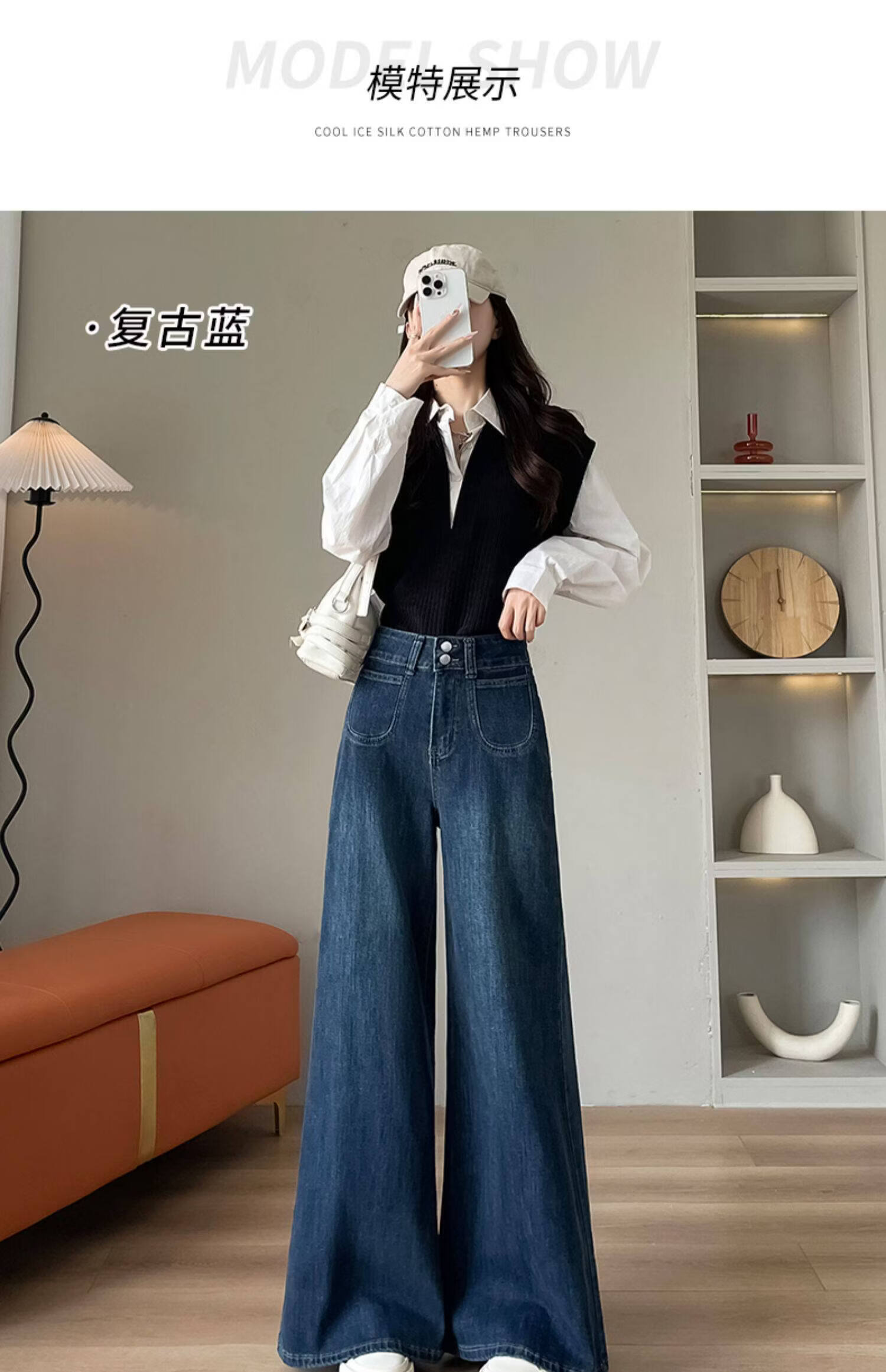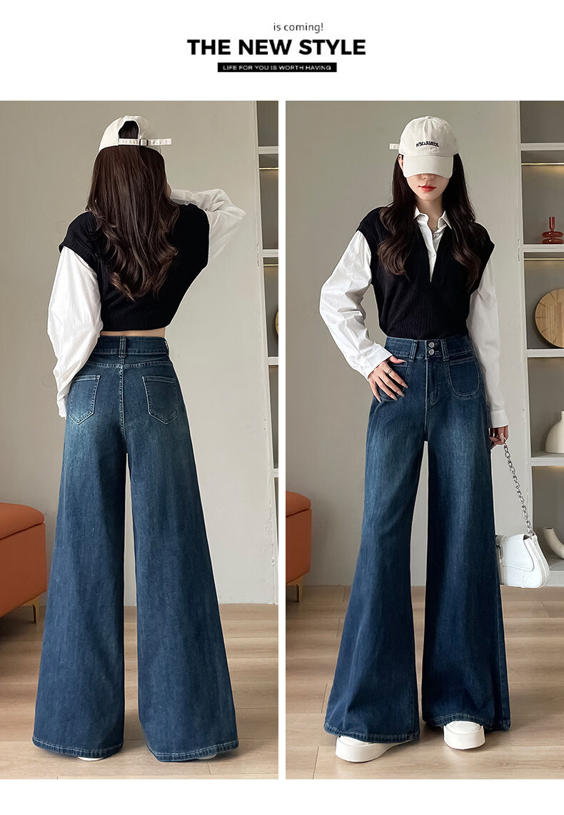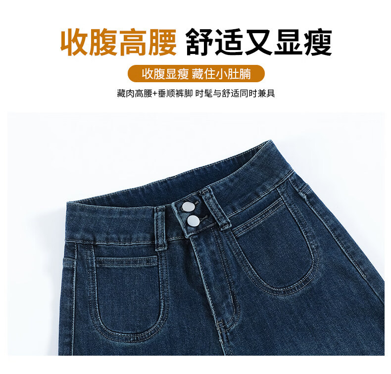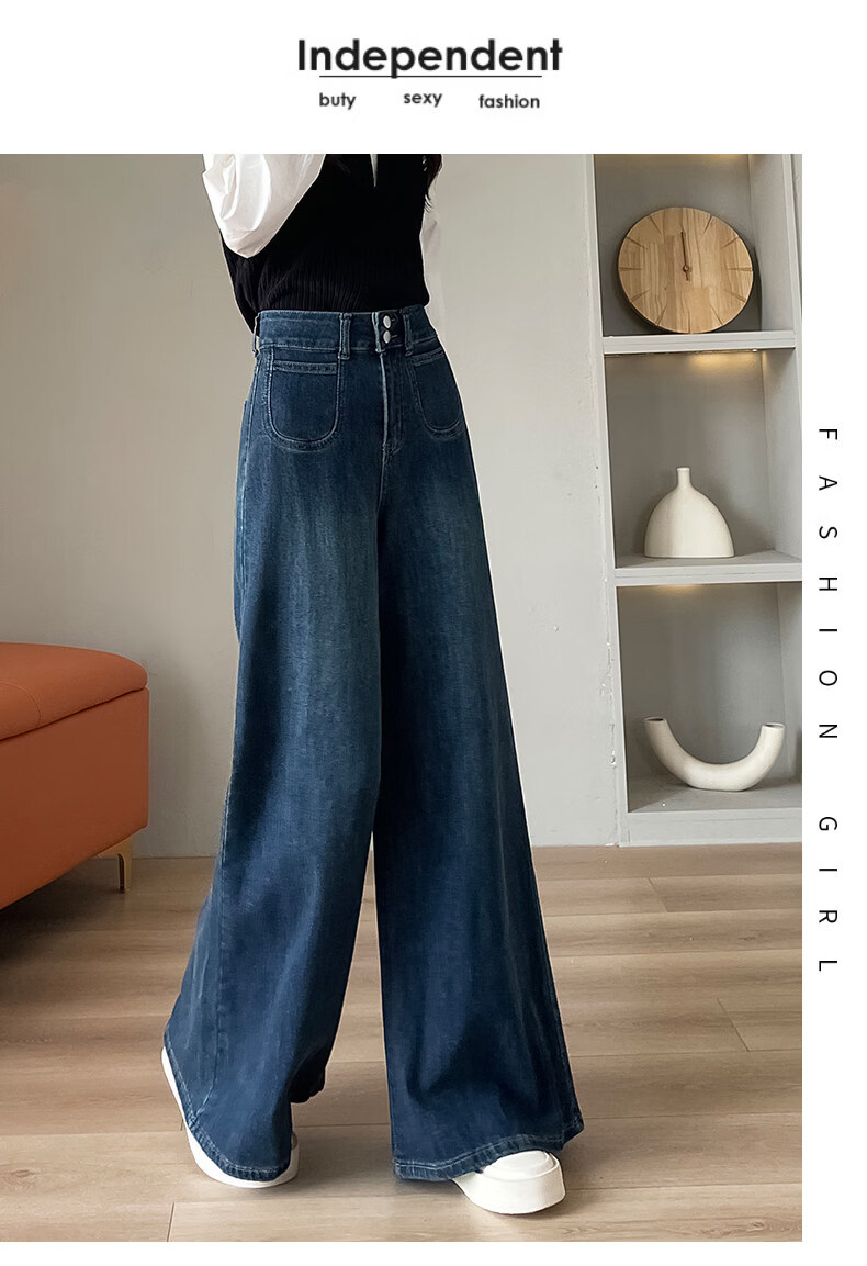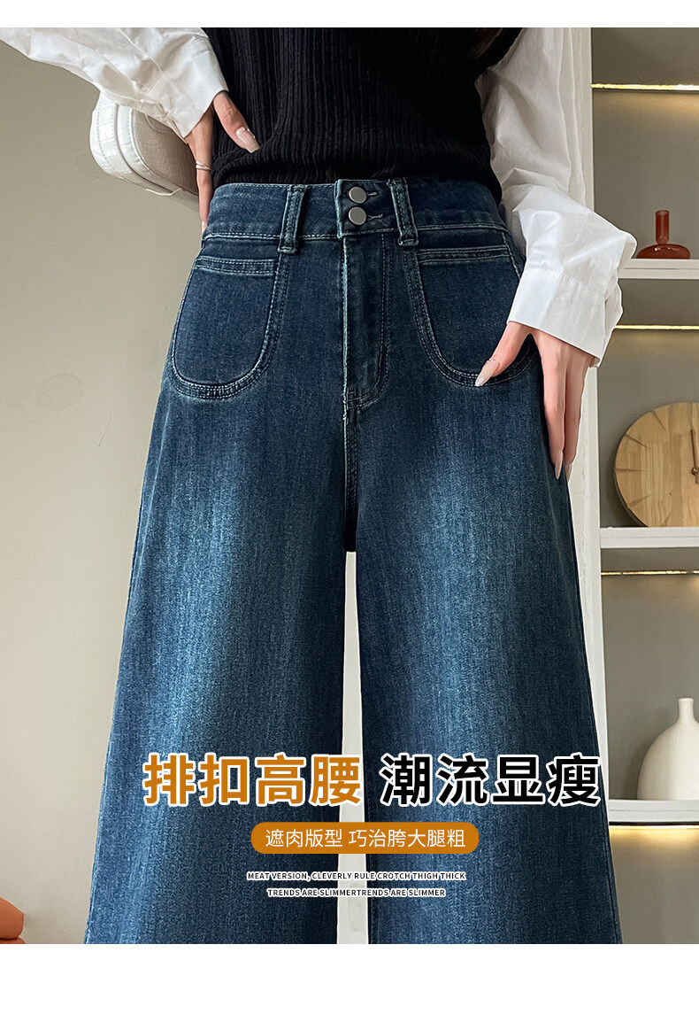浪莎天丝牛仔裤女春季新款小个子高腰双扣休闲裤宽松显瘦垂坠阔腿裤女 复古蓝 【天丝呼吸面料】 L 【推荐96-110斤】
