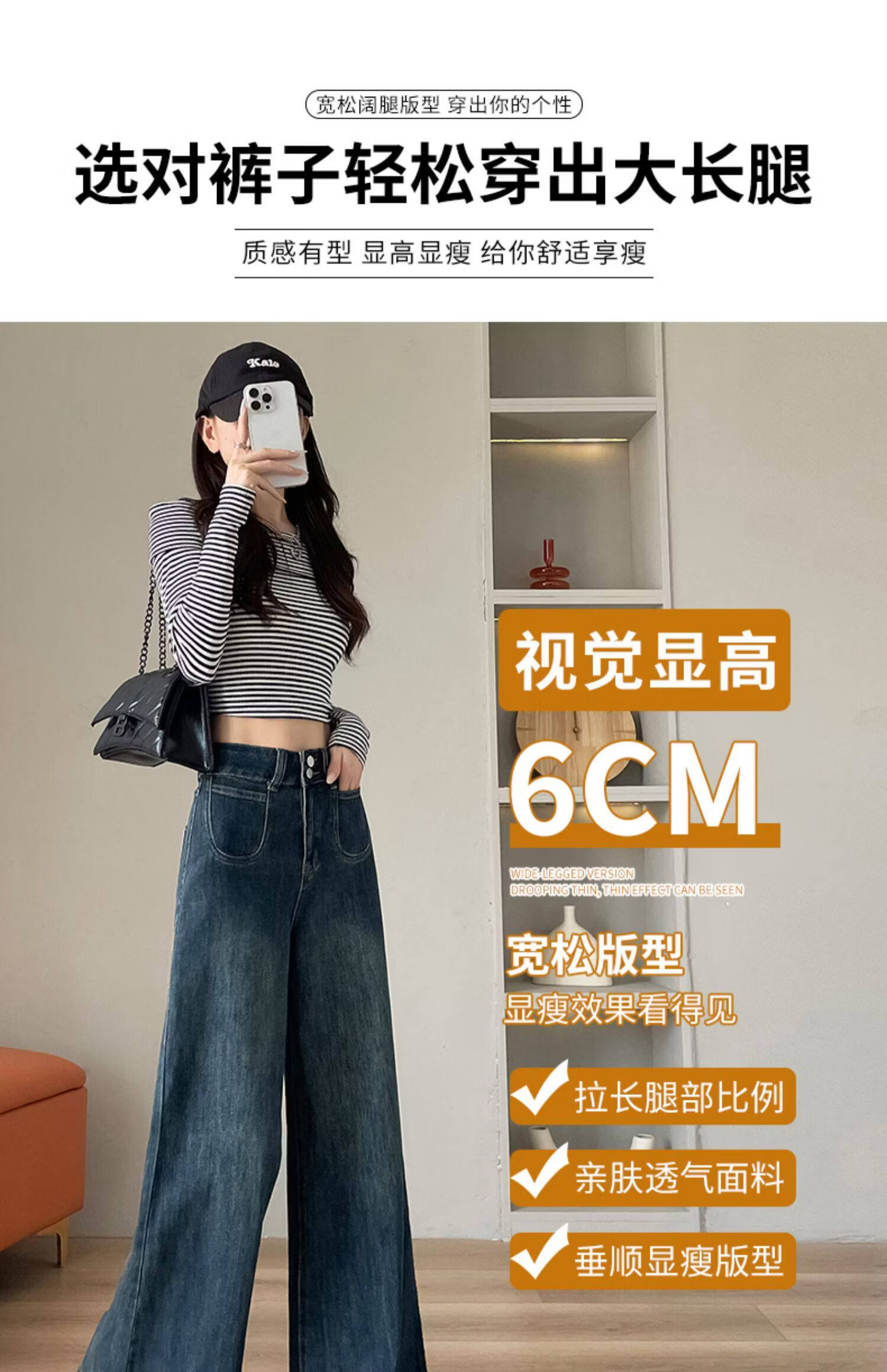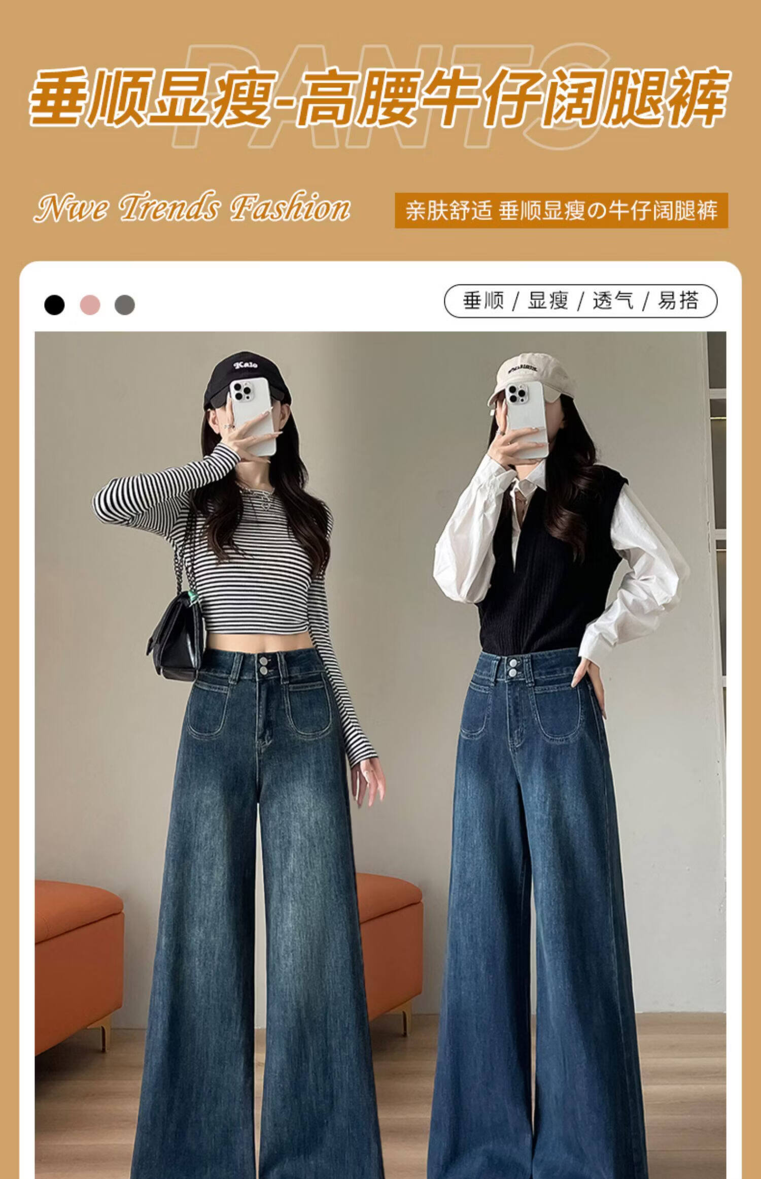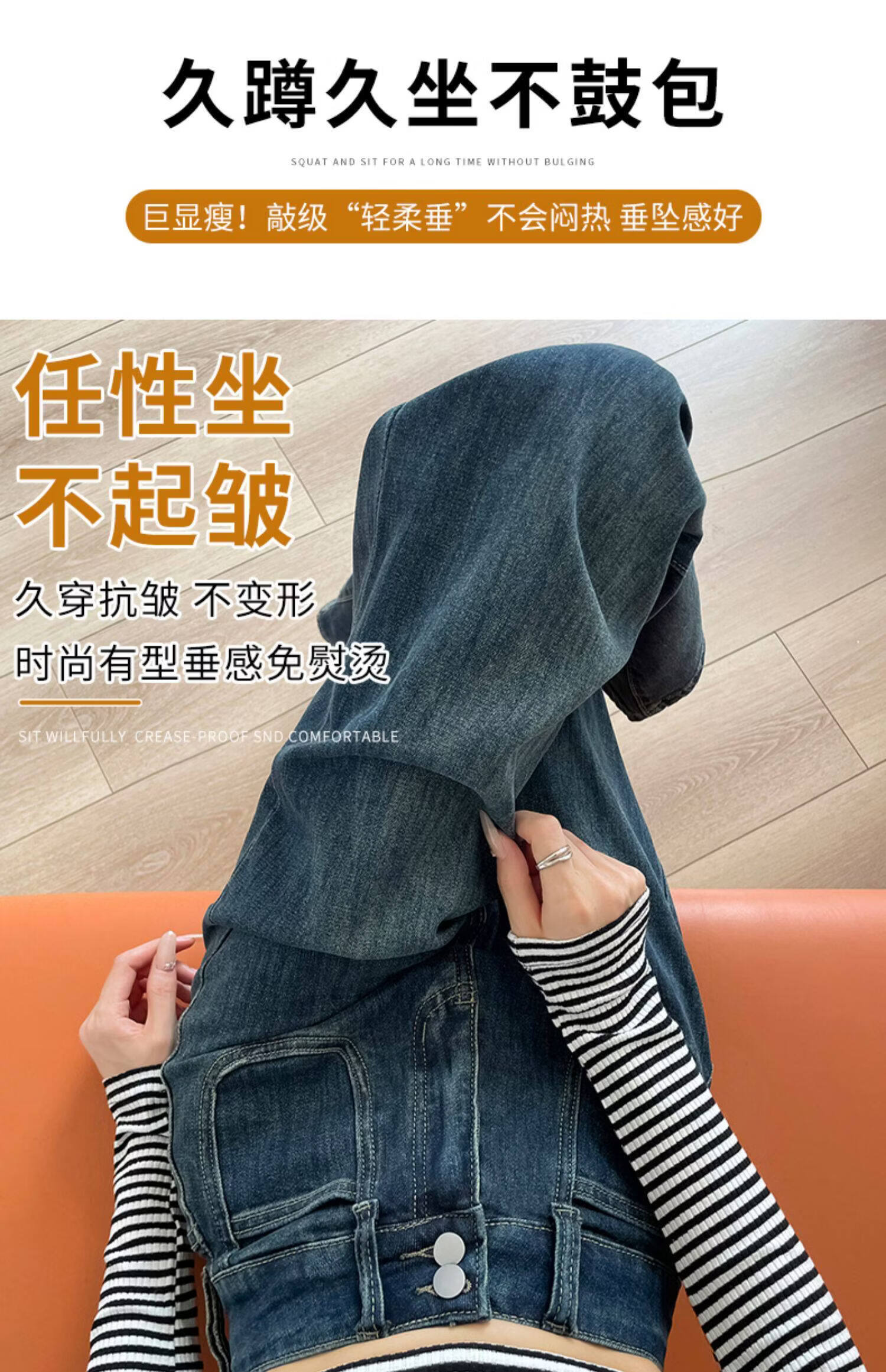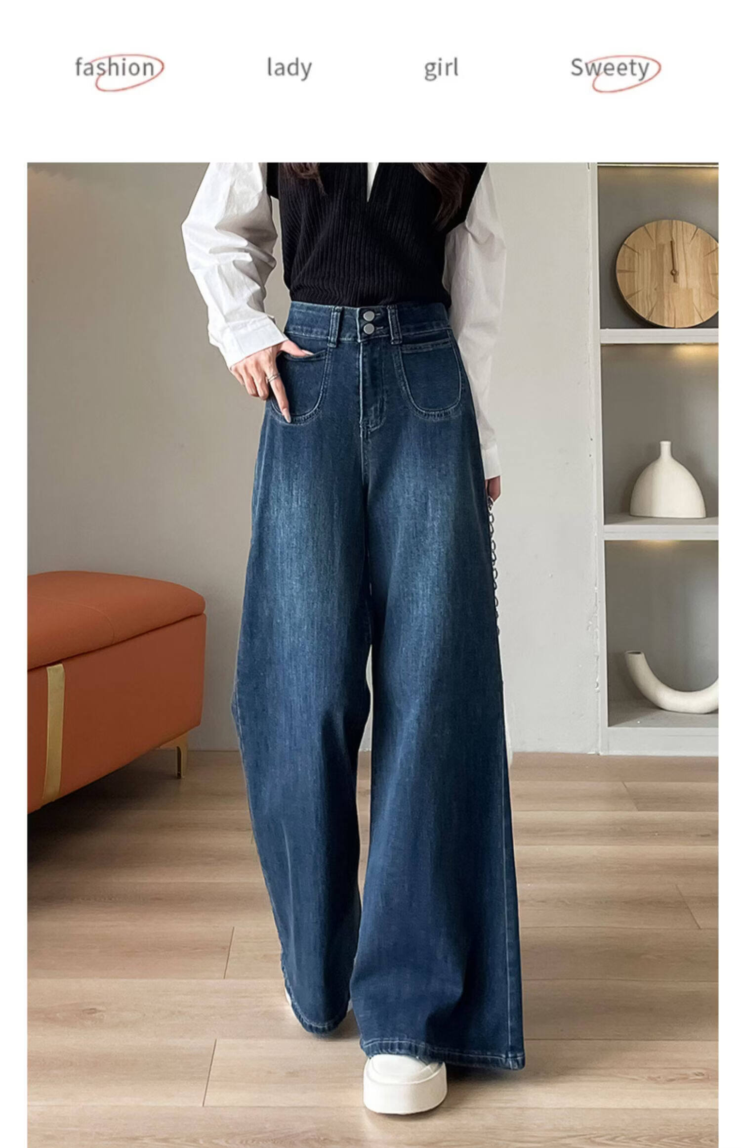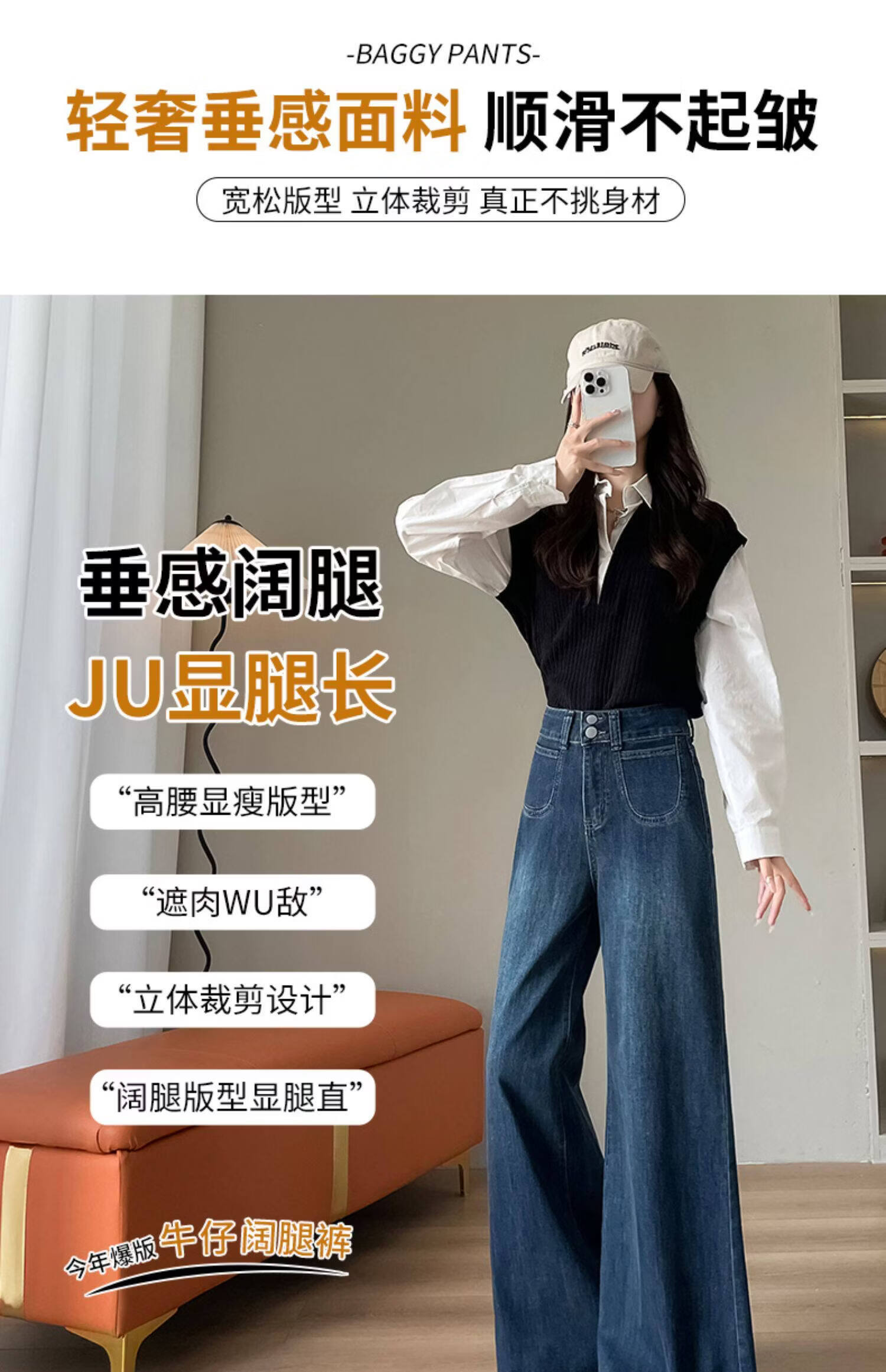 浪莎天丝牛仔裤女春季新款小个子高腰双扣休闲裤宽松显瘦垂坠阔腿裤女 复古蓝 【天丝呼吸面料】 L 【推荐96-110斤】
