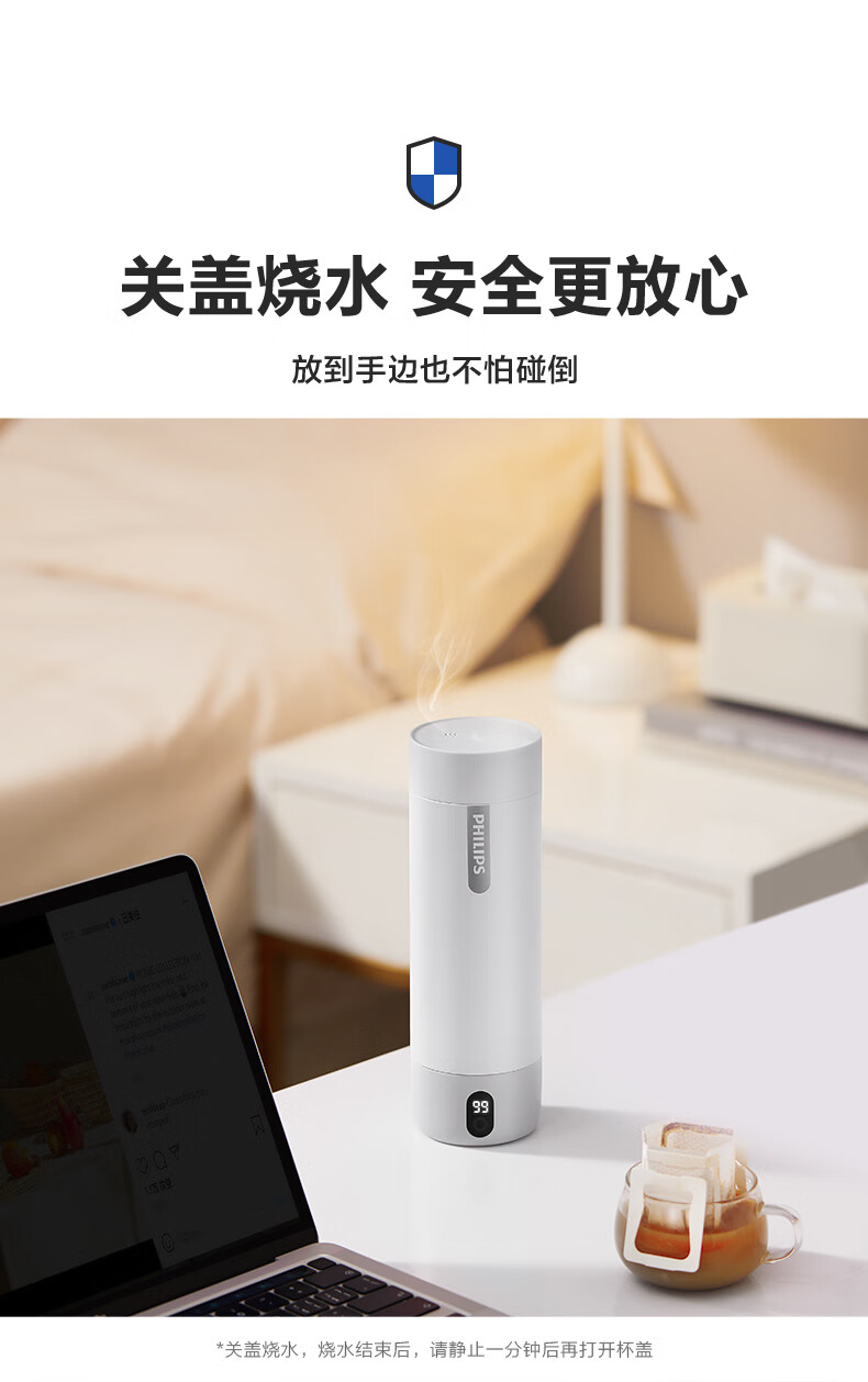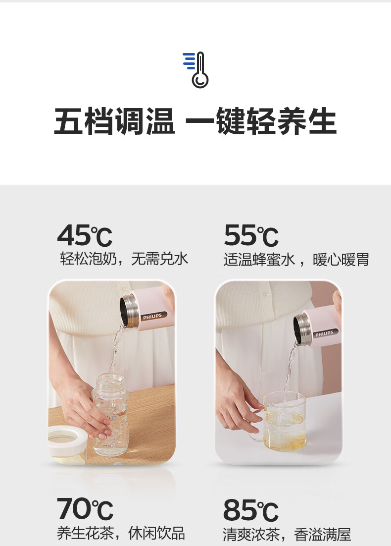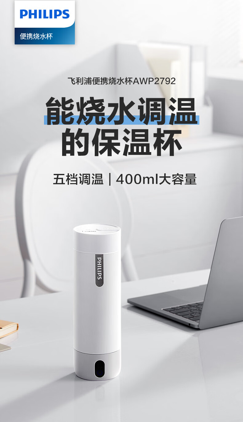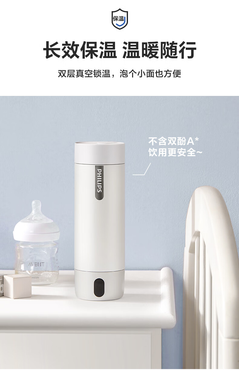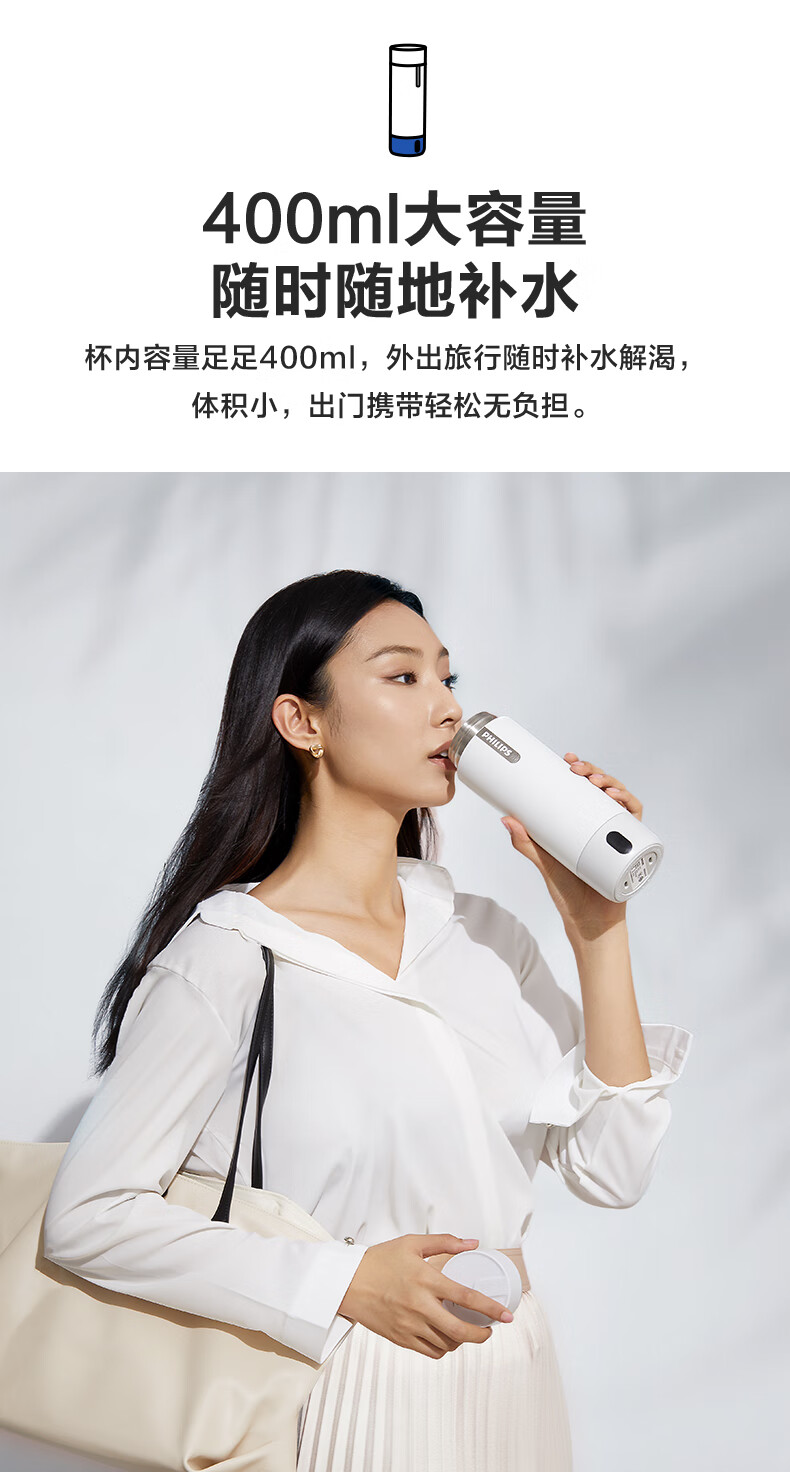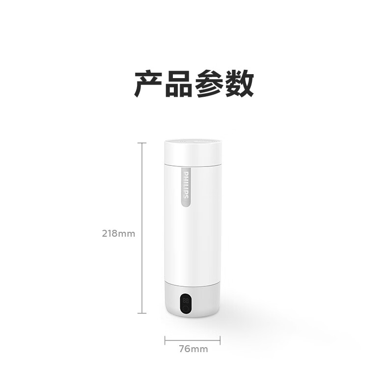 飞利浦(PHILIPS)烧水杯便捷式屏显玻璃养生杯电热水杯居家旅行专用保温杯支持定制 【升级款】养生杯-初雪白400ml