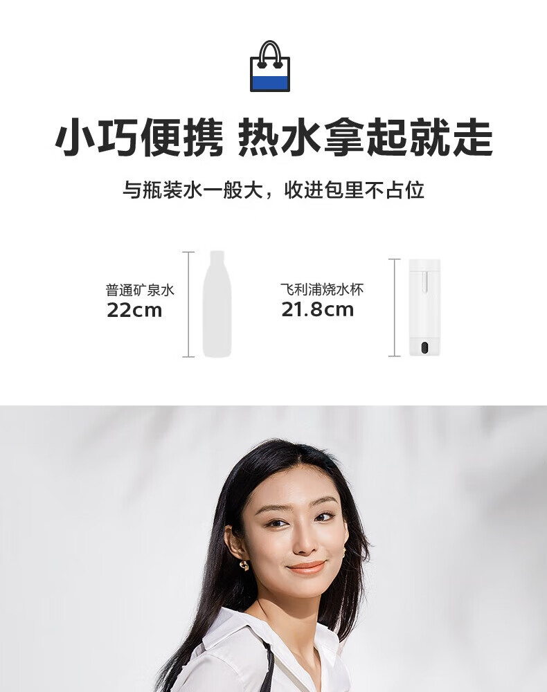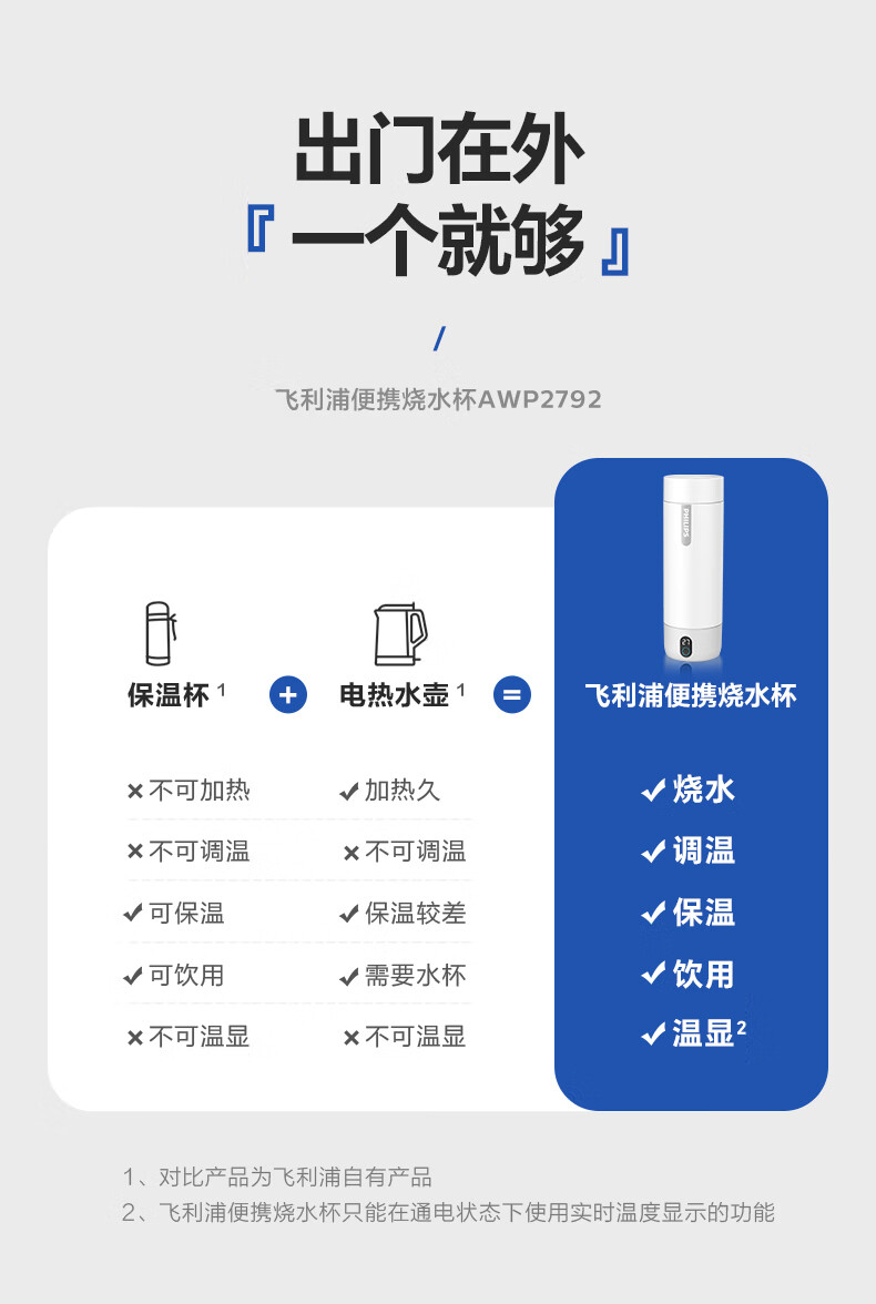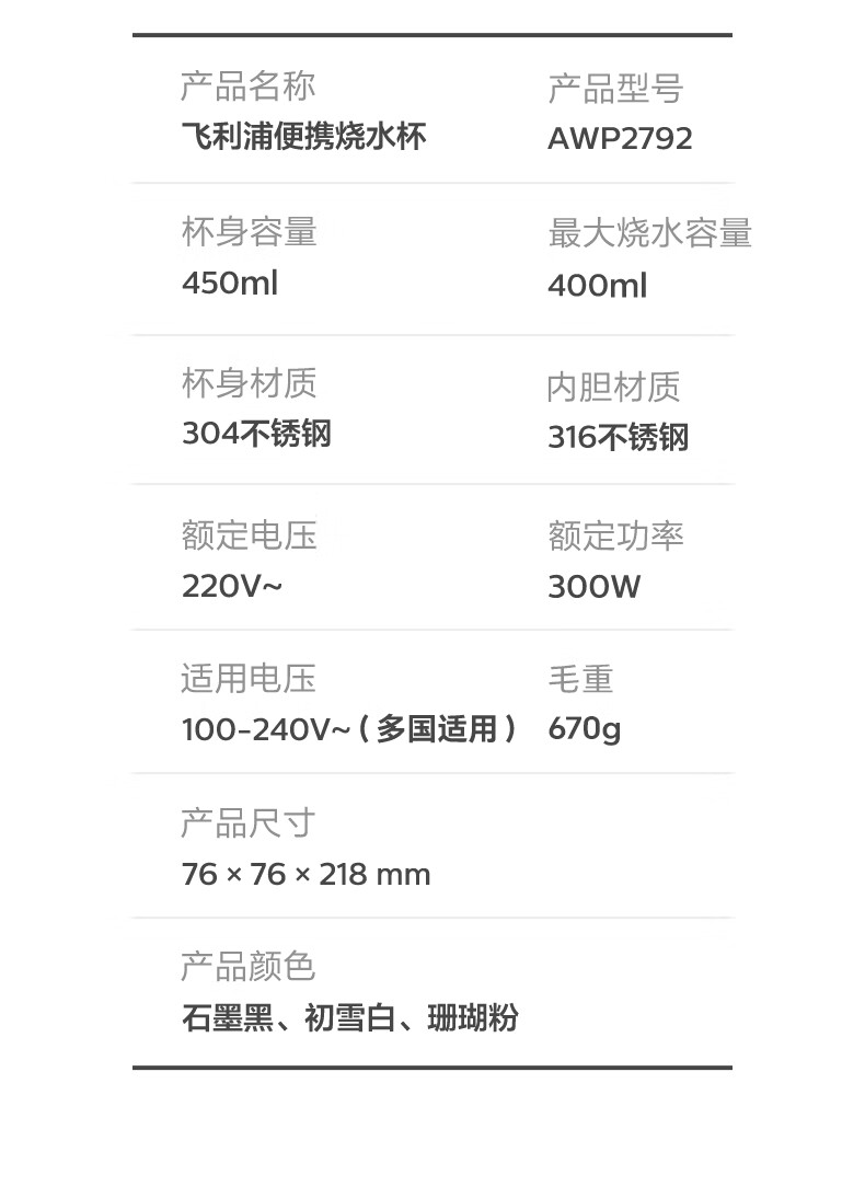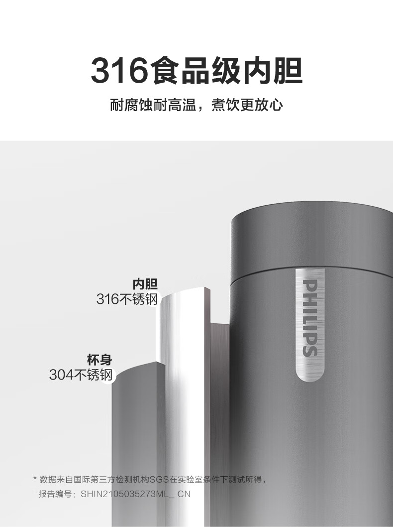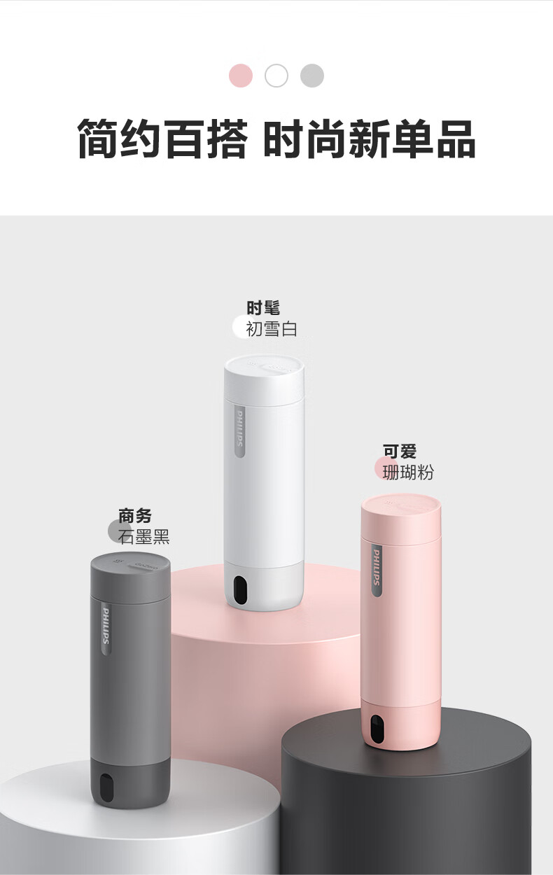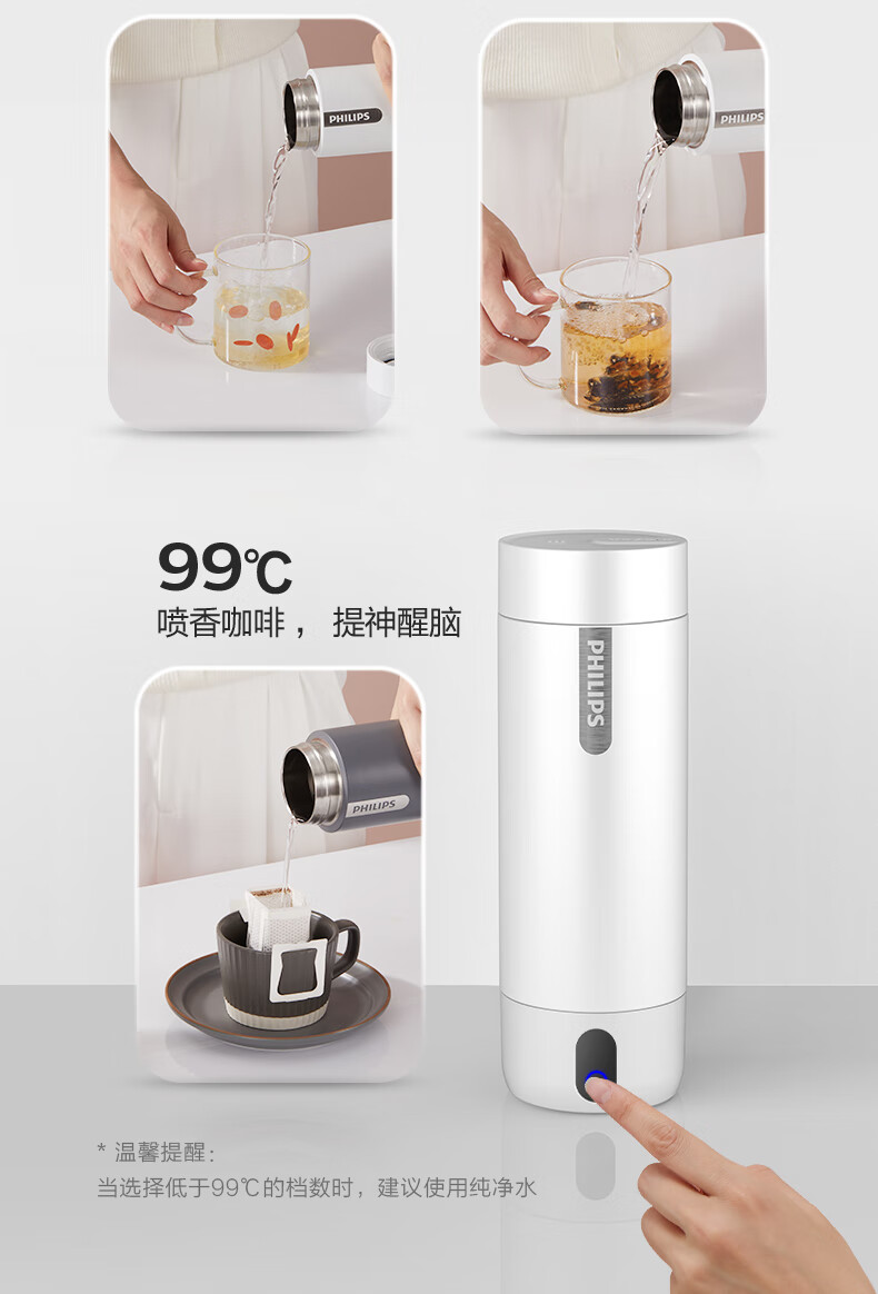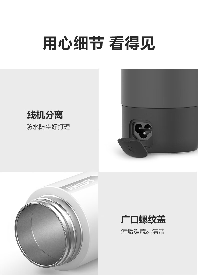 飞利浦(PHILIPS)烧水杯便捷式屏显玻璃养生杯电热水杯居家旅行专用保温杯支持定制 【升级款】养生杯-初雪白400ml