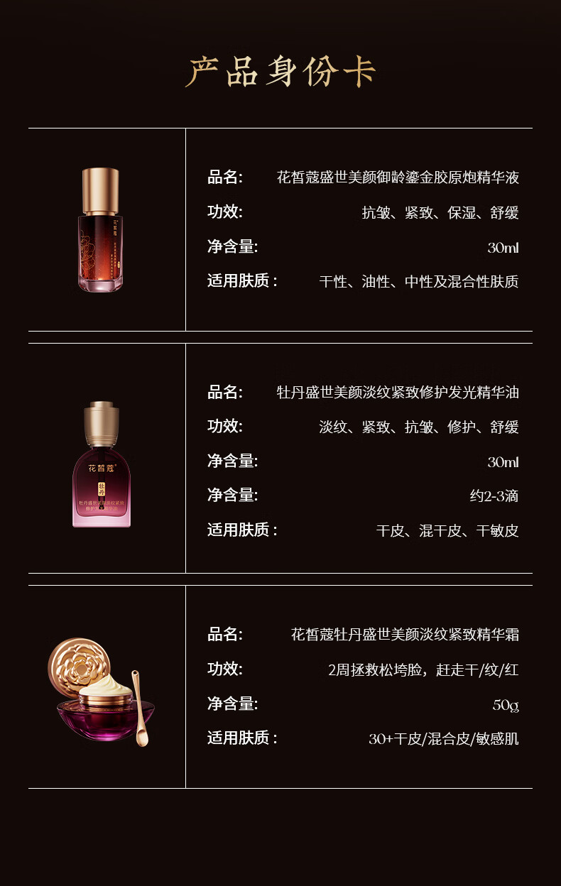 花皙蔻牡丹盛世美颜淡纹紧致大套装 抗皱紧致保湿舒缓熟龄肌推荐