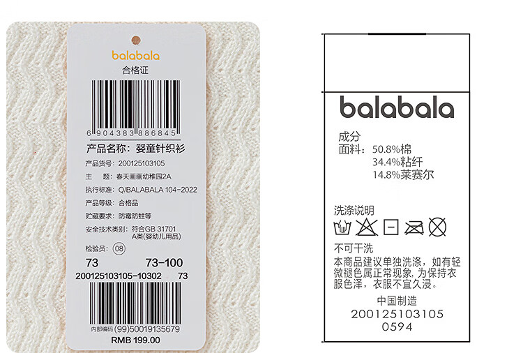 迷你巴拉巴拉男女童长袖套装潮流拼色上衣长裤两件套春季新款 海盐千层 100 【91-100cm 12-16kg】