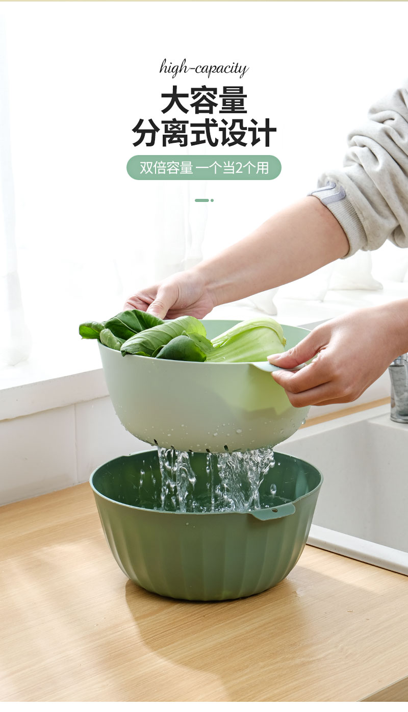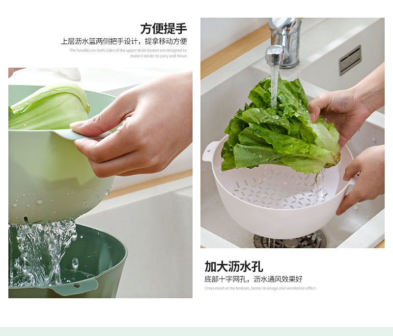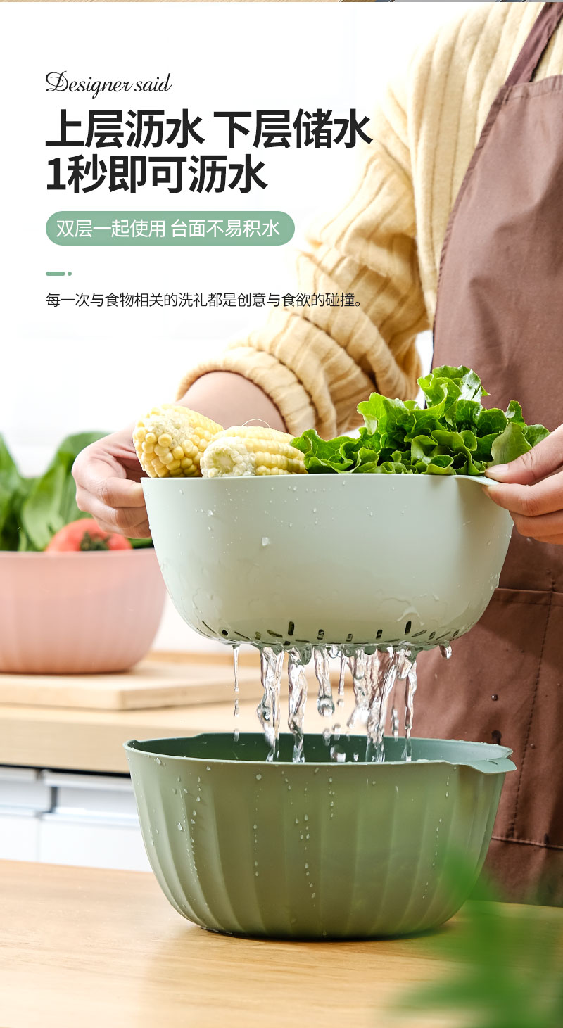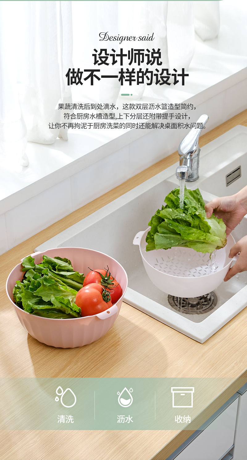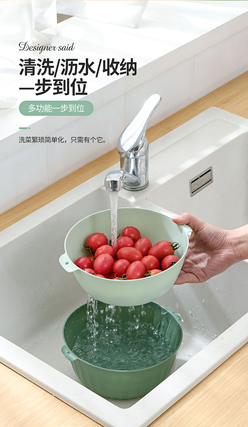 翰鸥斐双层沥水篮洗菜篮家用厨房装蔬菜水果盘洗水果滤水篮 【中号】两件套