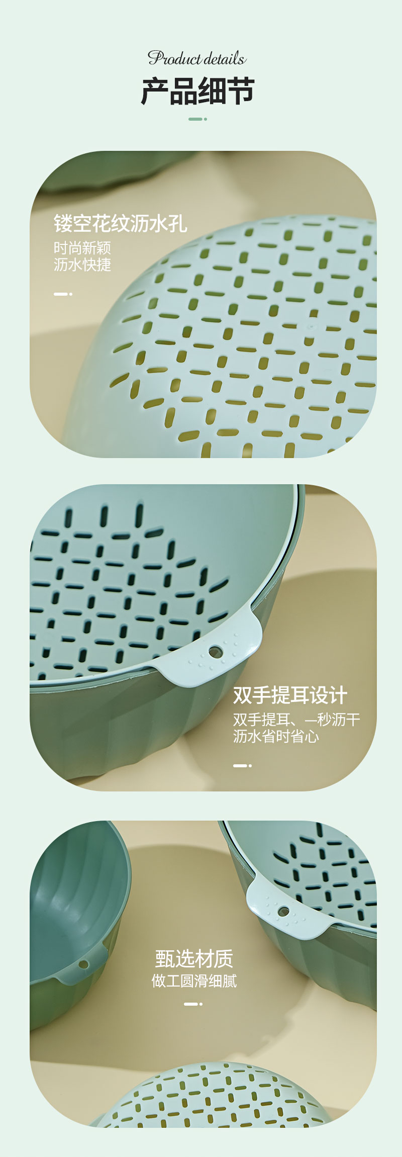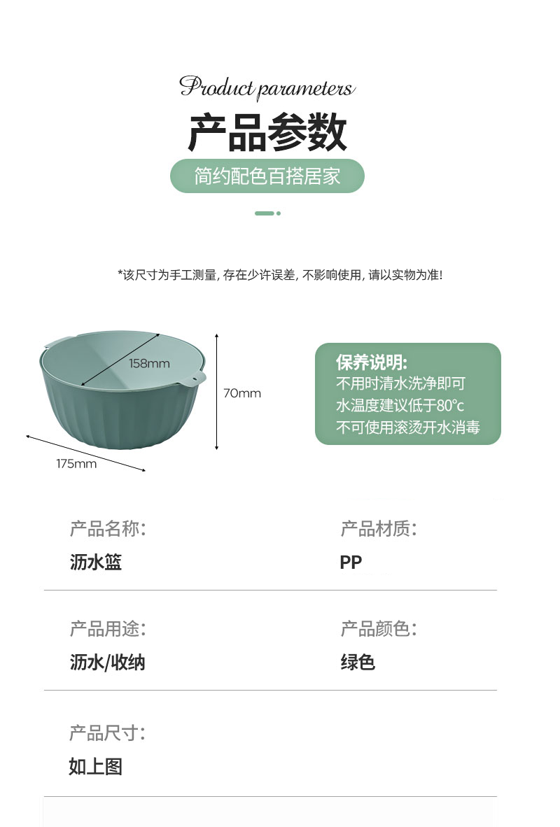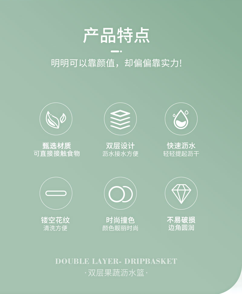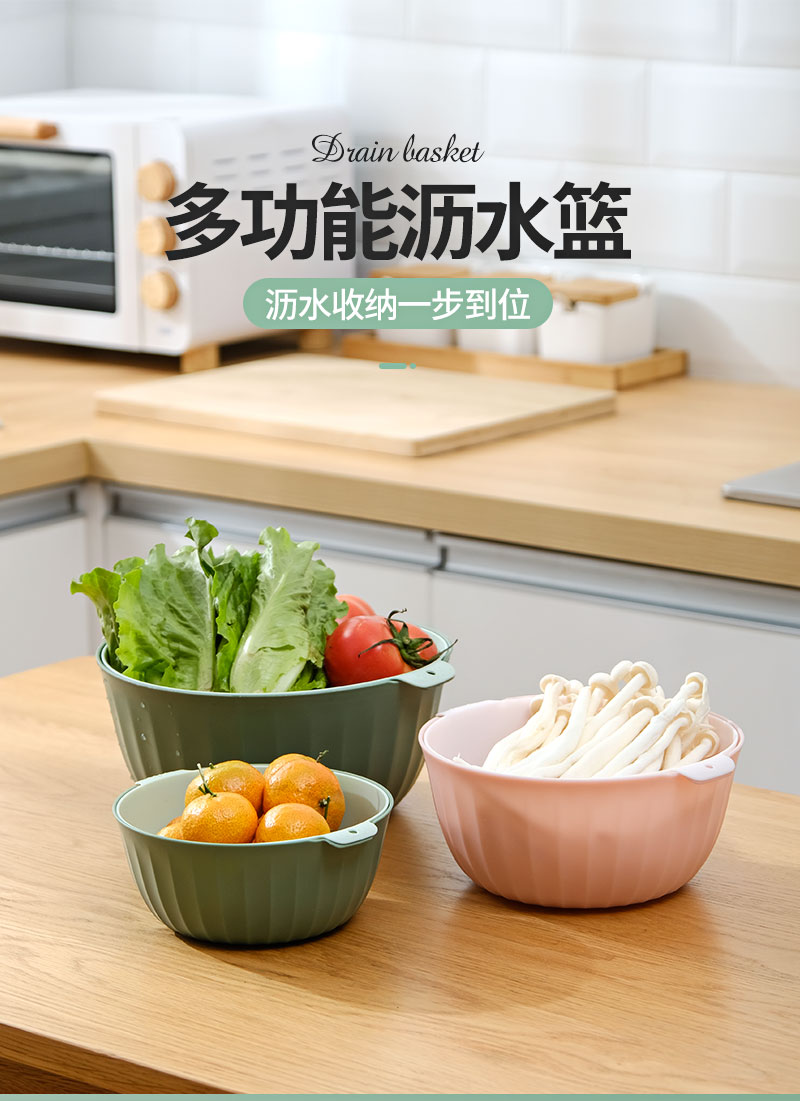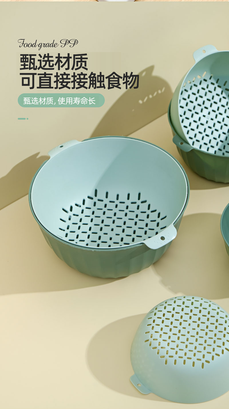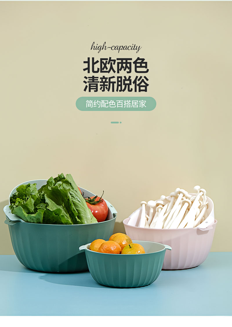 翰鸥斐双层沥水篮洗菜篮家用厨房装蔬菜水果盘洗水果滤水篮 【中号】两件套