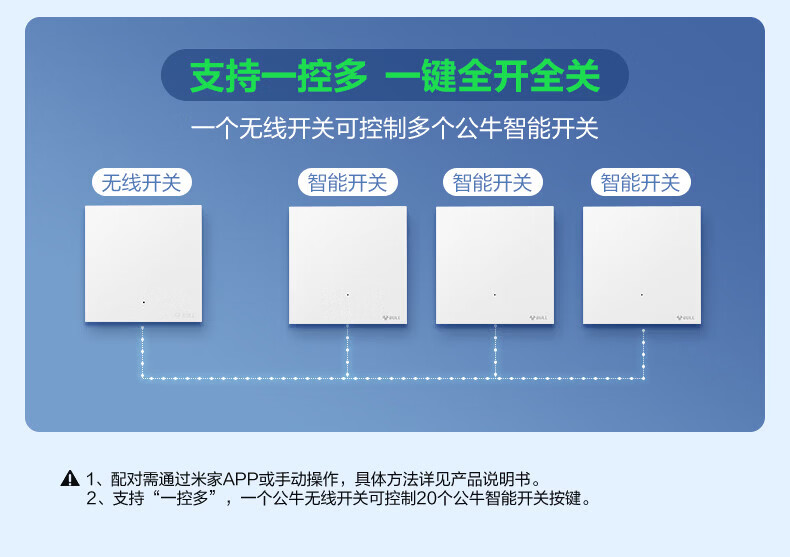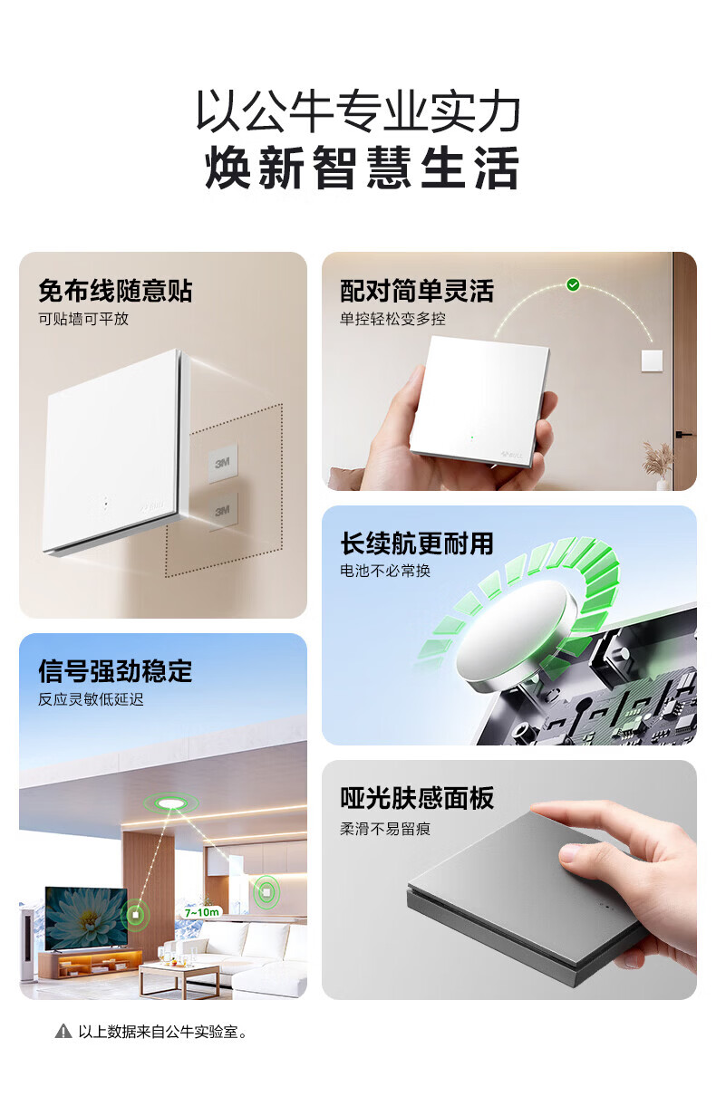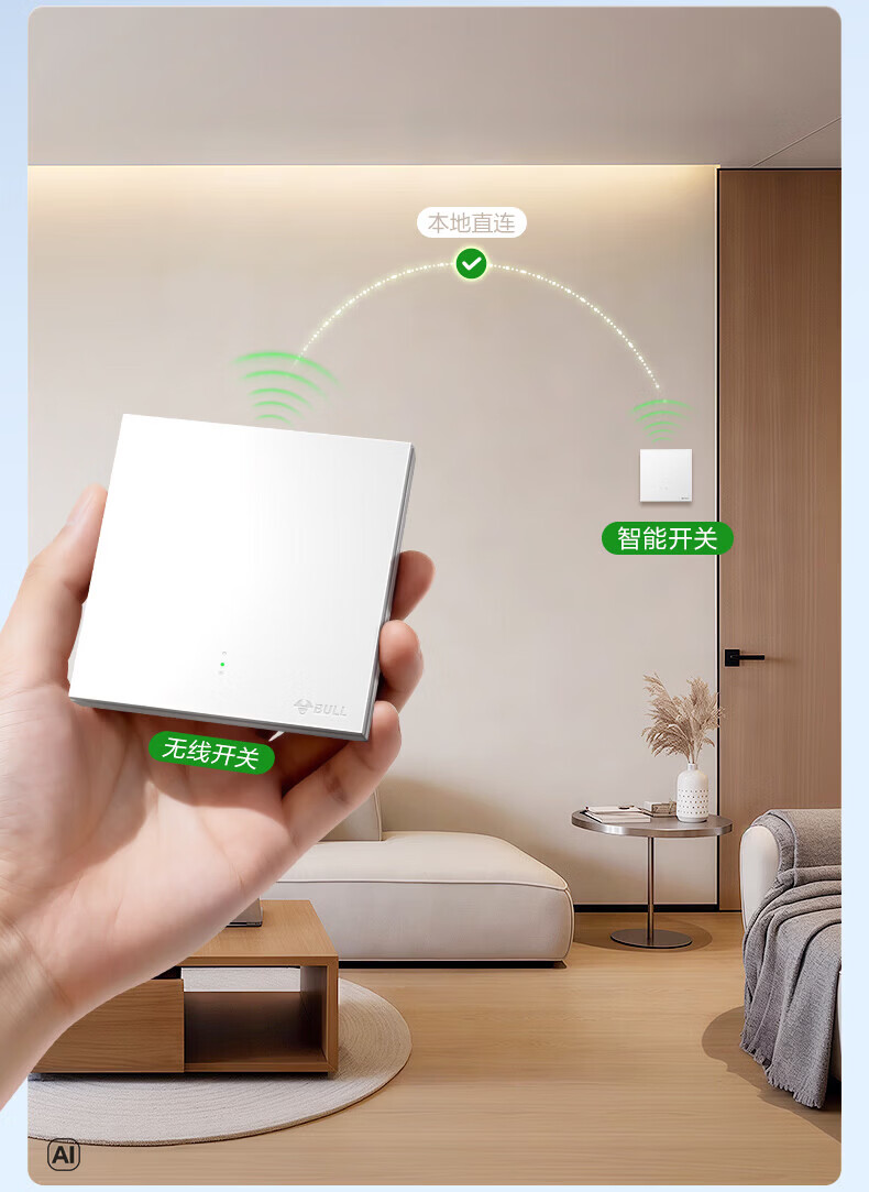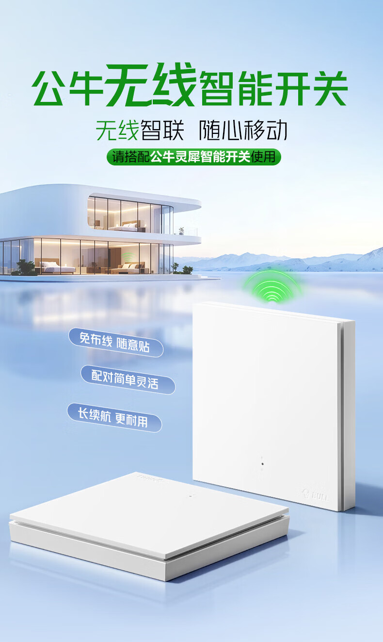 公牛智能开关无线开关免布线家用远程控制开关随意贴 【搭配使用 无线开关】智能一开【米绒白】