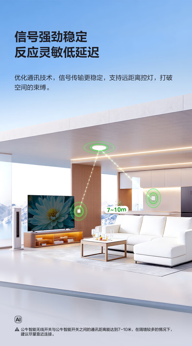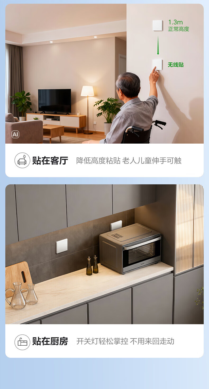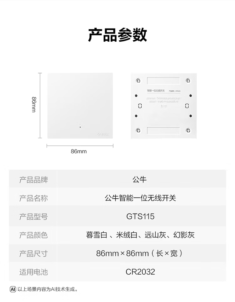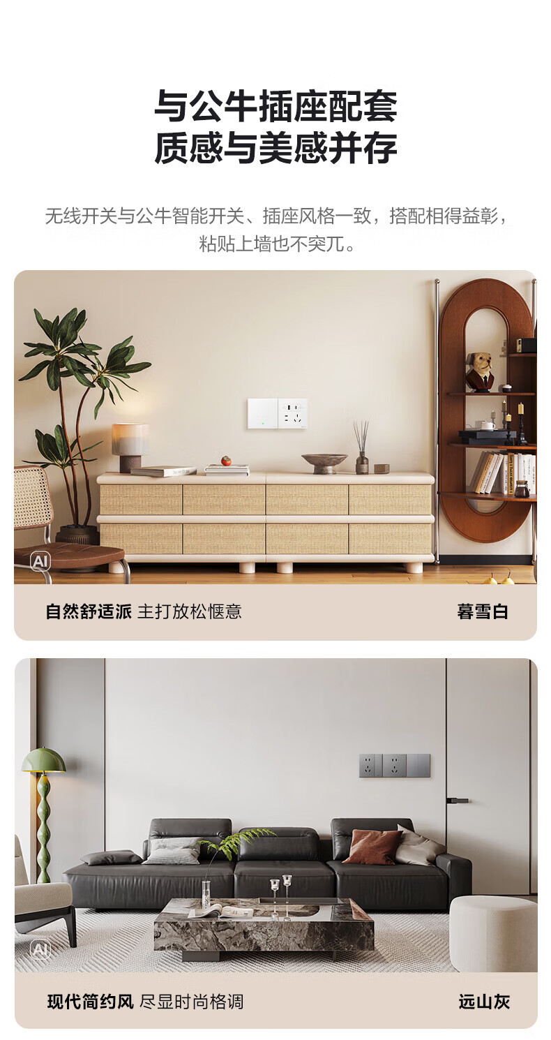公牛智能开关无线开关免布线家用远程控制开关随意贴 【搭配使用 无线开关】智能一开【米绒白】