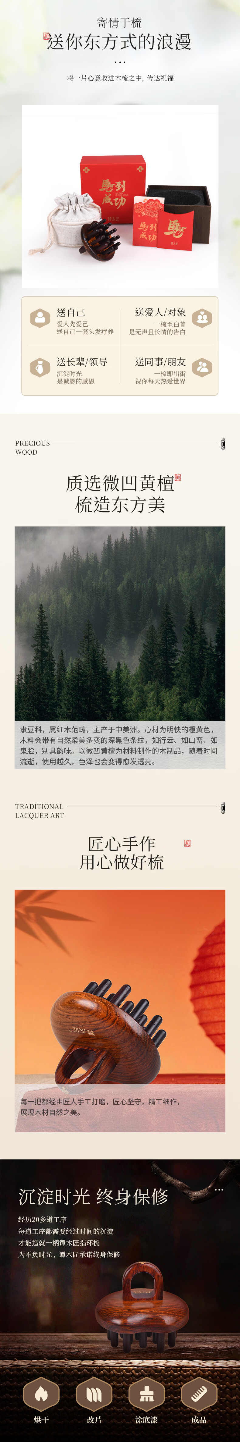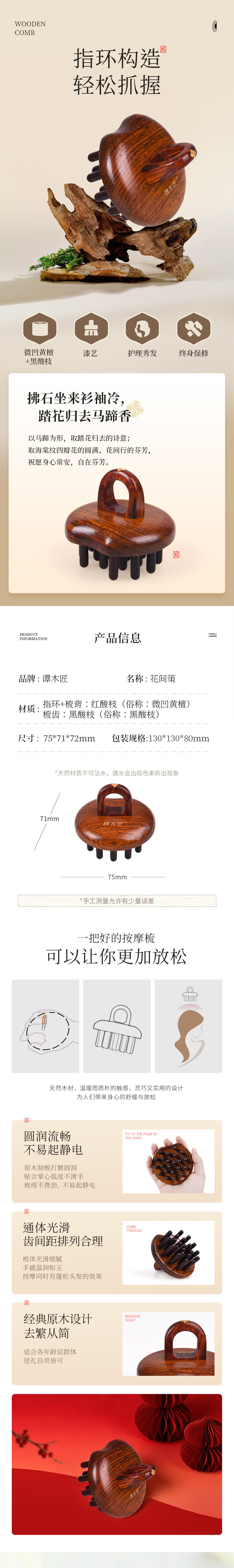 谭木匠祥马踏春系列作品花间策无柄木梳子礼盒居家日用馈赠亲友礼物