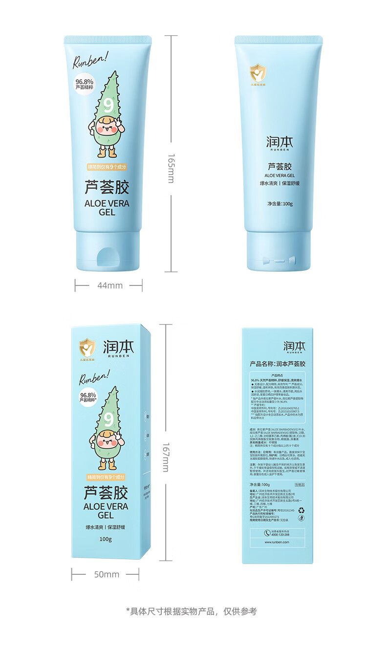 润本儿童宝宝婴儿面霜补水保湿清爽舒缓凝露四季身体乳芦荟胶100g