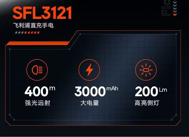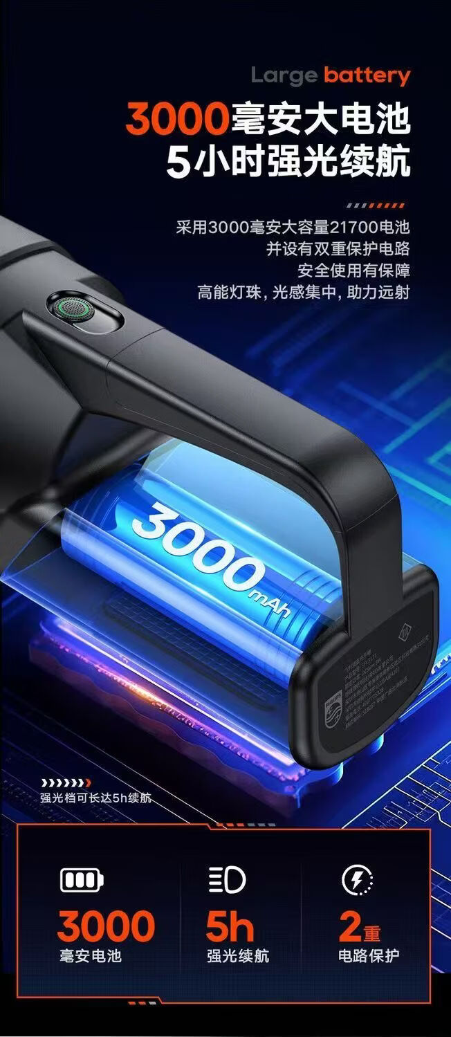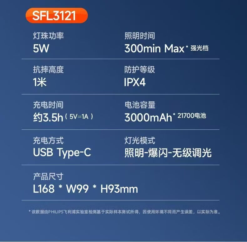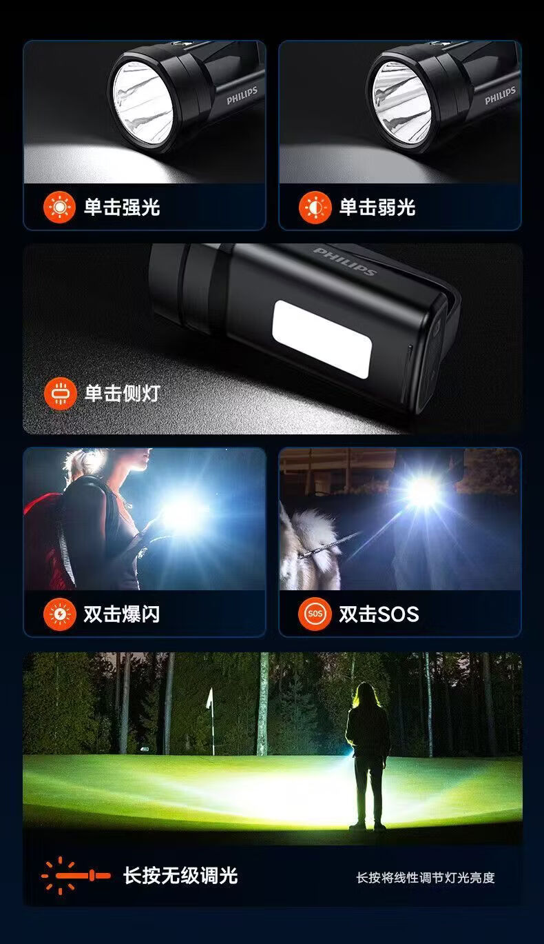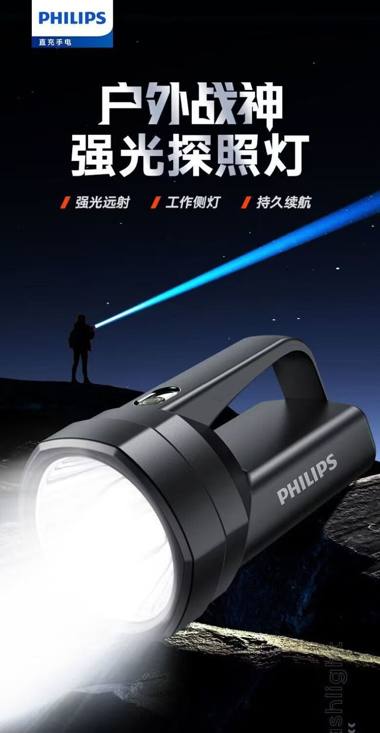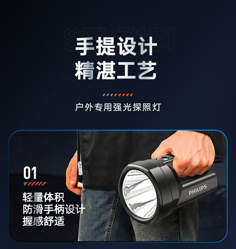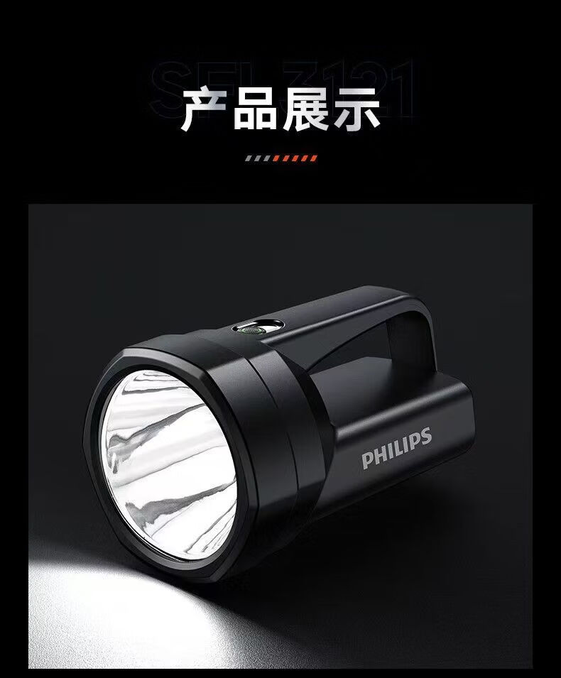 飞利浦(PHILIPS)手电筒强光户外长续航高远射手提探照灯应急灯SFL3121 5W/3000毫安/SFL3121