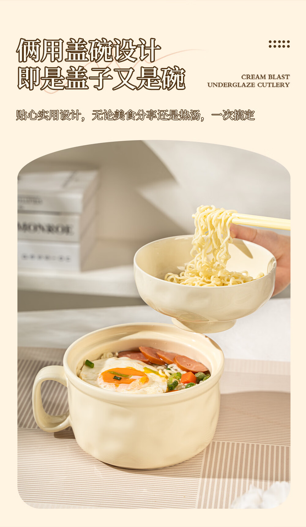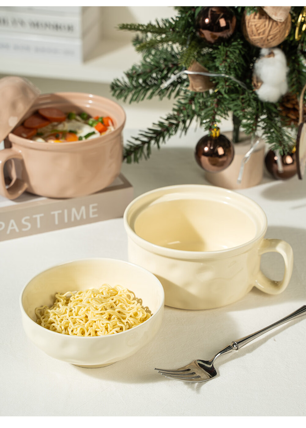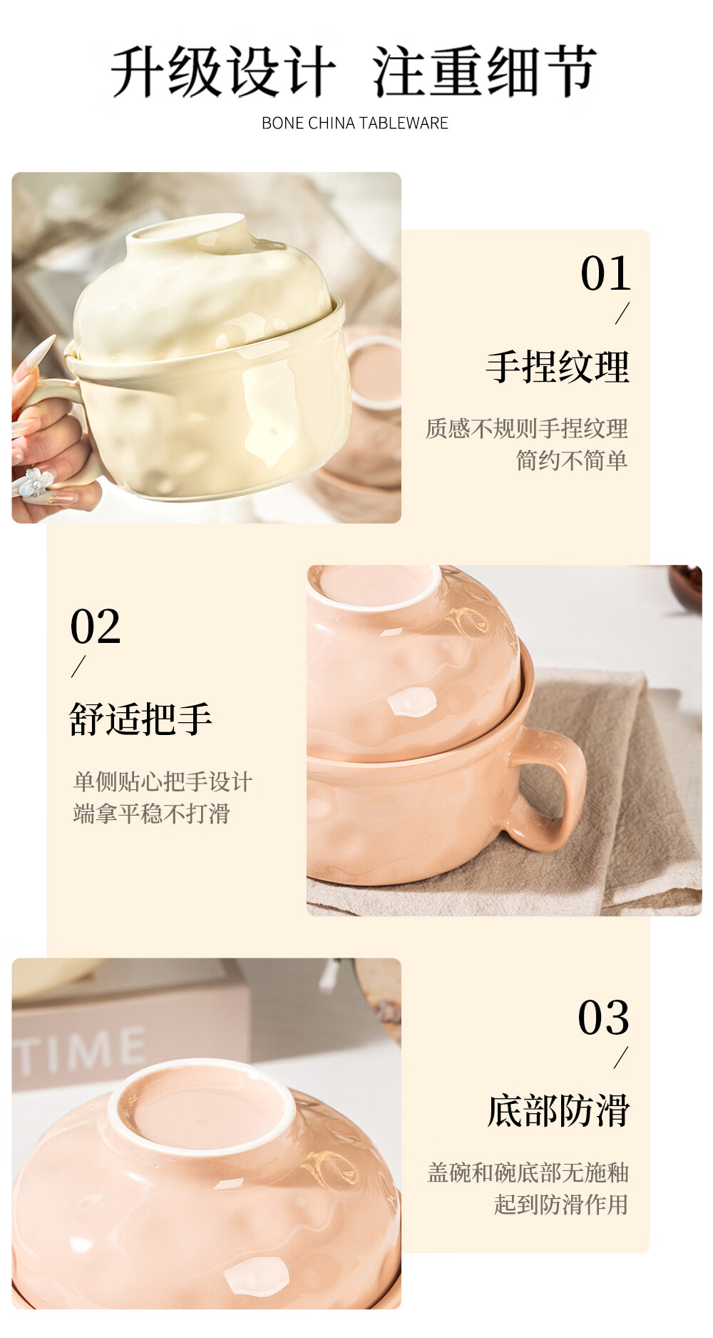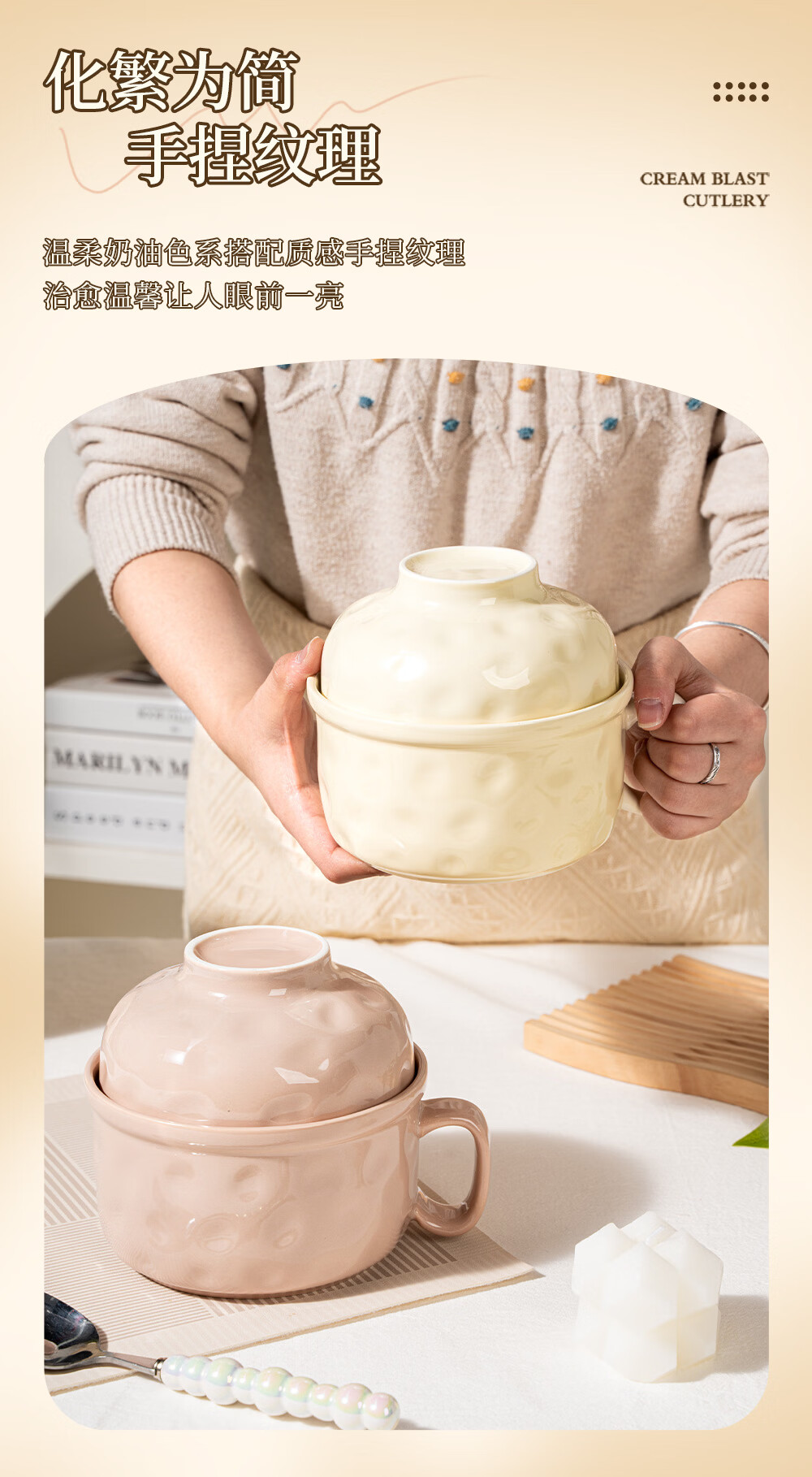 韵之和高温釉下彩2026高颜值陶瓷餐具泡面碗带盖大碗蒸肉碗简约 手捏泡面碗-奶黄色