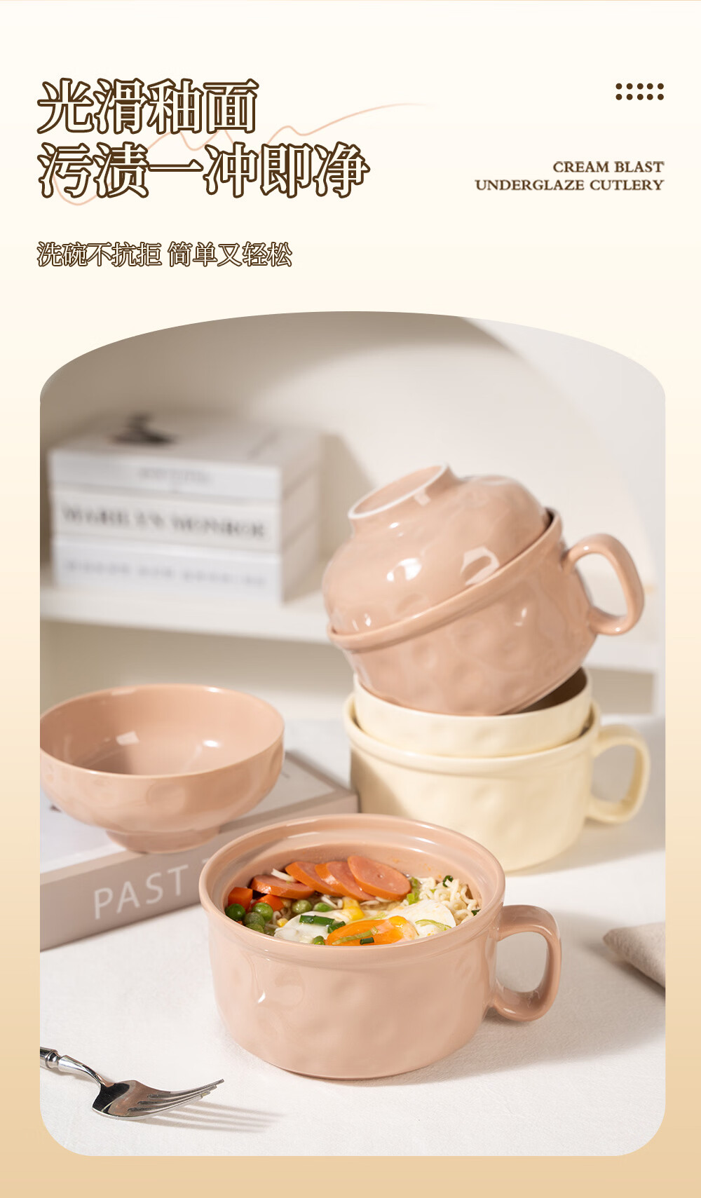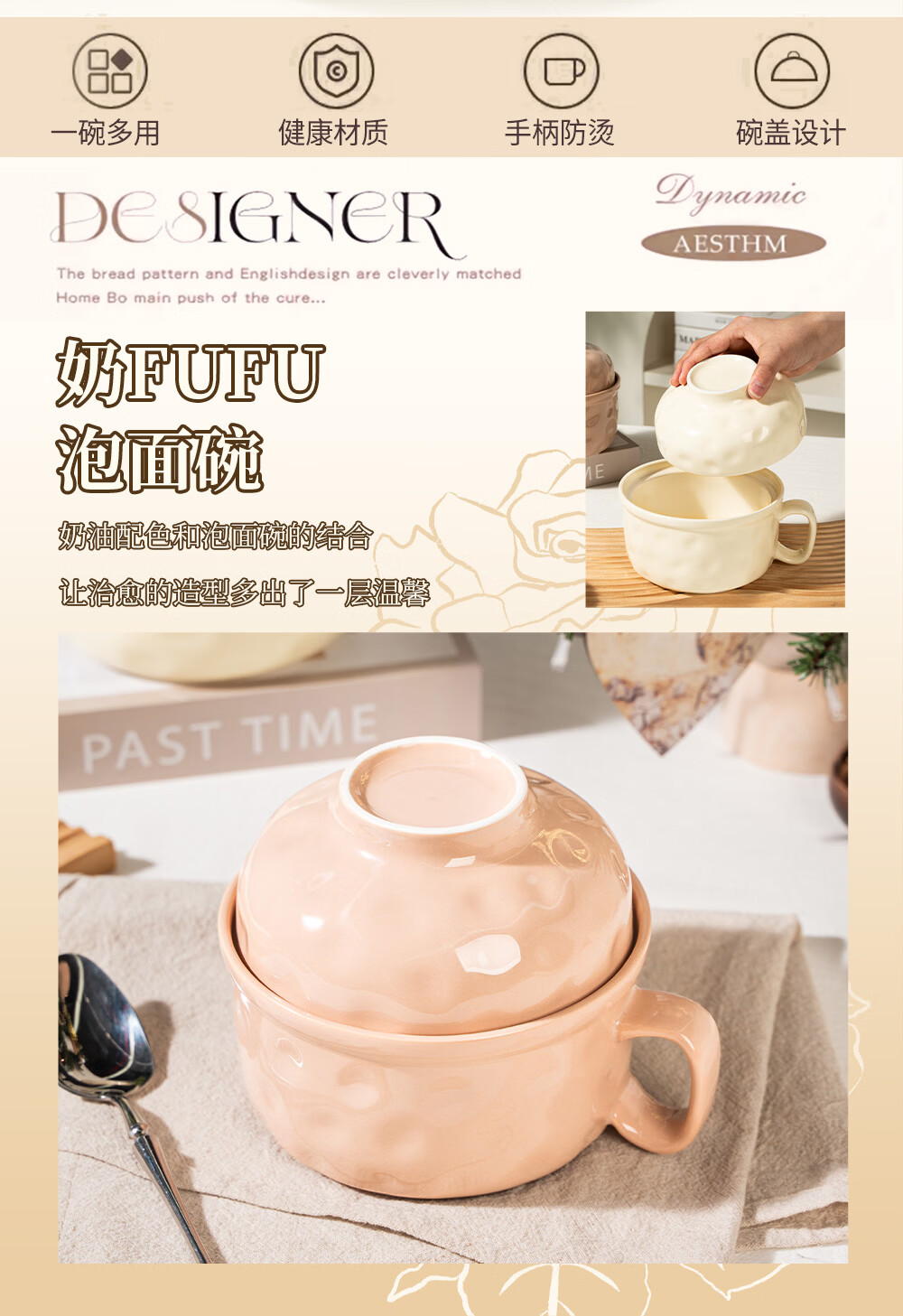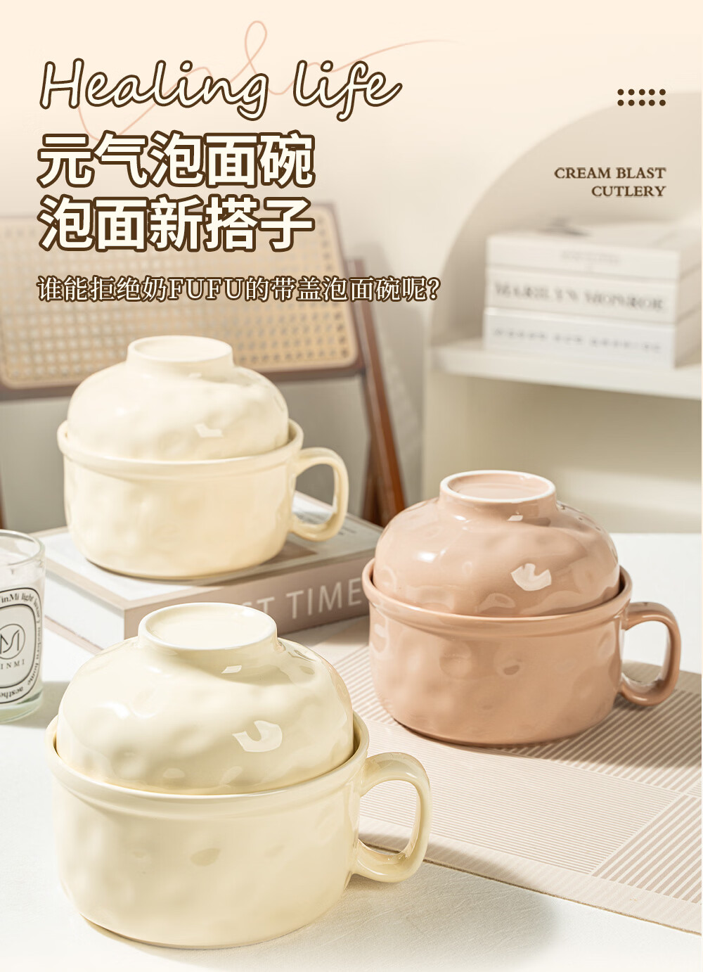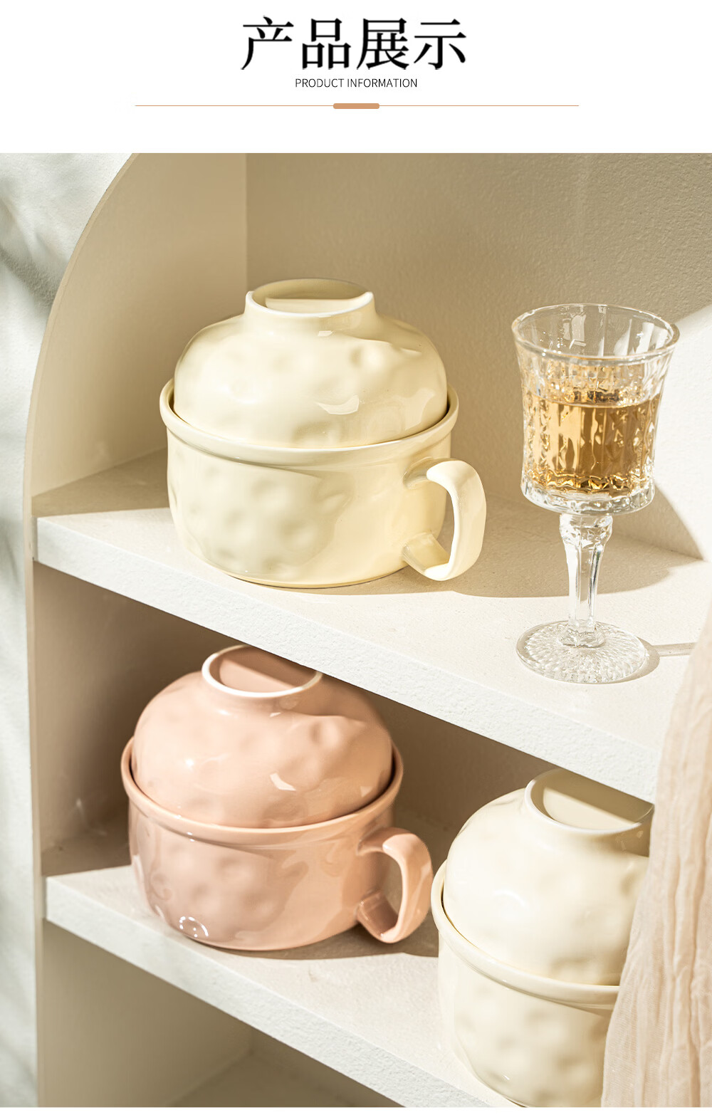 韵之和高温釉下彩2026高颜值陶瓷餐具泡面碗带盖大碗蒸肉碗简约 手捏泡面碗-奶黄色