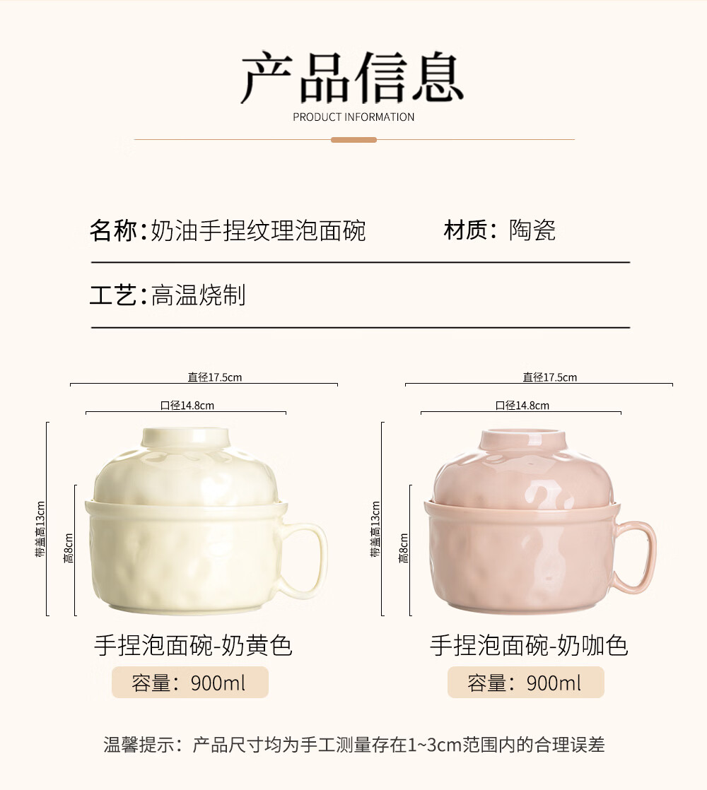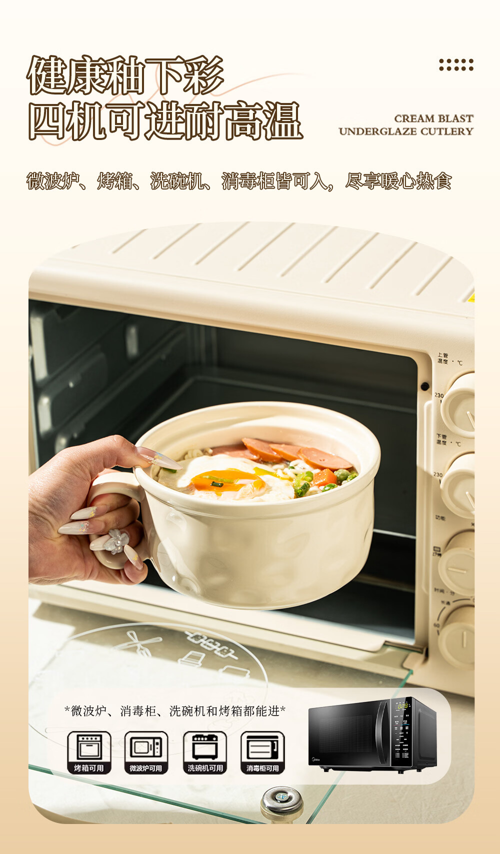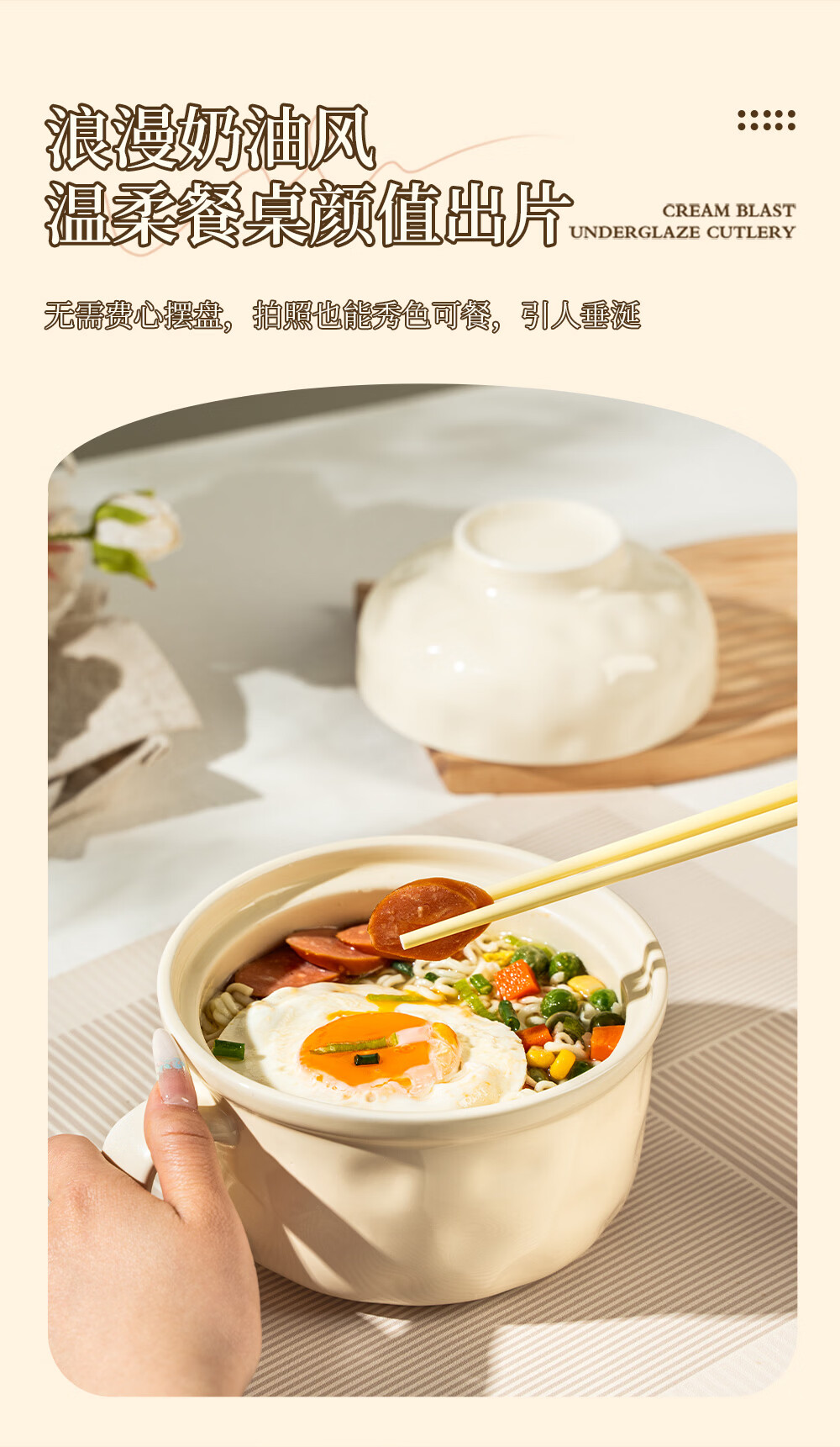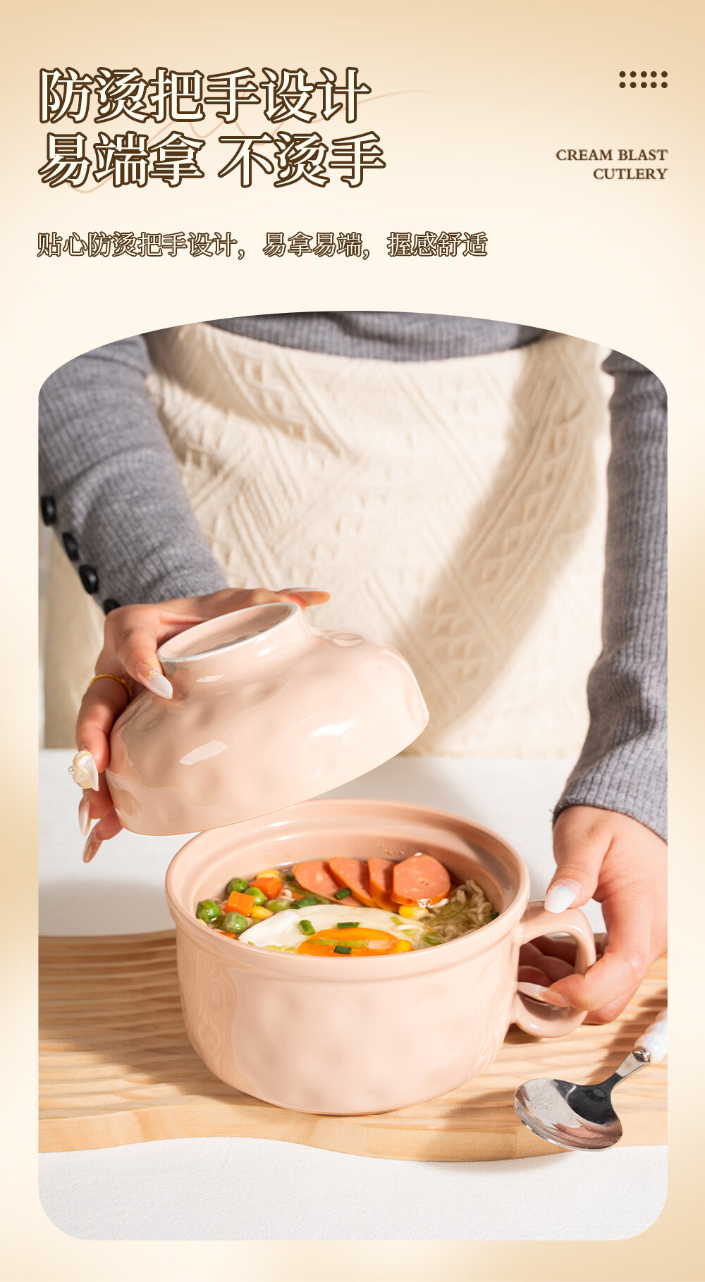 韵之和高温釉下彩2026高颜值陶瓷餐具泡面碗带盖大碗蒸肉碗简约 手捏泡面碗-奶黄色