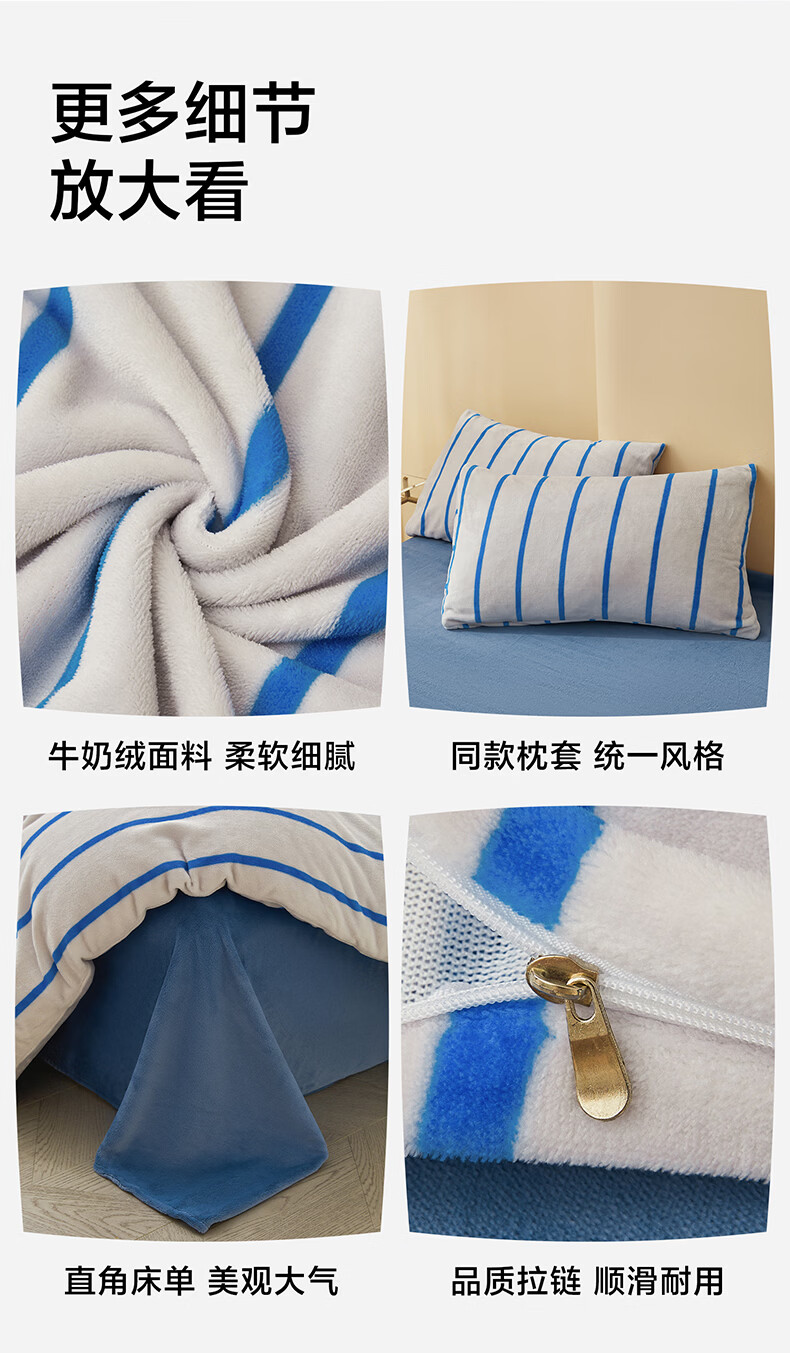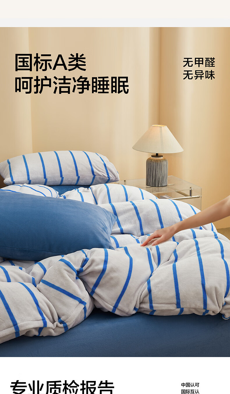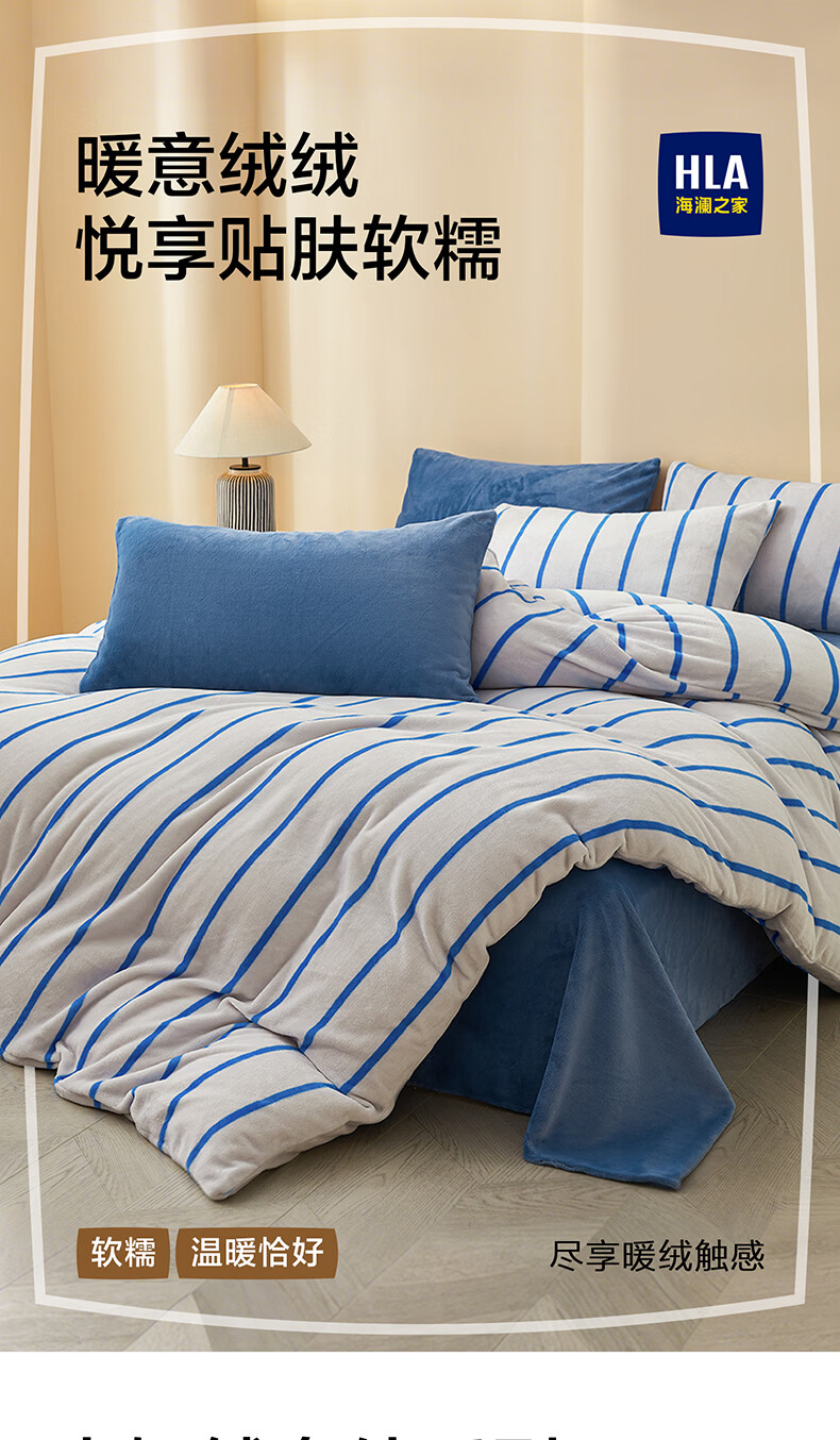 海澜之家(HLA)牛奶绒四件套高端轻奢高级感A类裸睡冬季加绒加厚床单被罩三件套 菲古蓝【A类加厚加密牛奶绒 不易掉毛】 三件套被套150*200 床单款 180*230