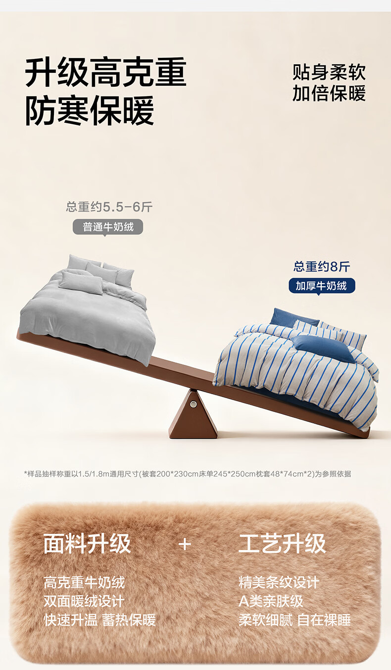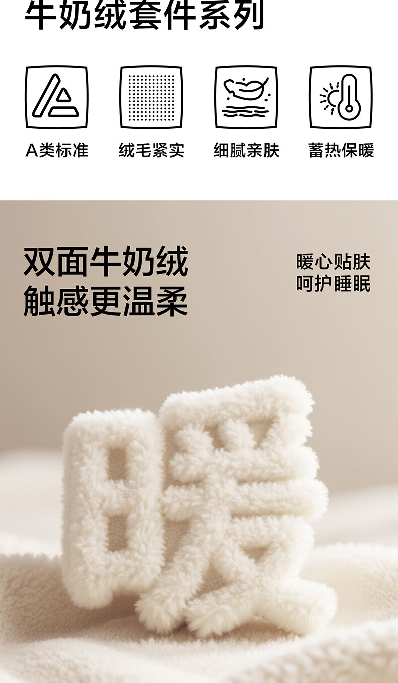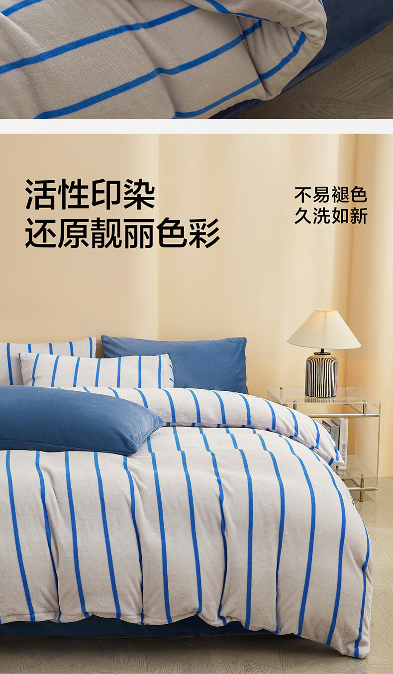 海澜之家(HLA)牛奶绒四件套高端轻奢高级感A类裸睡冬季加绒加厚床单被罩三件套 菲古蓝【A类加厚加密牛奶绒 不易掉毛】 三件套被套150*200 床单款 180*230