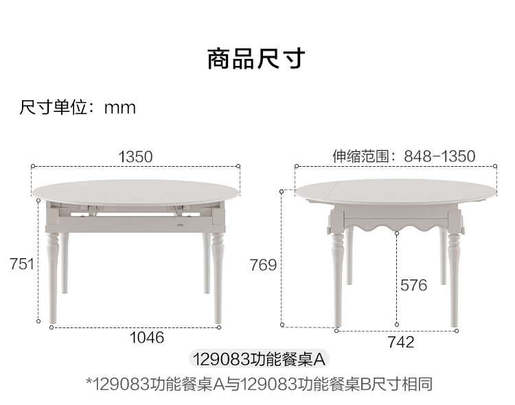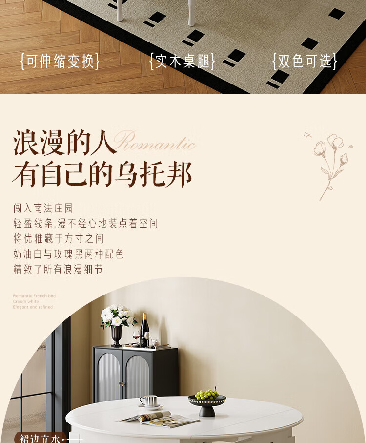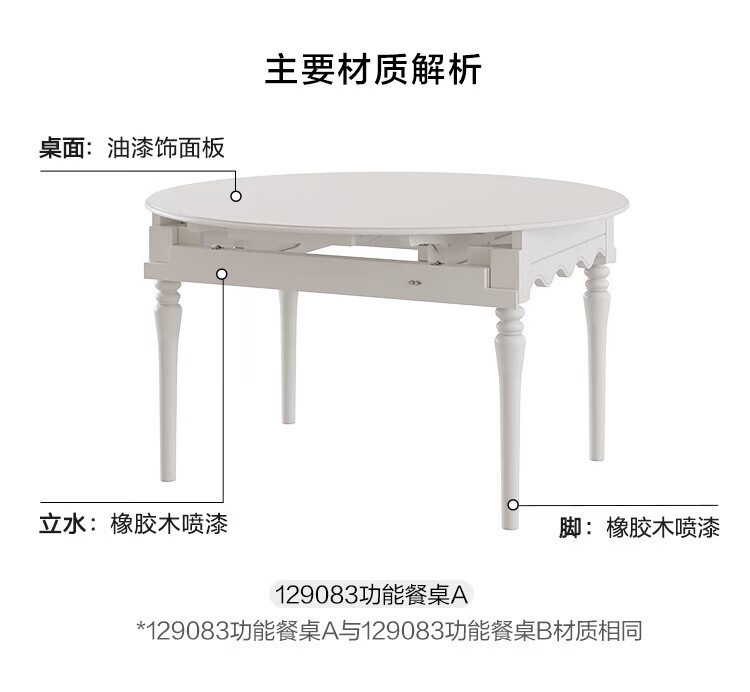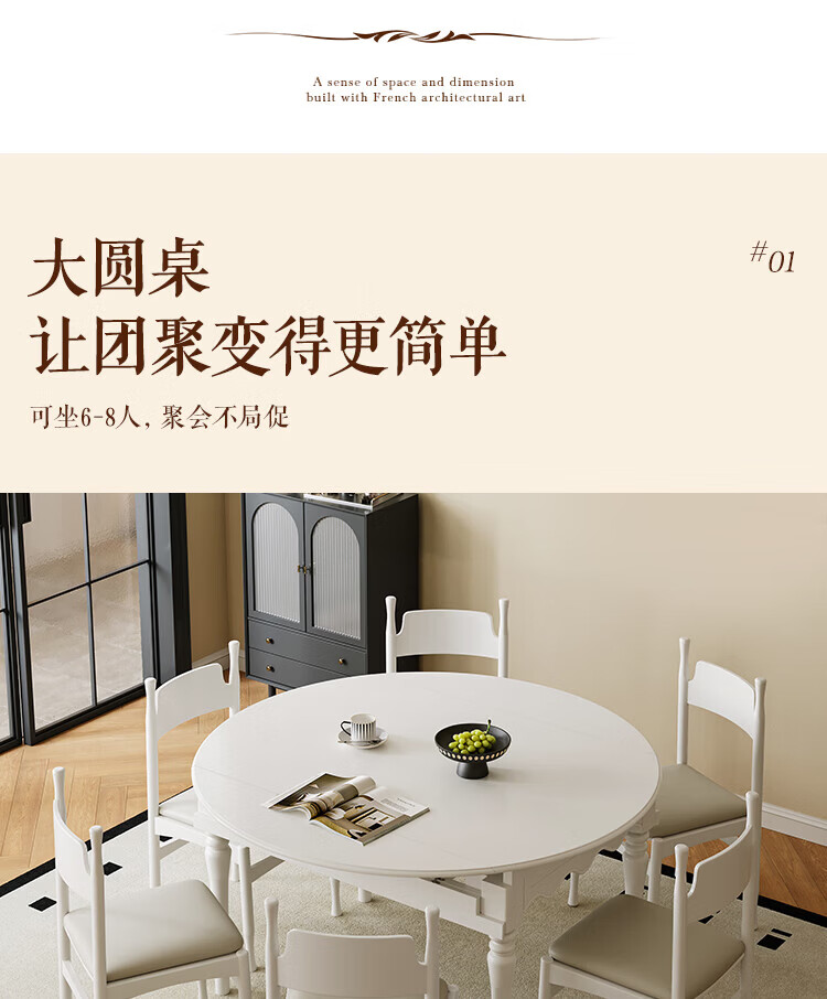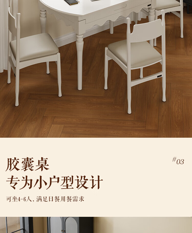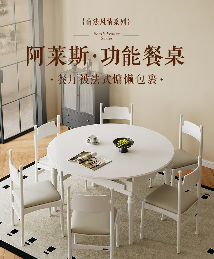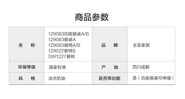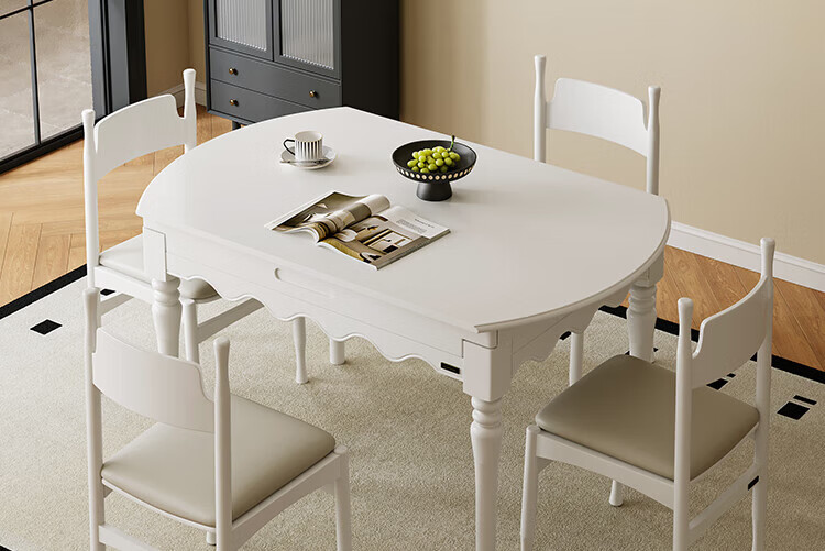 全友家居 现代奶油风餐桌椅子全套客厅多功能可折叠伸缩饭桌家用4-6人