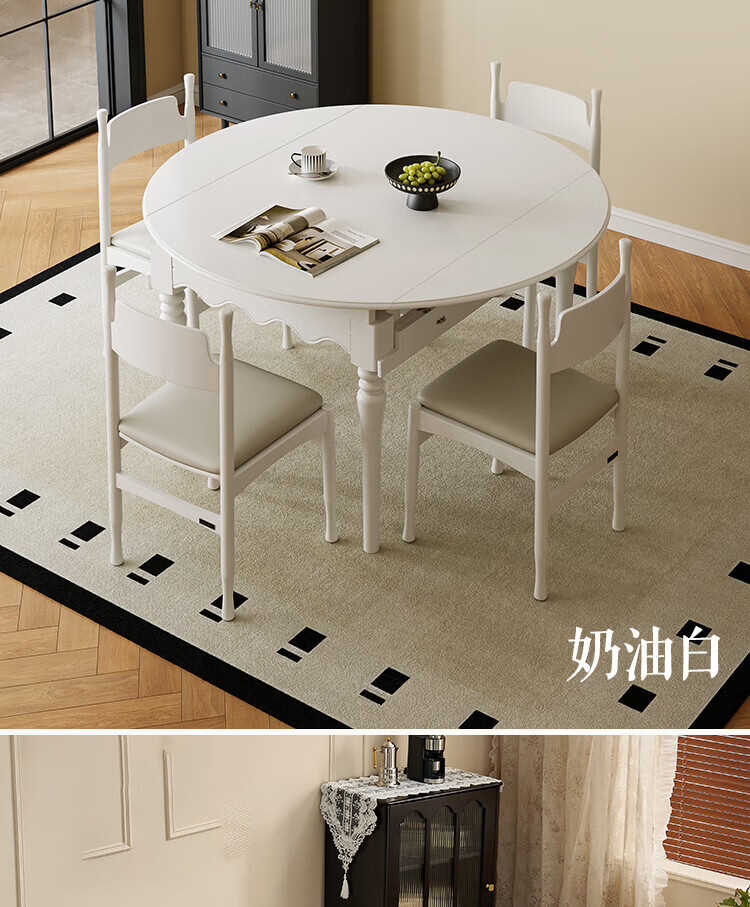 全友(QUANU)【迷瞪清仓货盘】复古风简约餐桌客厅家用长方形实木腿吃饭桌休闲 奶油白|常规餐桌