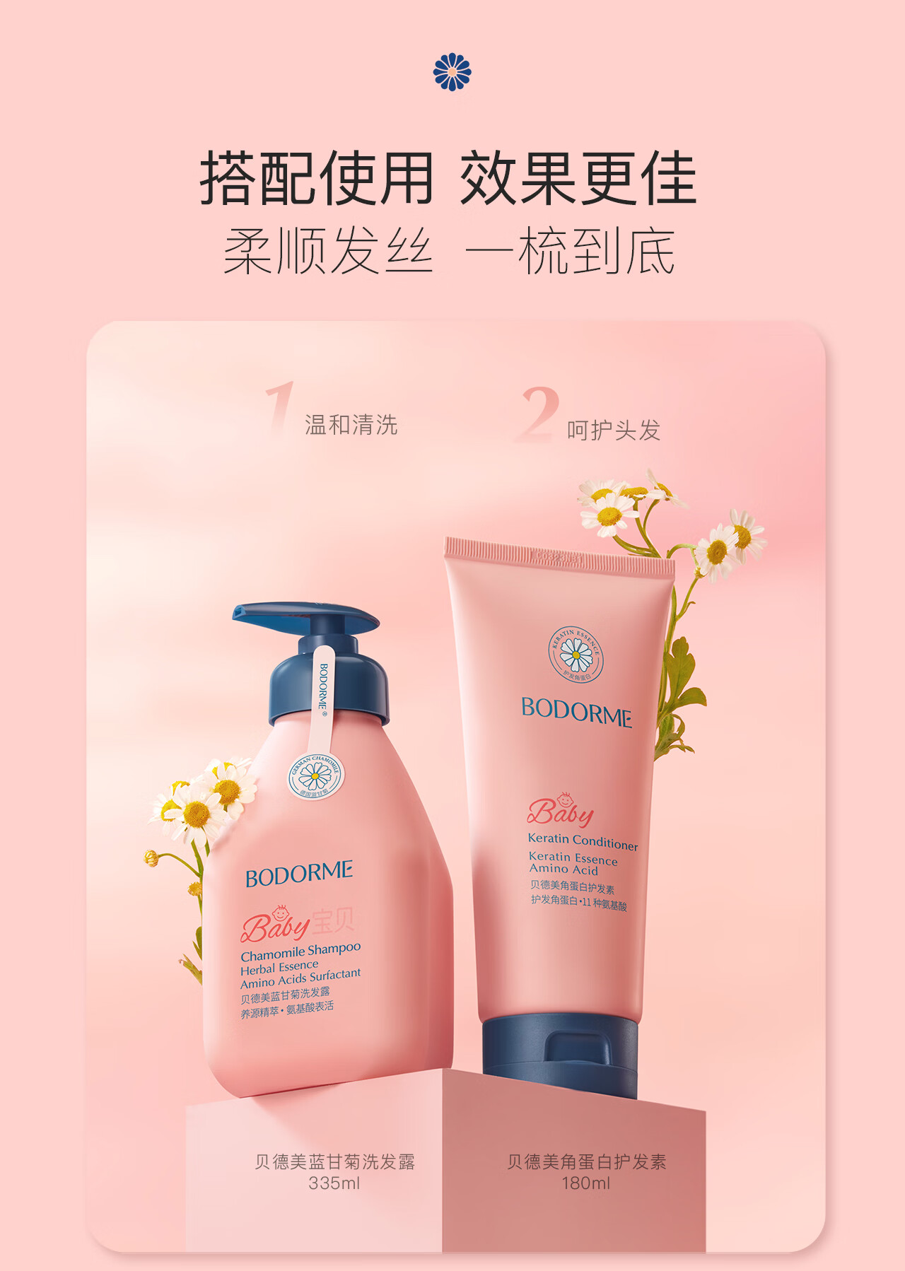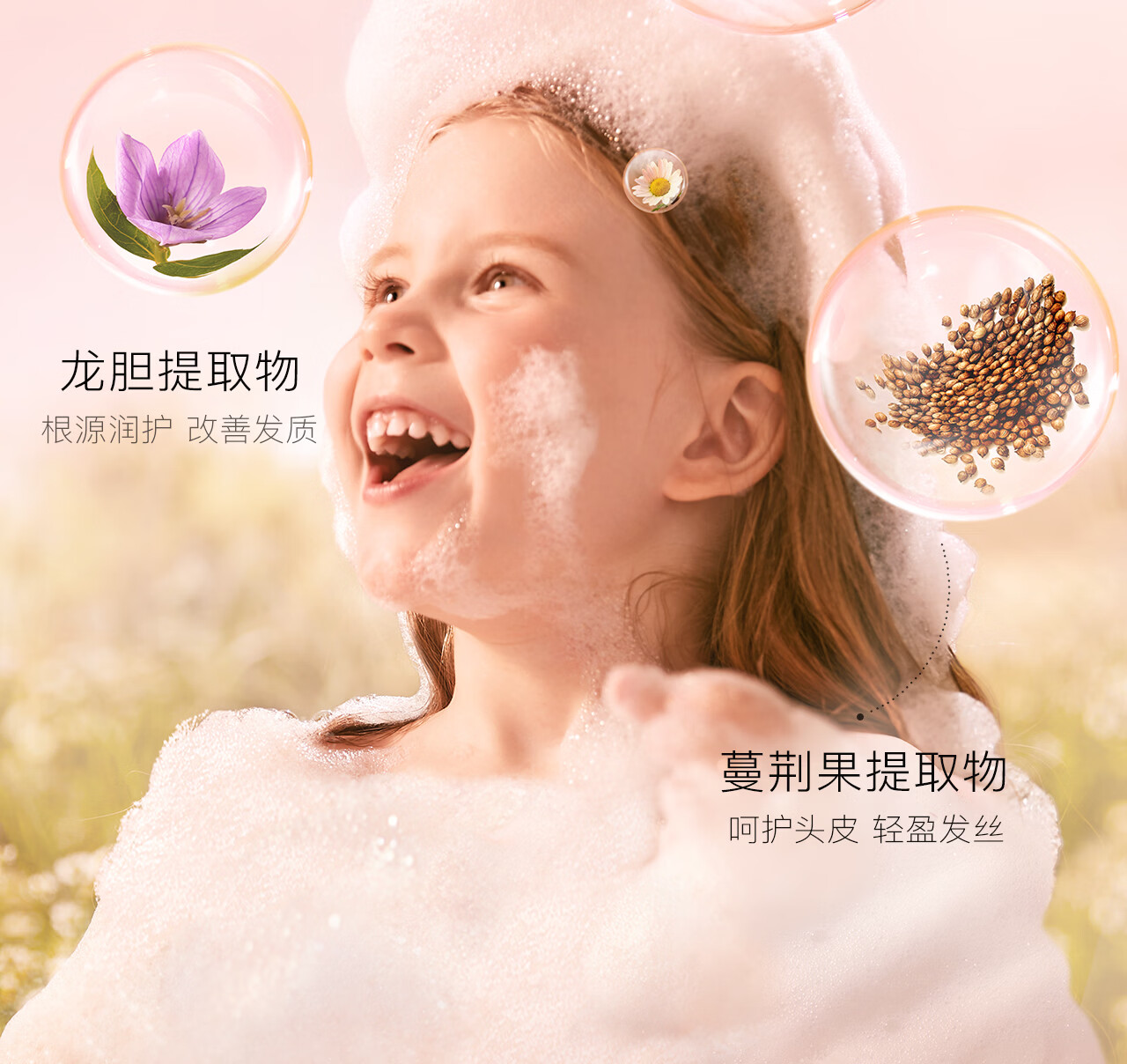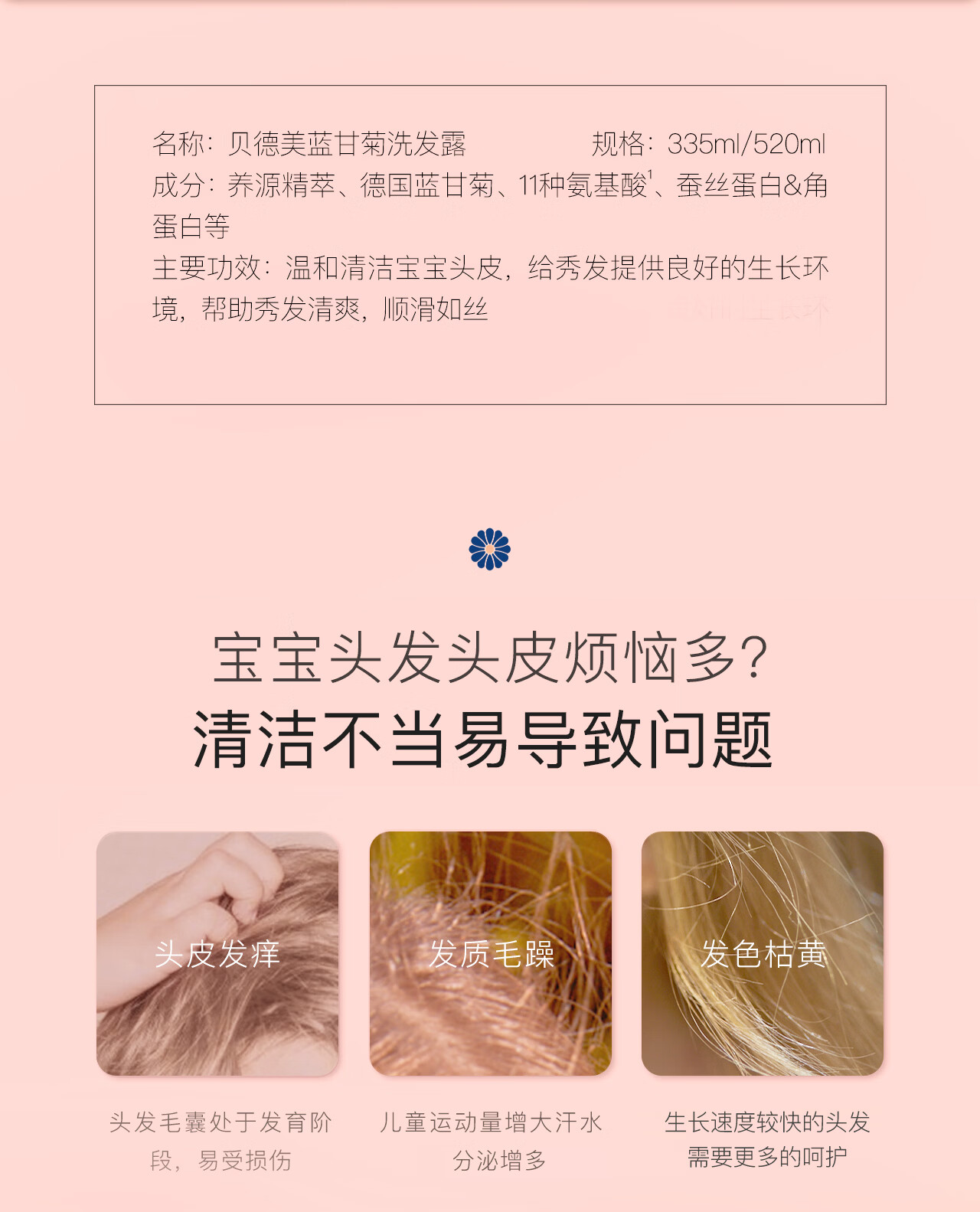 贝德美蓝甘菊儿童洗发水3-4-6-12岁无硅油弱酸性洗发露男女孩用520ml*2