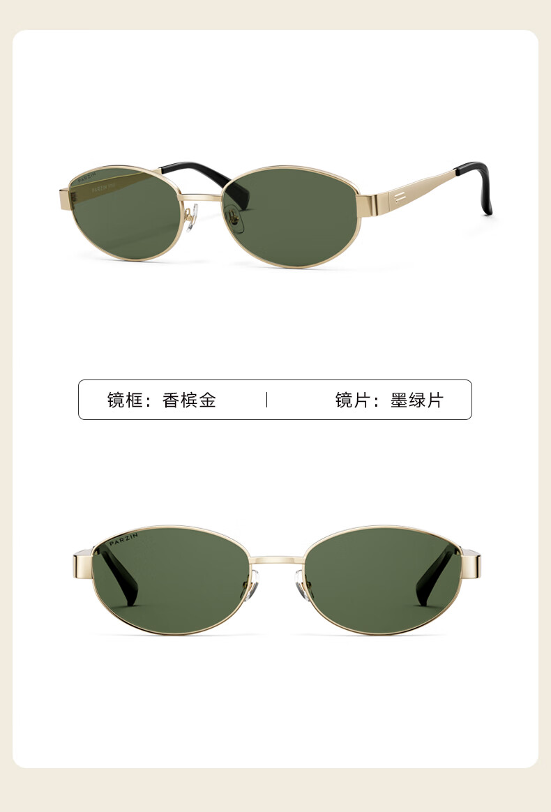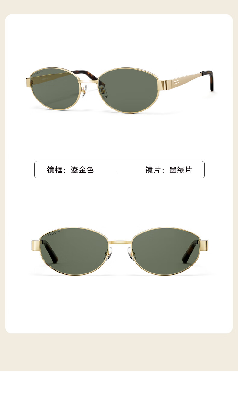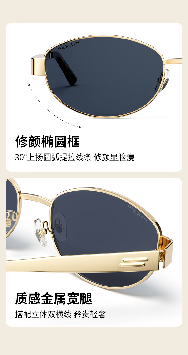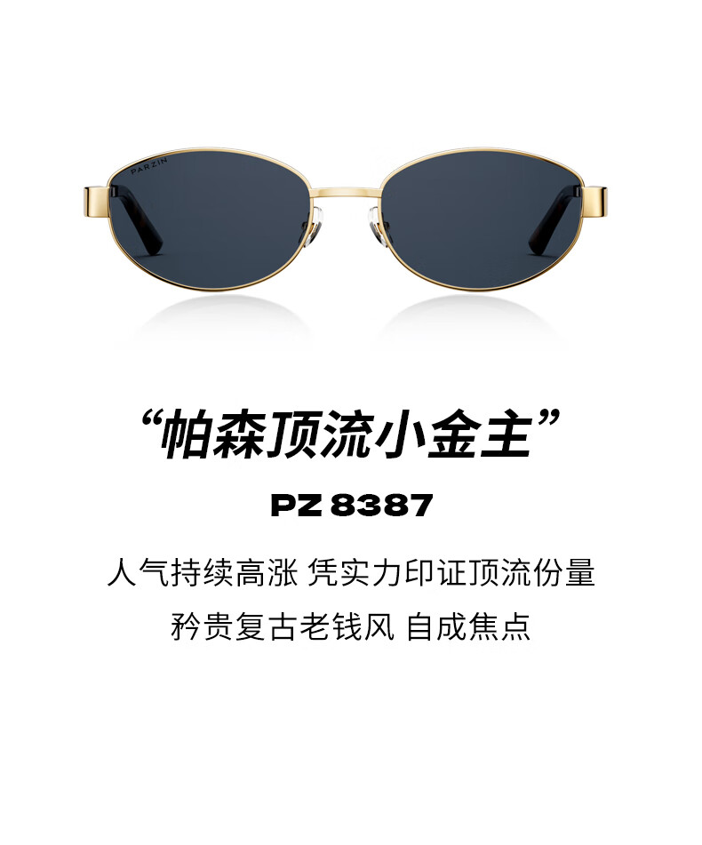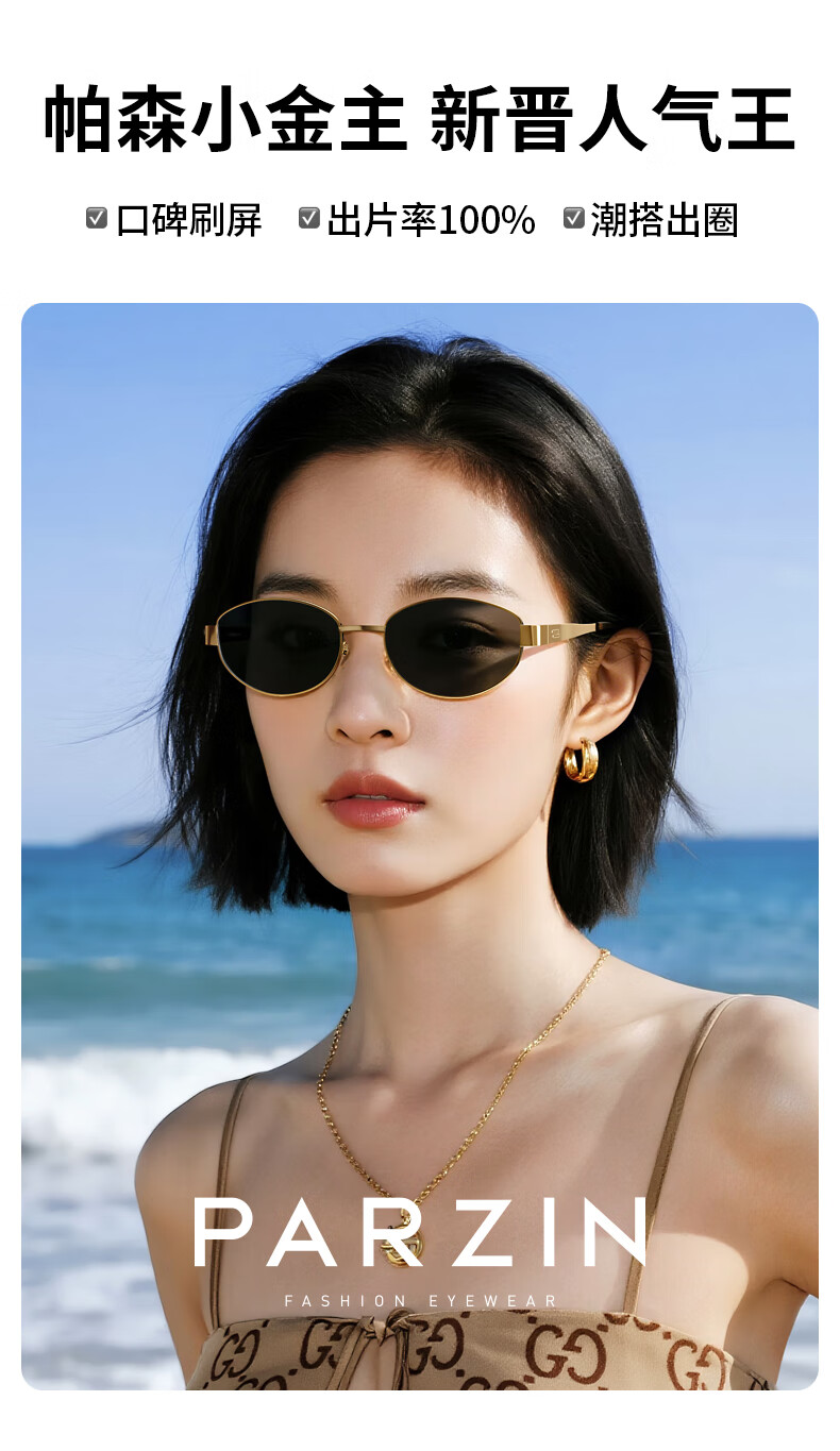 帕森(PARZIN)偏光太阳镜女 周也同款【千金镜】老钱风眼镜 驾驶墨镜男PZ8387