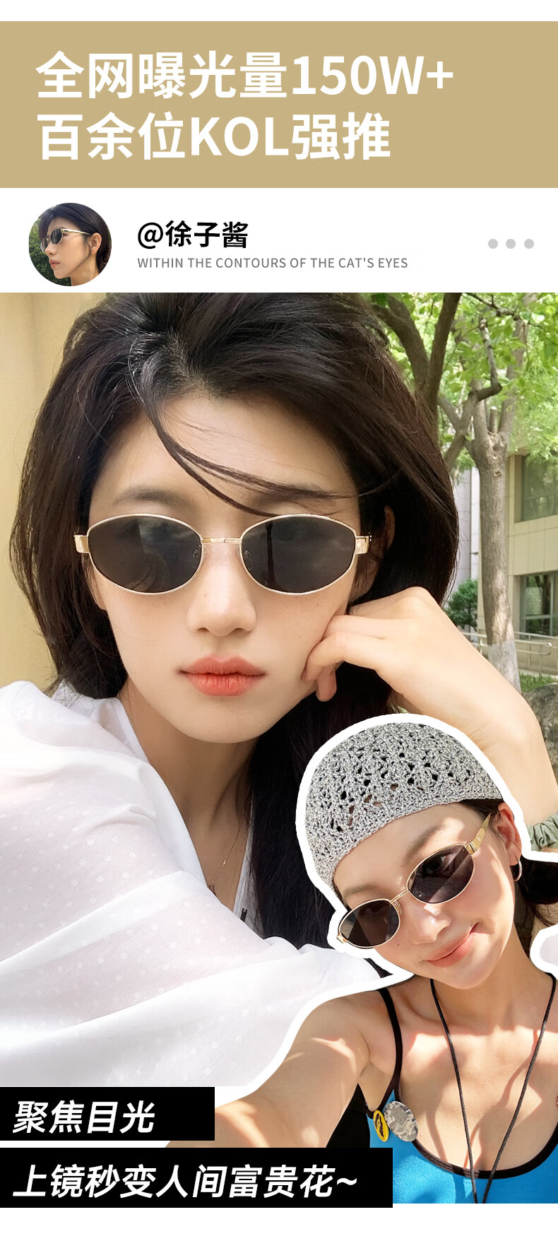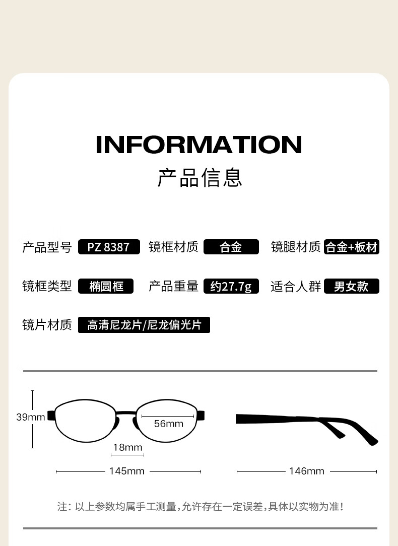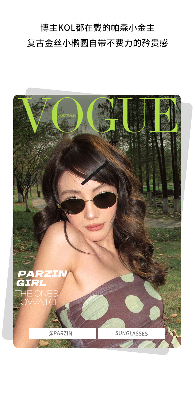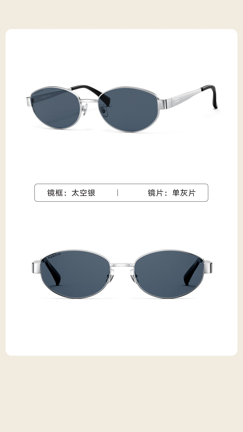 帕森(PARZIN)偏光太阳镜女 周也同款【千金镜】老钱风眼镜 驾驶墨镜男PZ8387