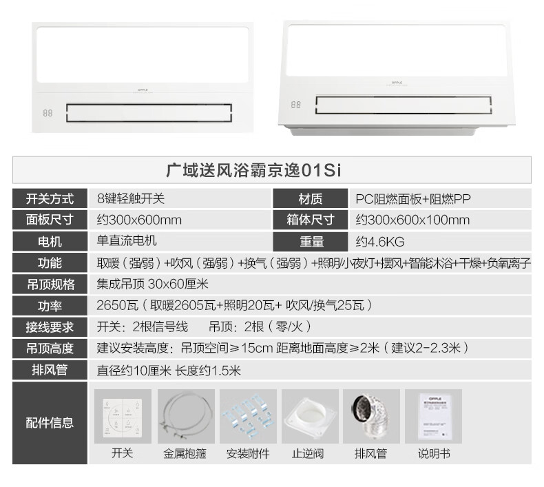 欧普照明(OPPLE)京东集采智能浴霸京系列抱抱暖变频智能除菌浴霸 京逸 免费送装
