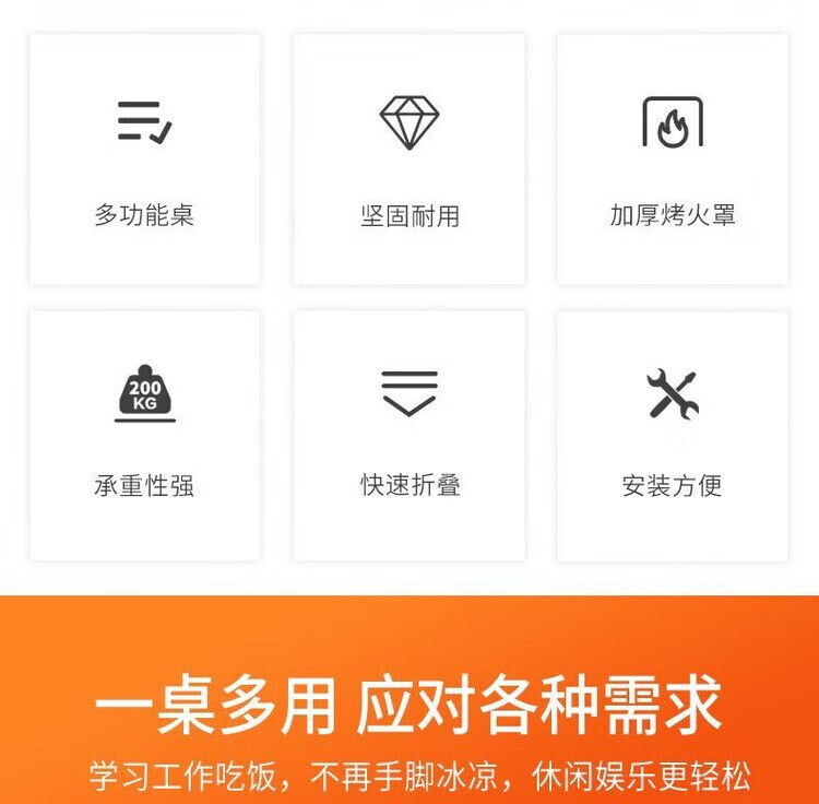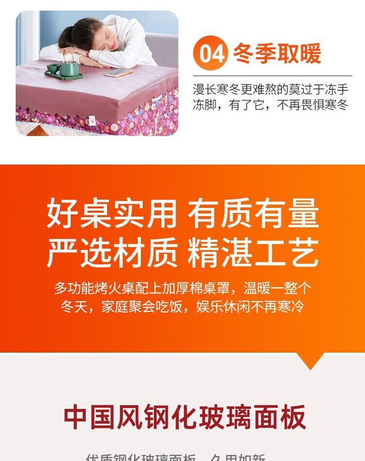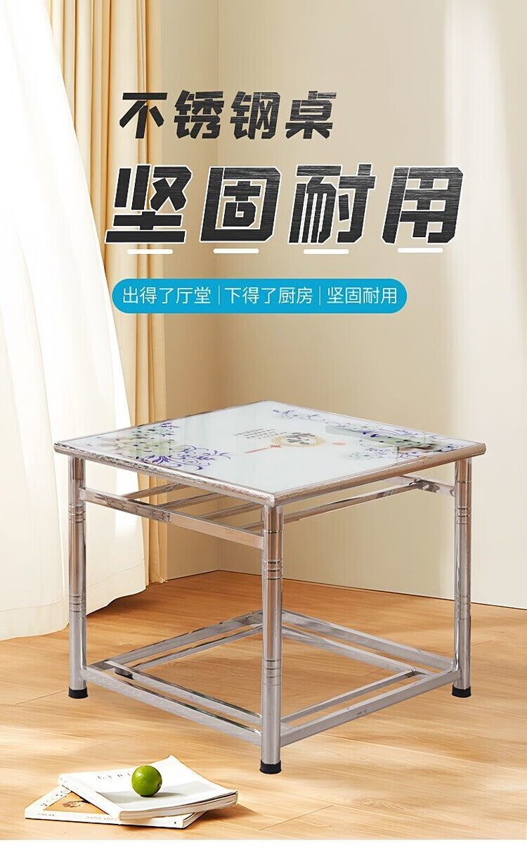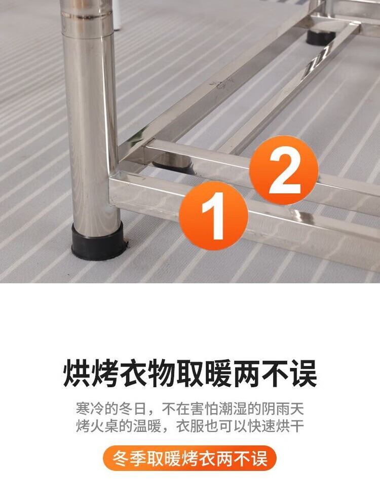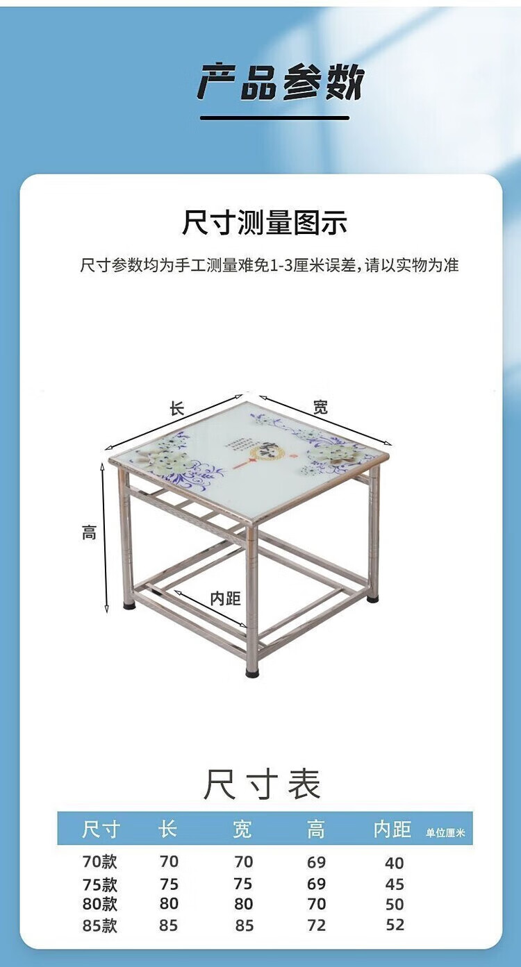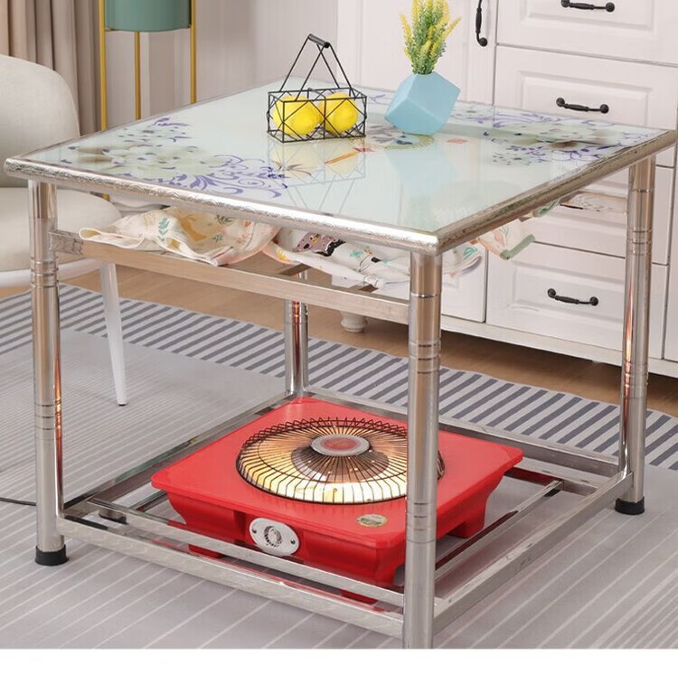 倘然之家不锈钢烤火桌冬季家用全套一整套正方形取暖桌家用饭桌客厅办公桌 【加固加厚】长65*65*高69cm 不锈钢烤火桌【内带网 桌面】