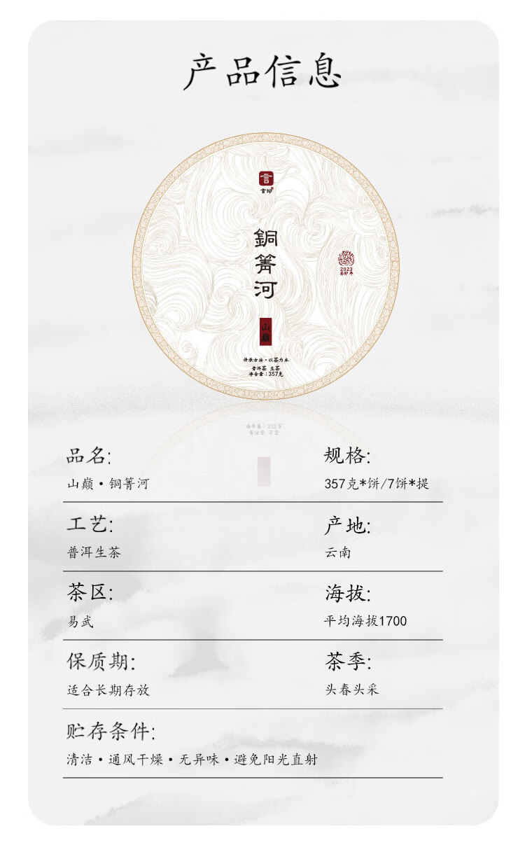 言印山巅铜箐河 普洱茶生茶 古树春茶 高端茶叶 357克*饼