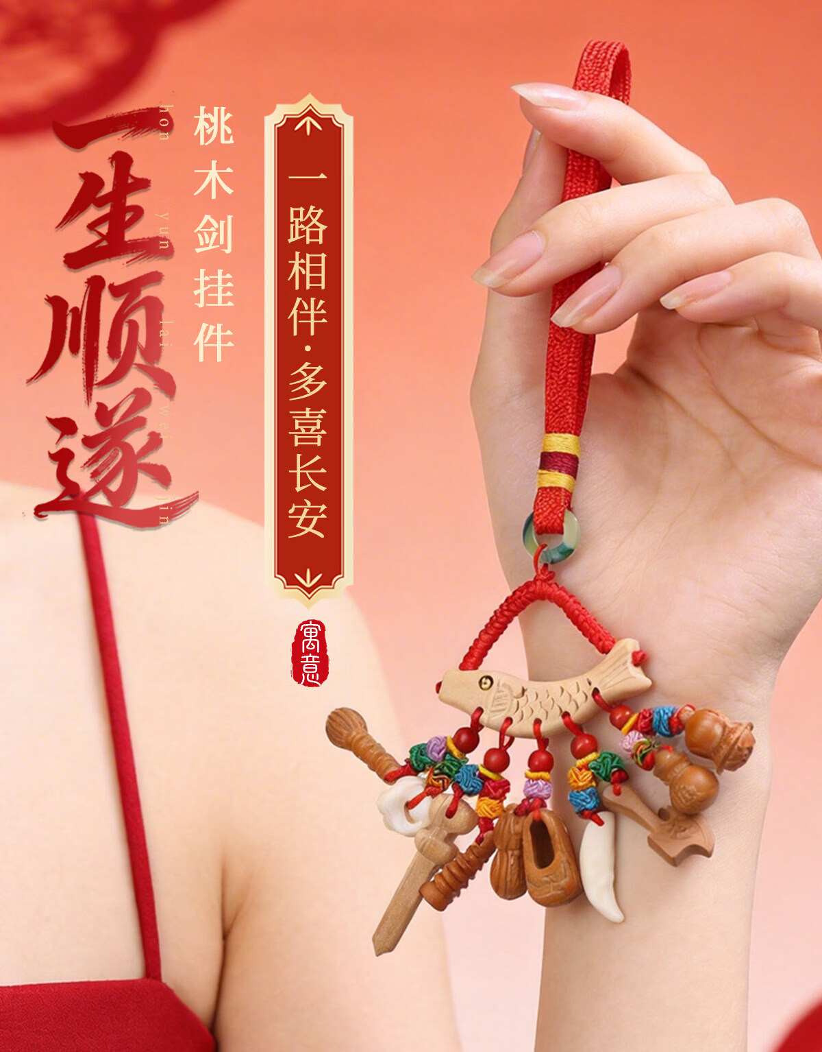 灵机生活馆麦玲玲代言宝宝孕妇别惊桃木剑挂件随身婴儿外出东南枝平安挂件 【平安】一生顺遂桃木剑挂件