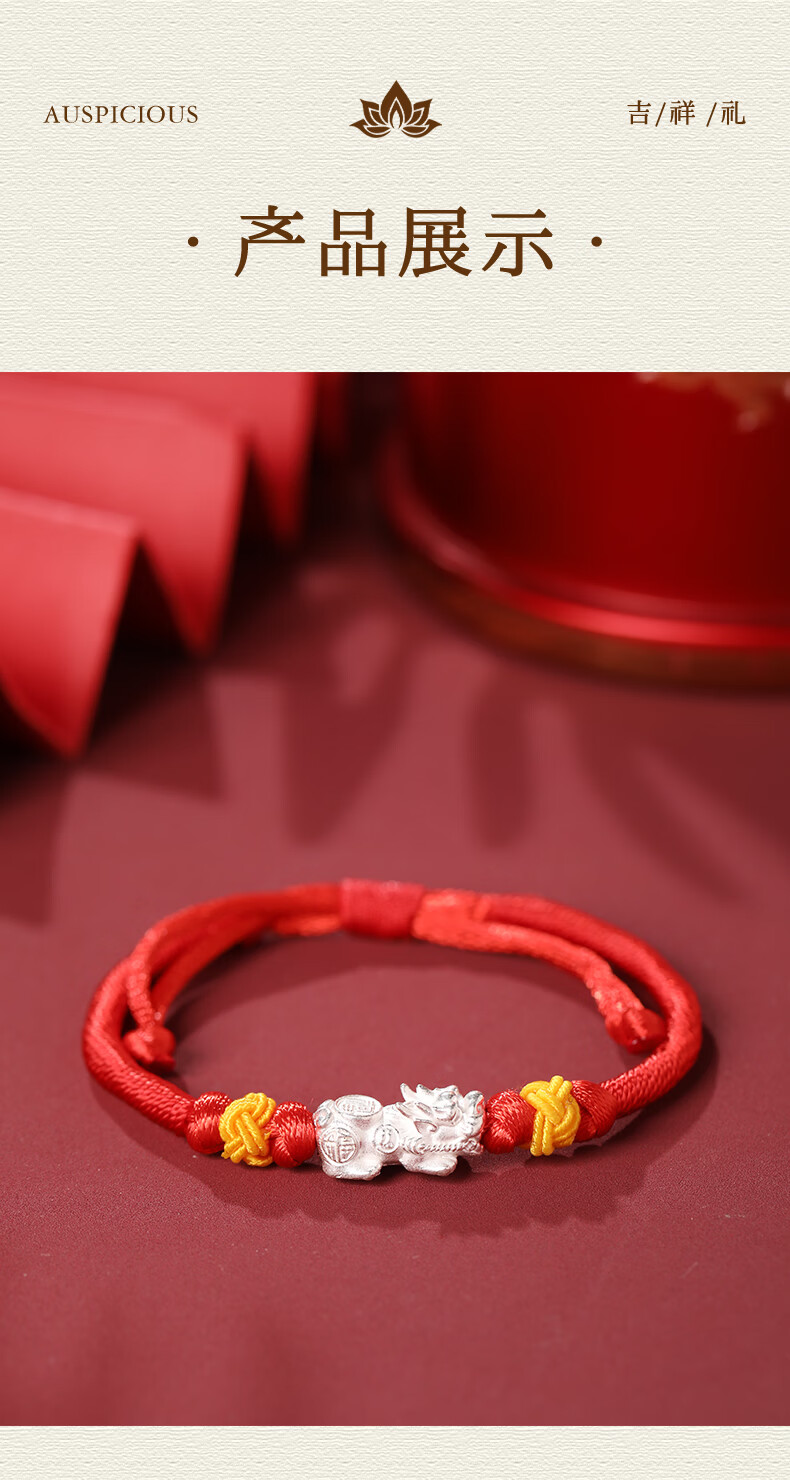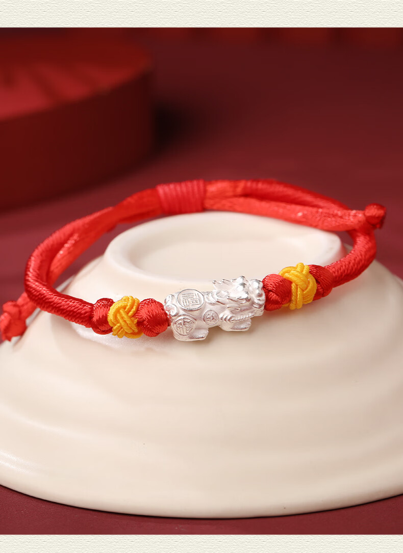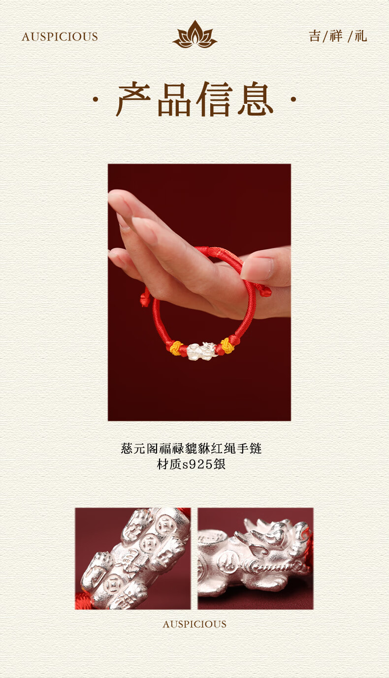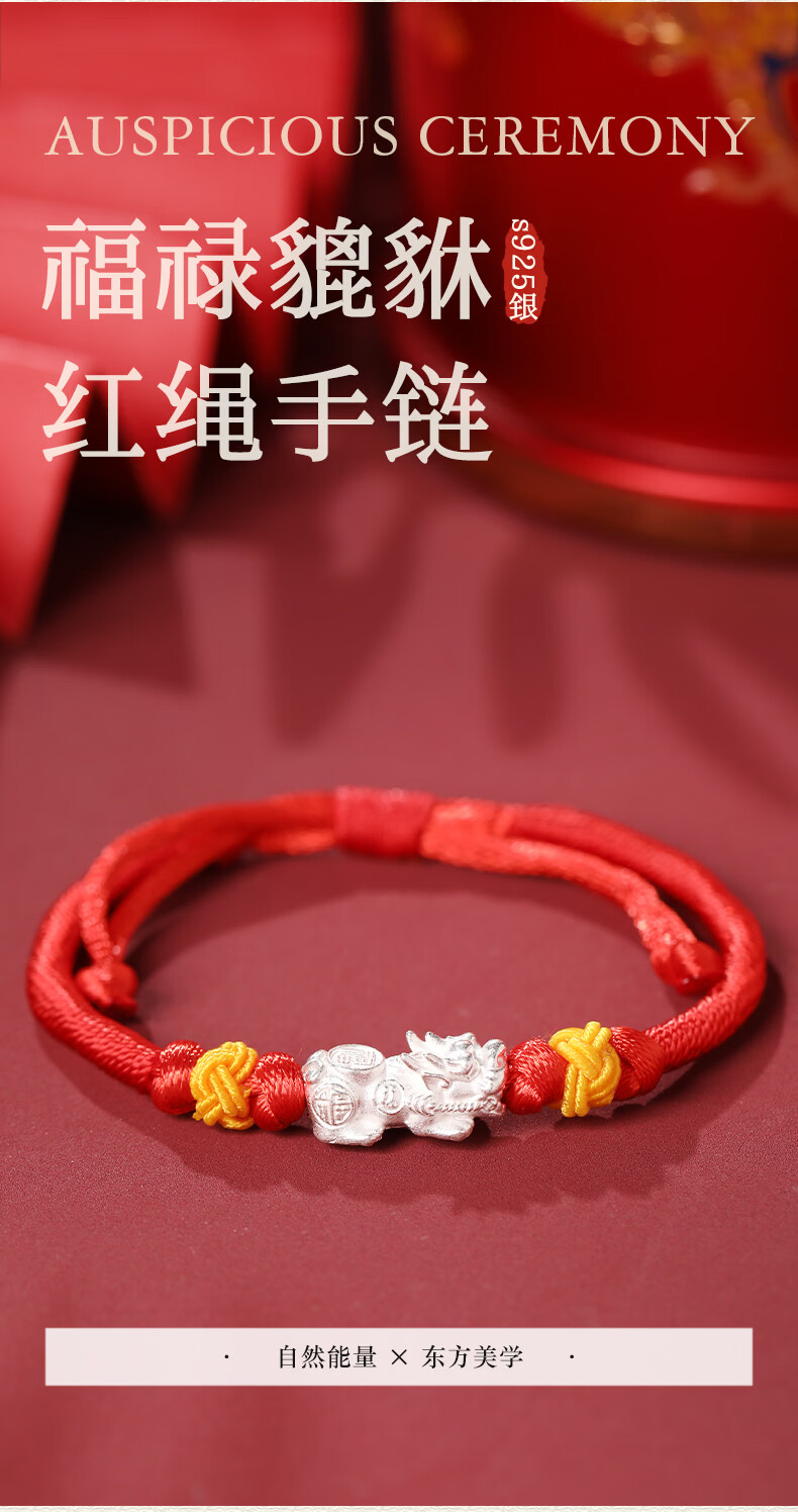 慈元阁s925银福禄貔貅红绳手链本命年招财男女情侣款手绳送女友生日礼物 s925银福禄貔貅红绳手链