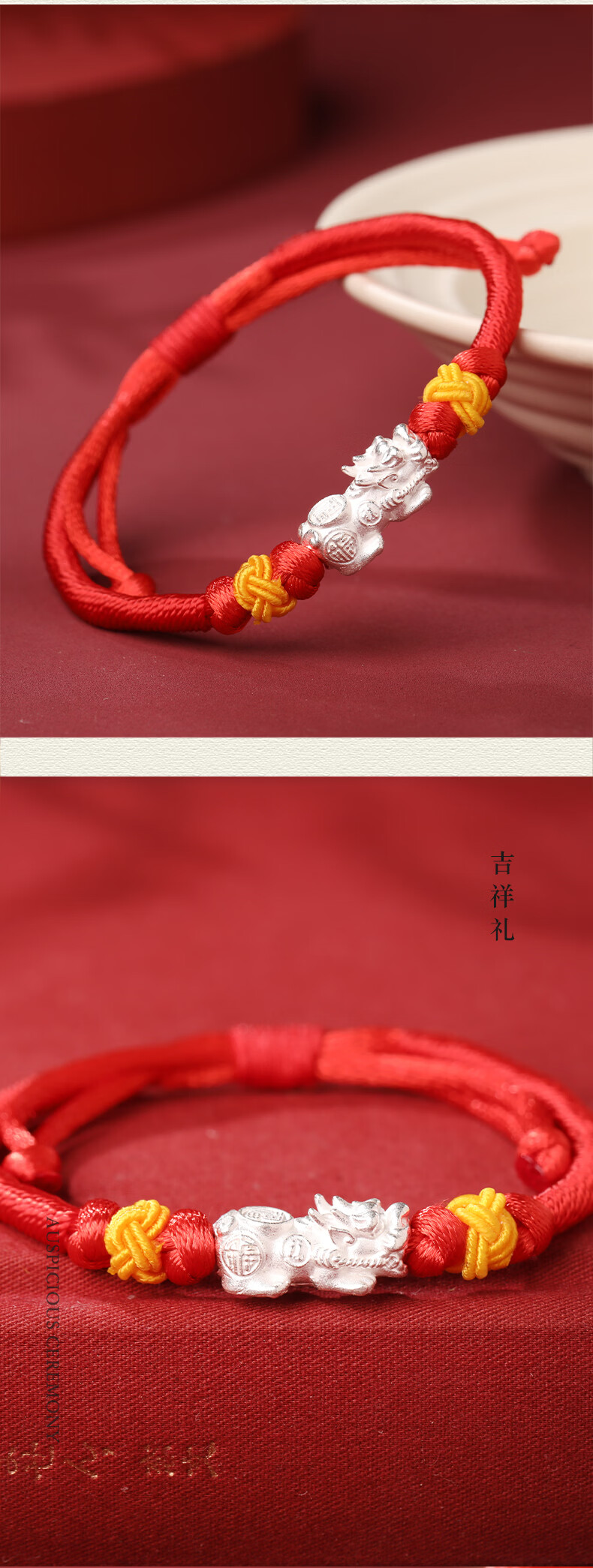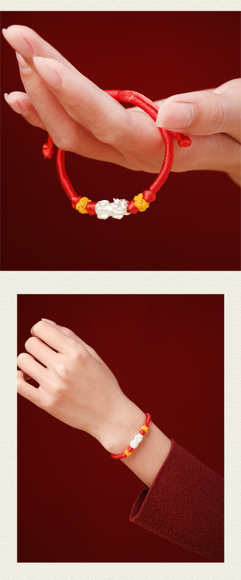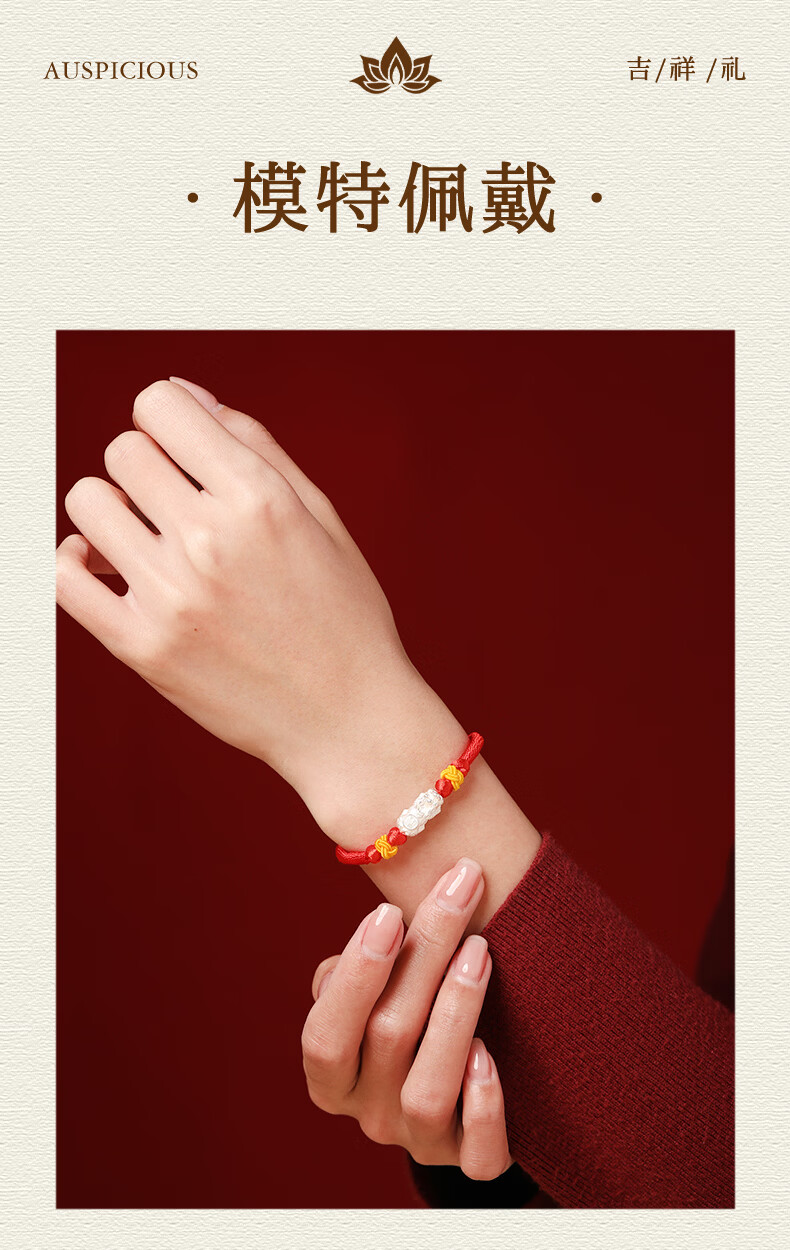 慈元阁s925银福禄貔貅红绳手链本命年招财男女情侣款手绳送女友生日礼物 s925银福禄貔貅红绳手链