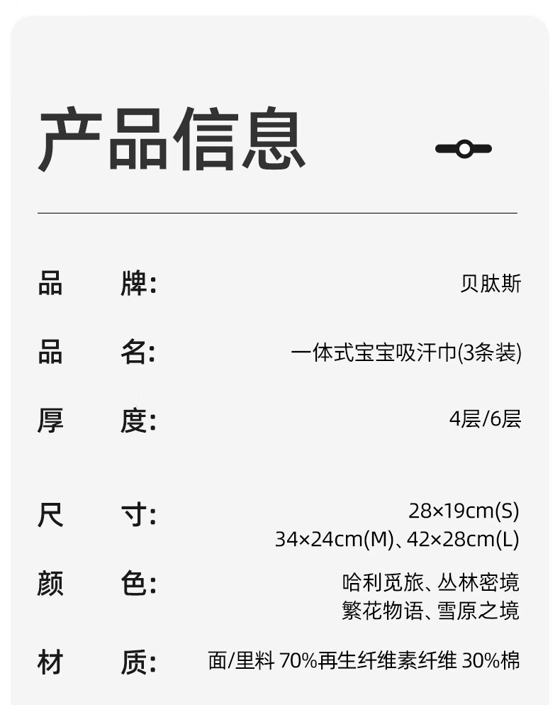 贝肽斯儿童吸汗巾纯棉a类婴儿宝宝隔汗巾大号幼儿园专用垫背巾止汗巾 雪原之境【轻薄4层-导湿排汗】 3条装 卡通动漫 S码【28*19cm】建议0-1岁