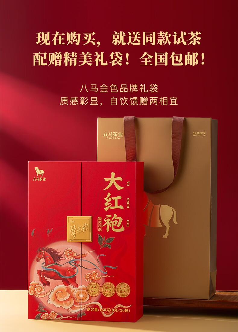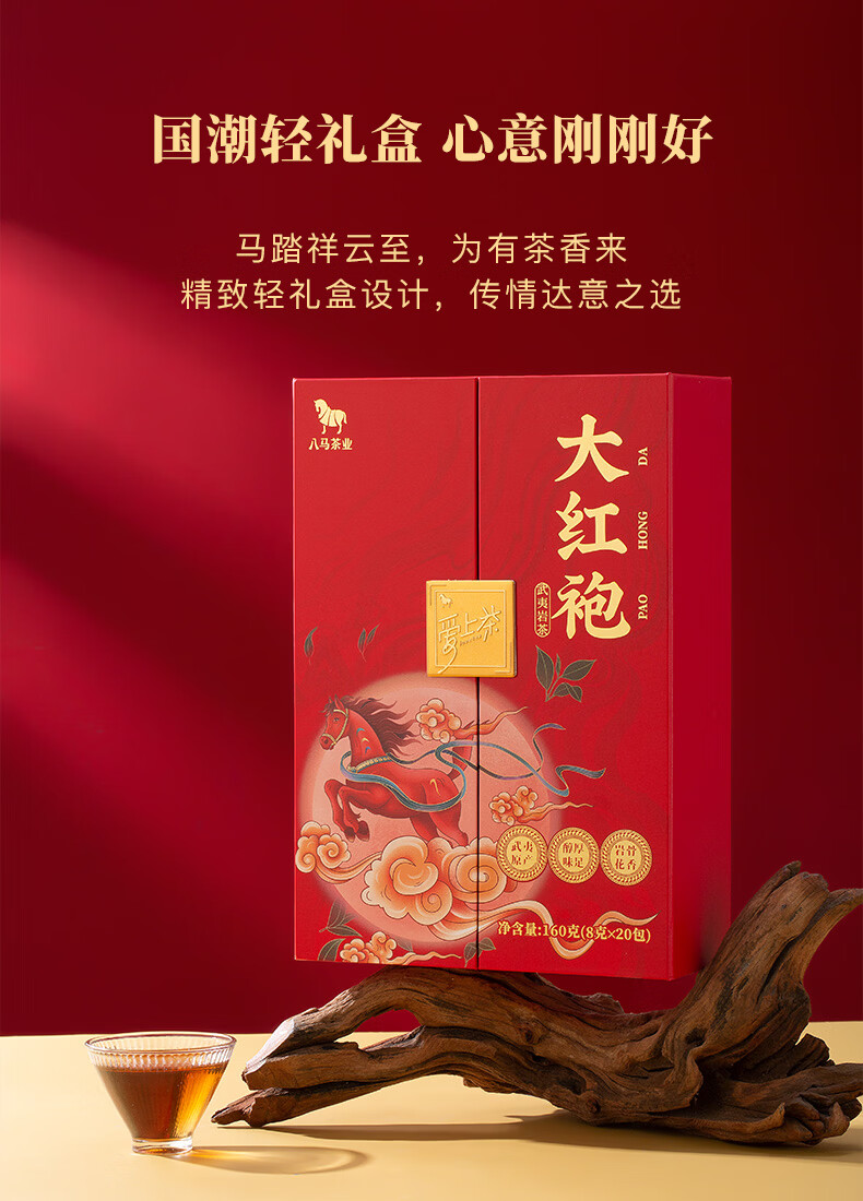 八马茶业 爱上茶 武夷岩茶 大红袍 乌龙茶 送礼茶叶 礼盒装 160g