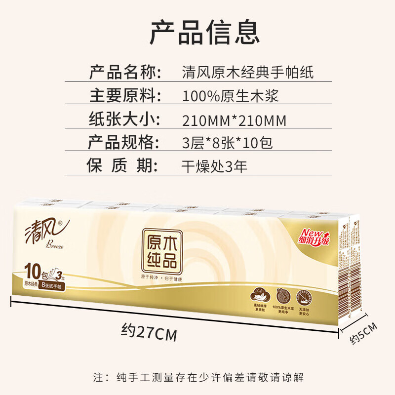 清风手帕纸3层8张*30包小包面巾纸巾便携随身包家用学校旅游B66ACM